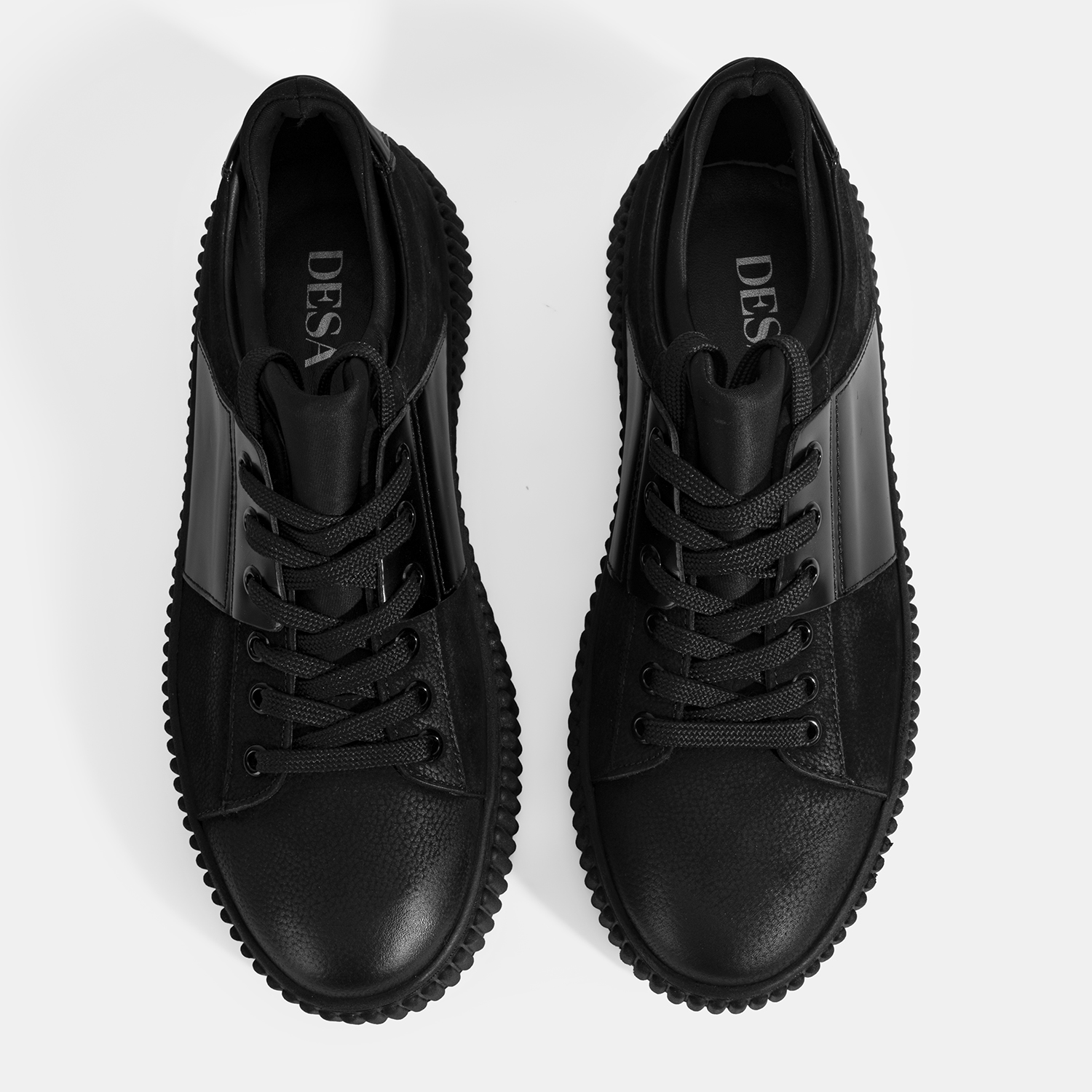 Erkek Siyah Bağcıklı Deri Spor Ayakkabı