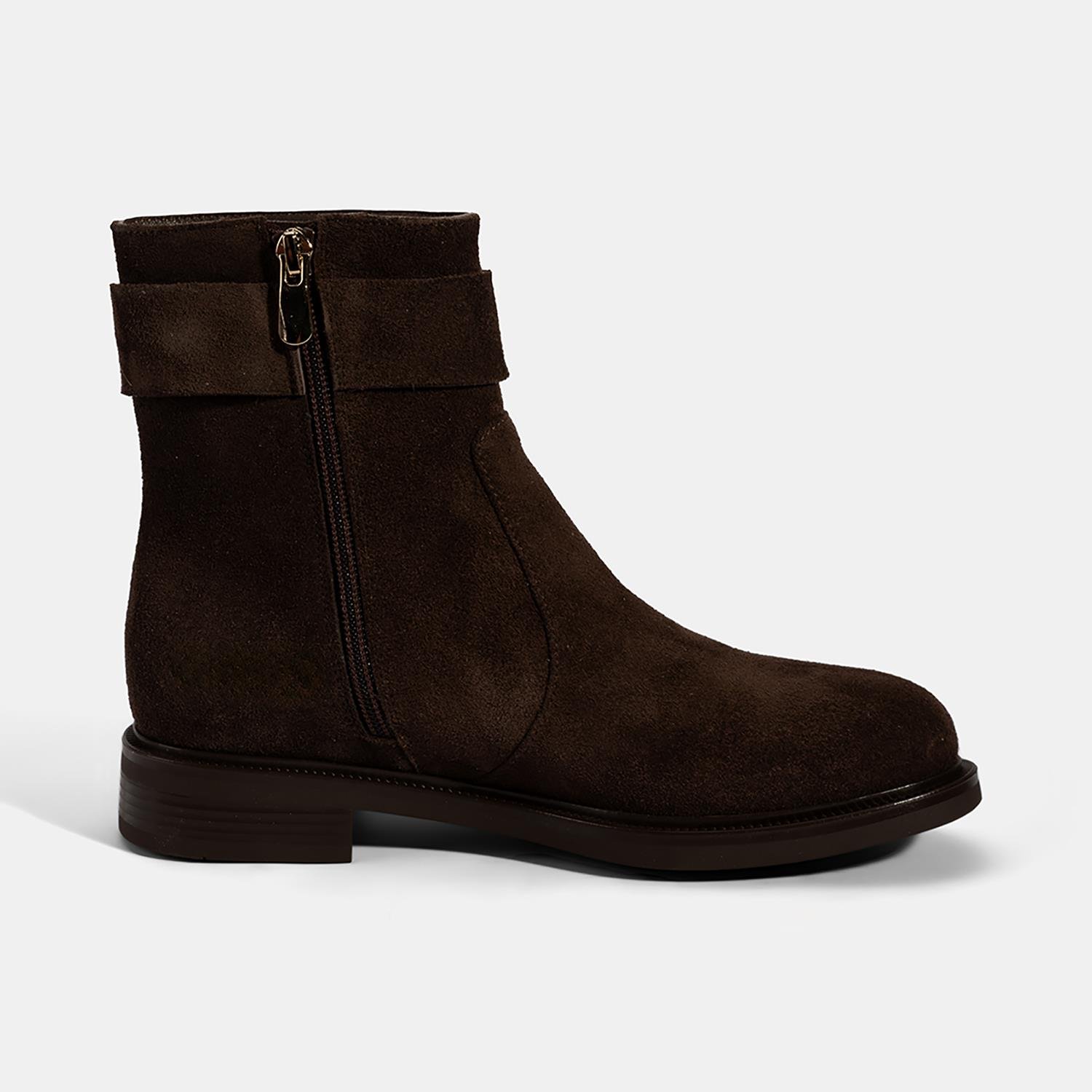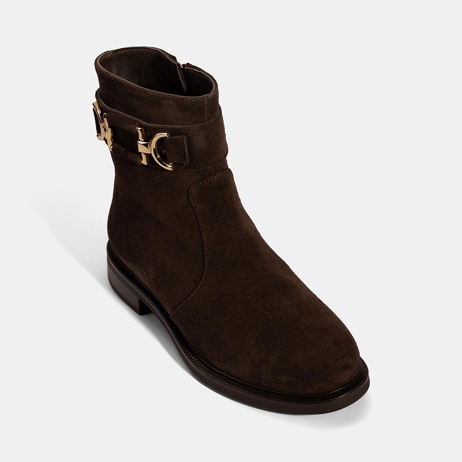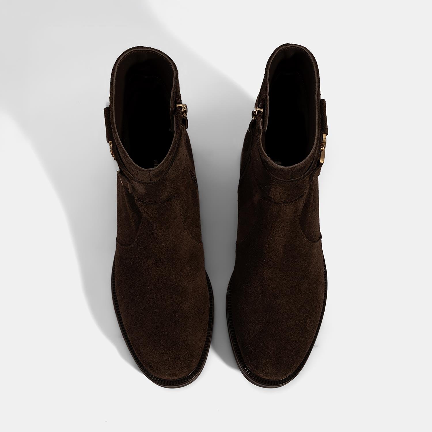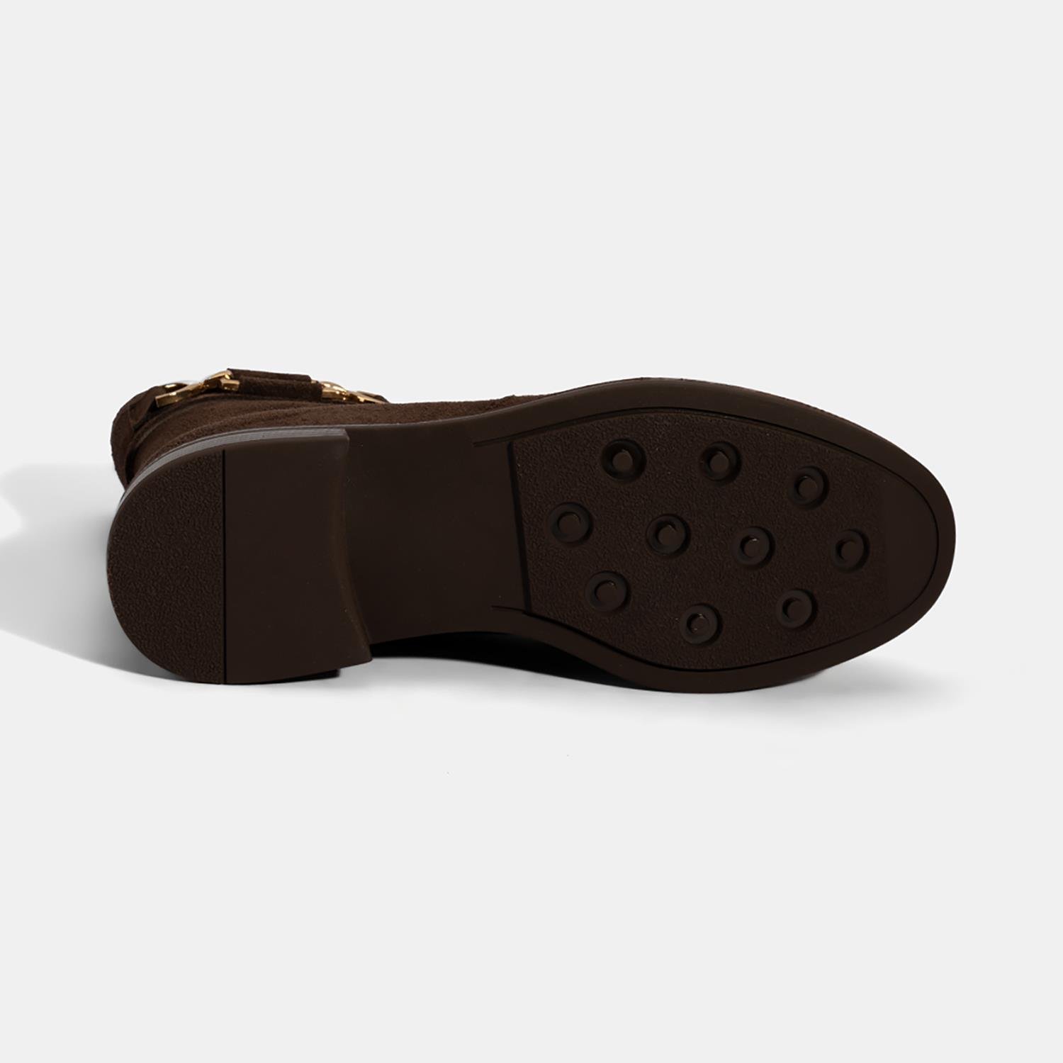 Kadın Kahve Metal Aksesuarlı Süet Bot