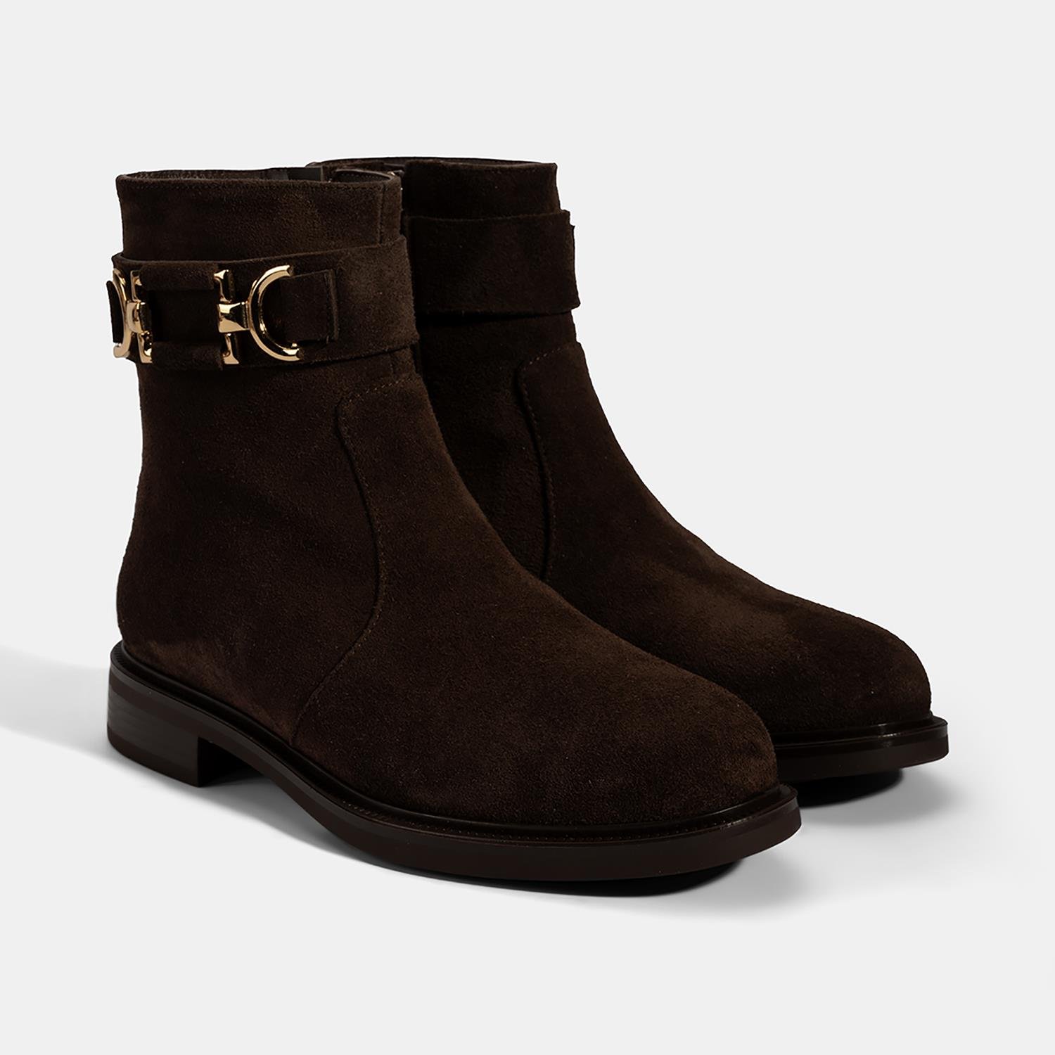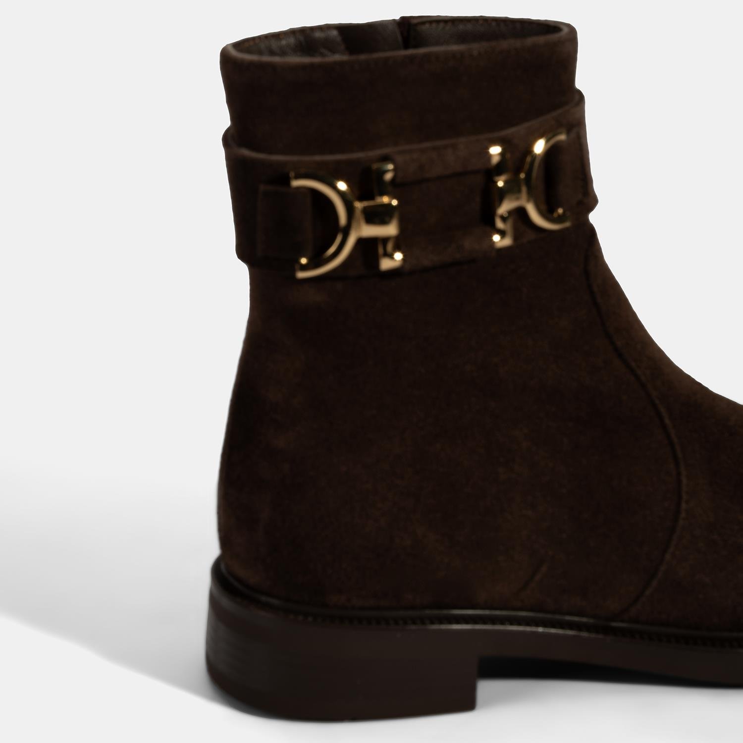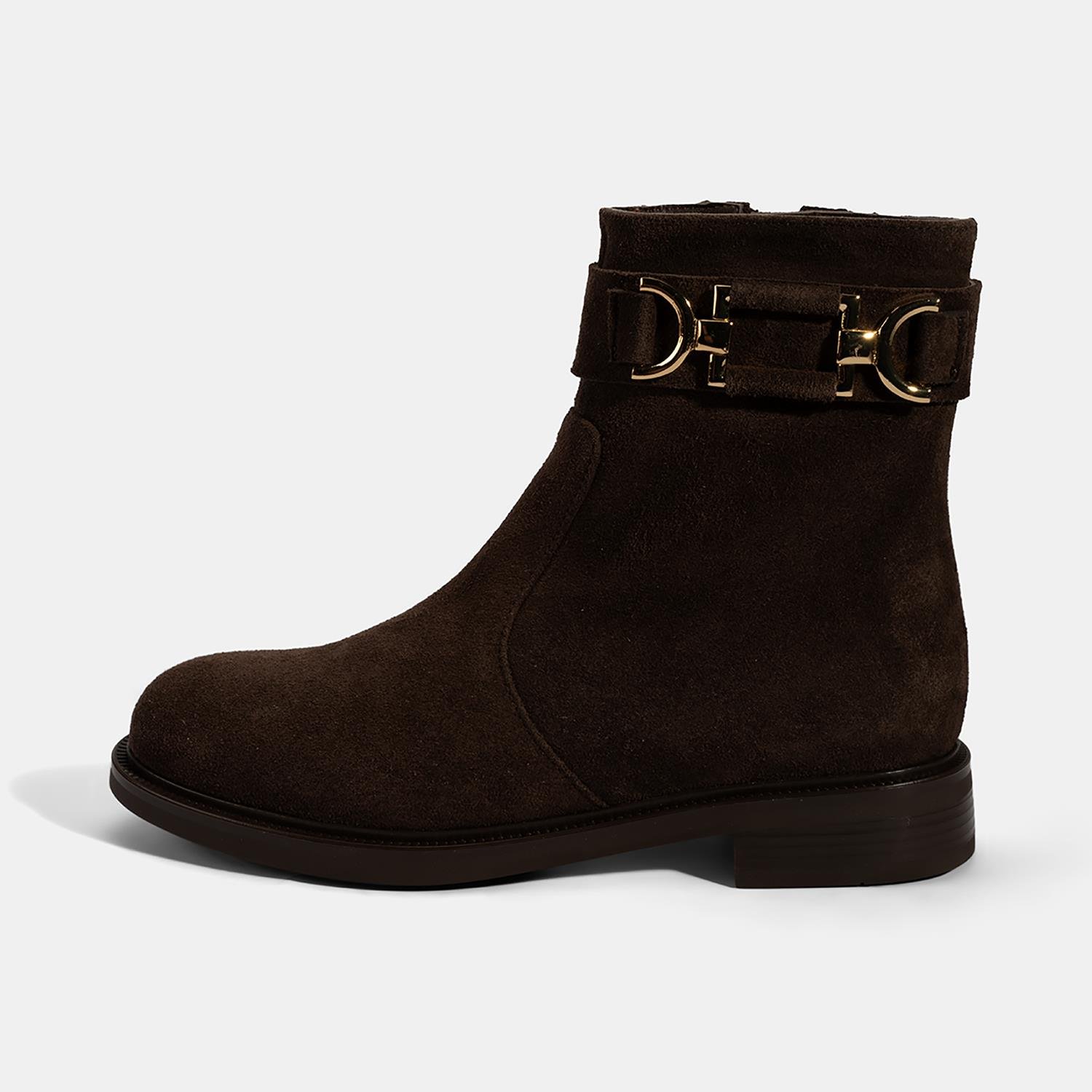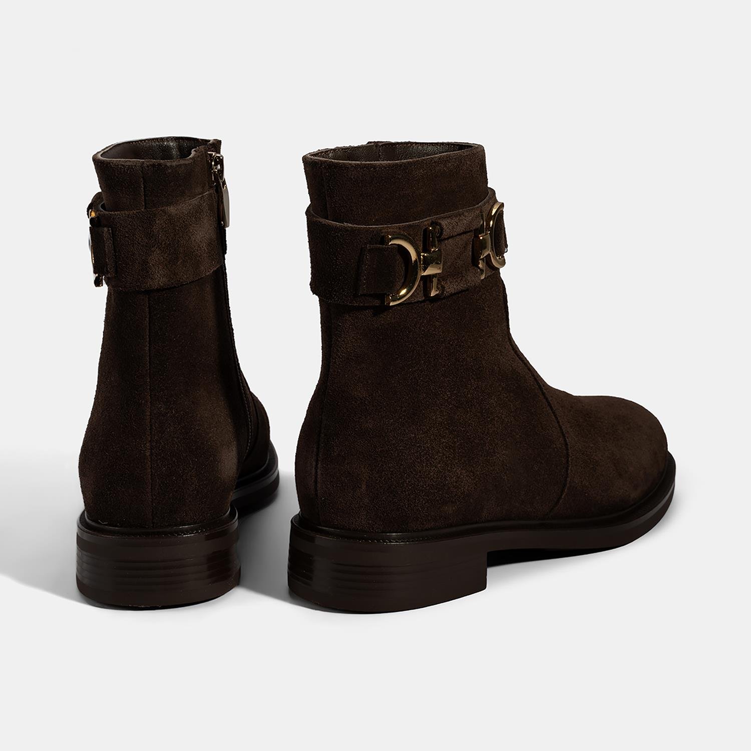 Kadın Kahve Metal Aksesuarlı Süet Bot