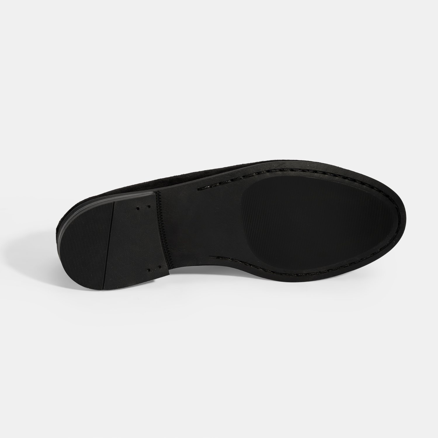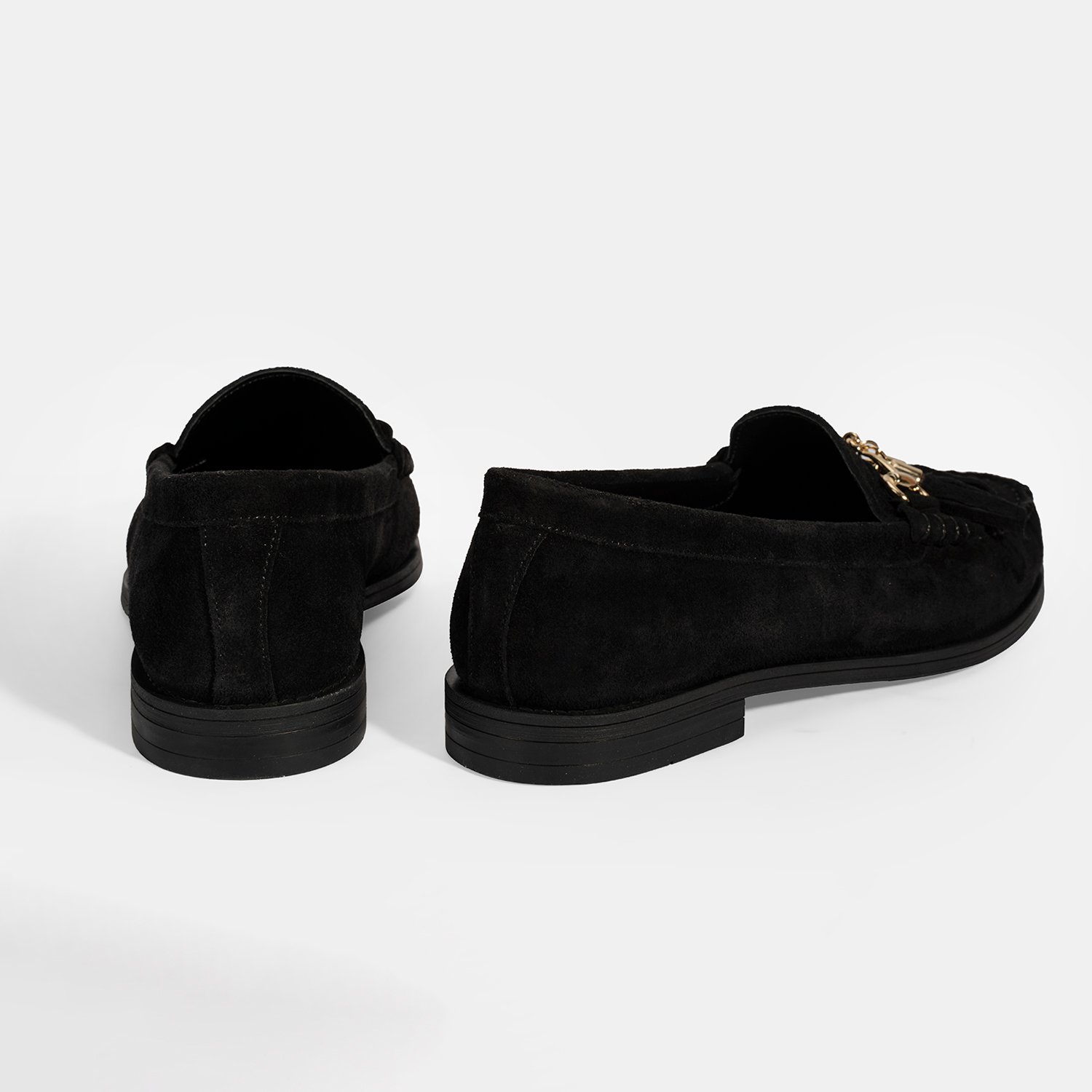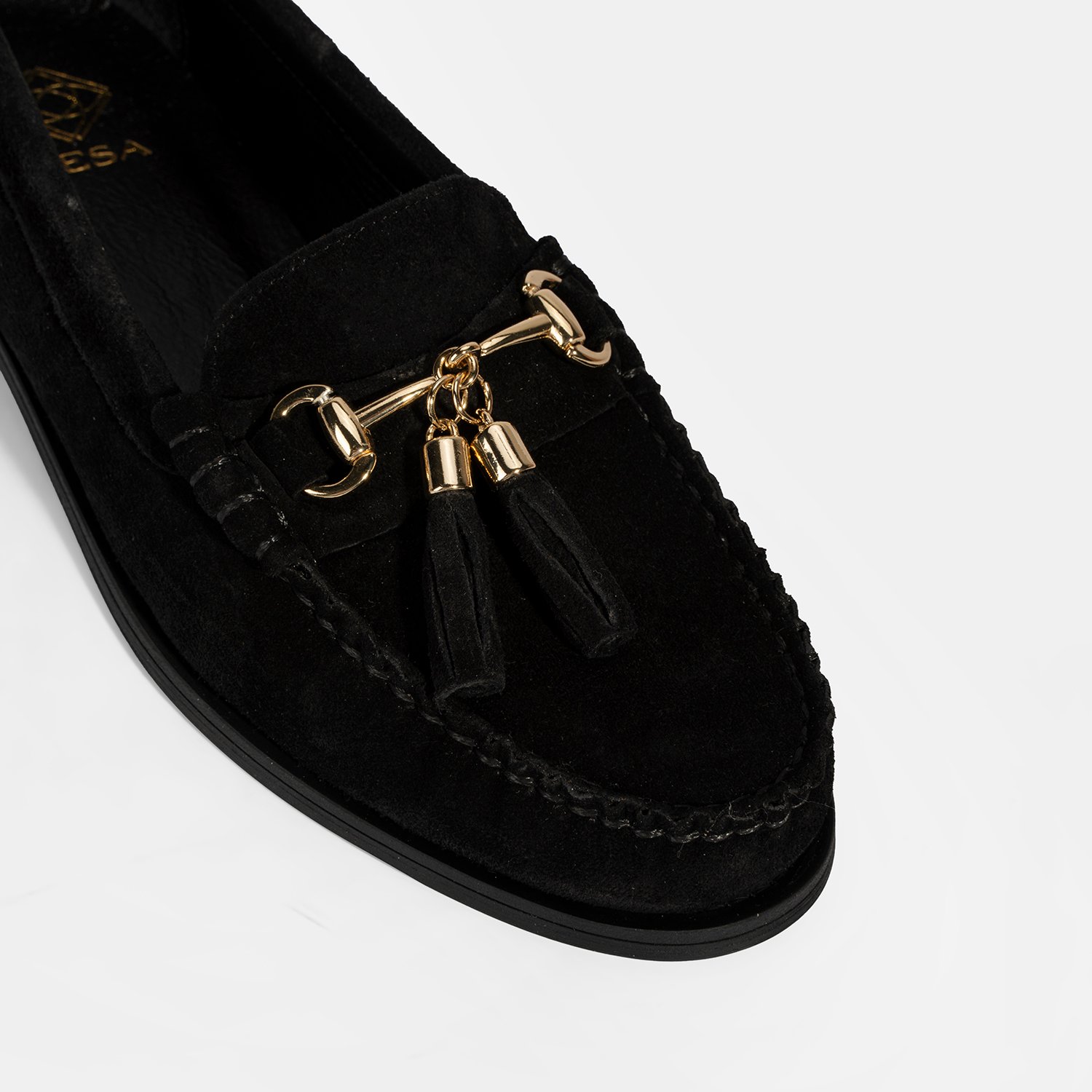 Kadın Siyah Püskül Aksesuarlı Süet Loafer