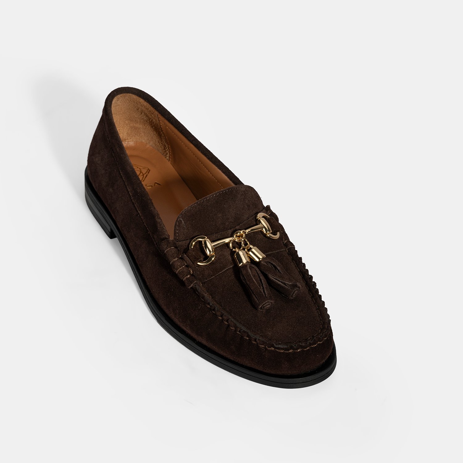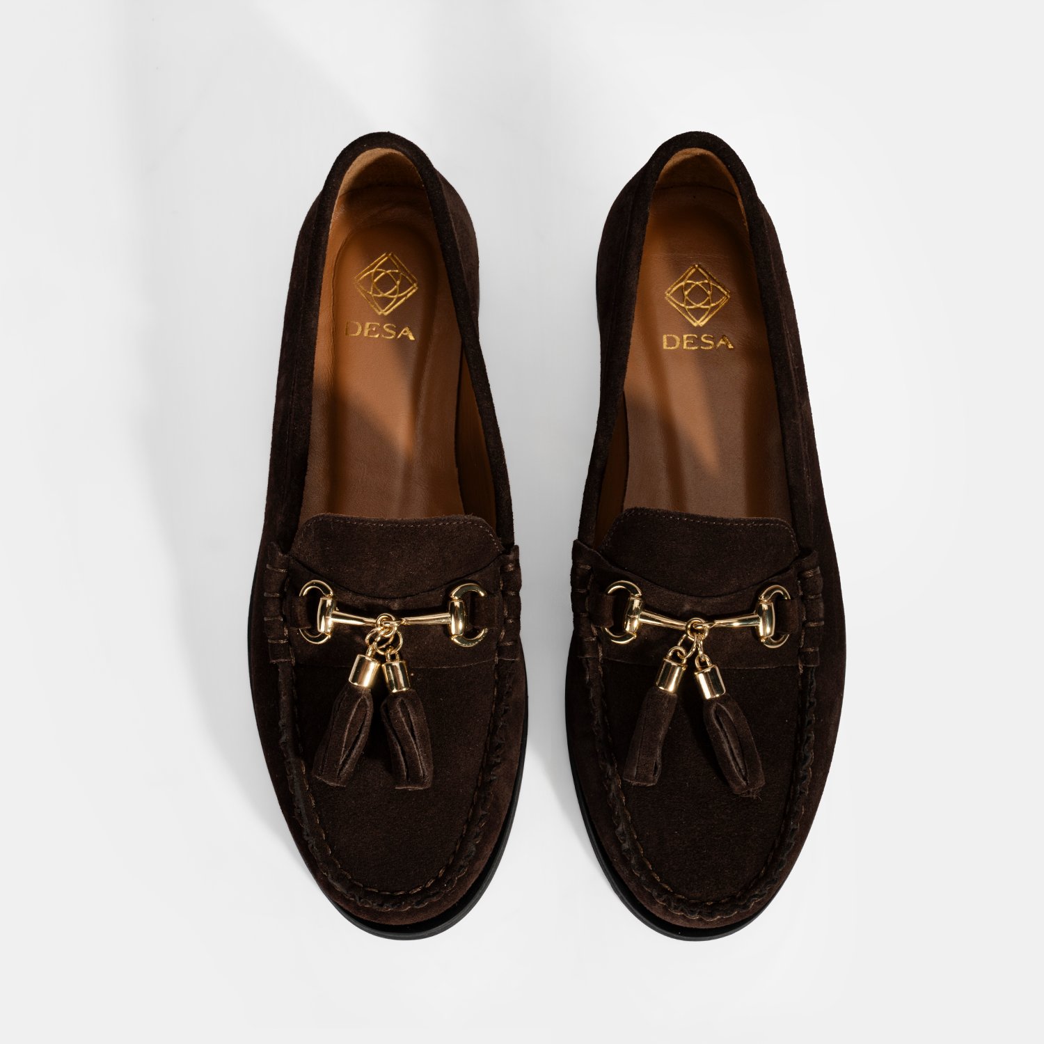 %100 süet deri, deri iç tabanlı, deri astarlı, metal toka detaylı, termo tabanlı, püsküllü kadın loafer. Topuk yüksekliği: 2 cm.