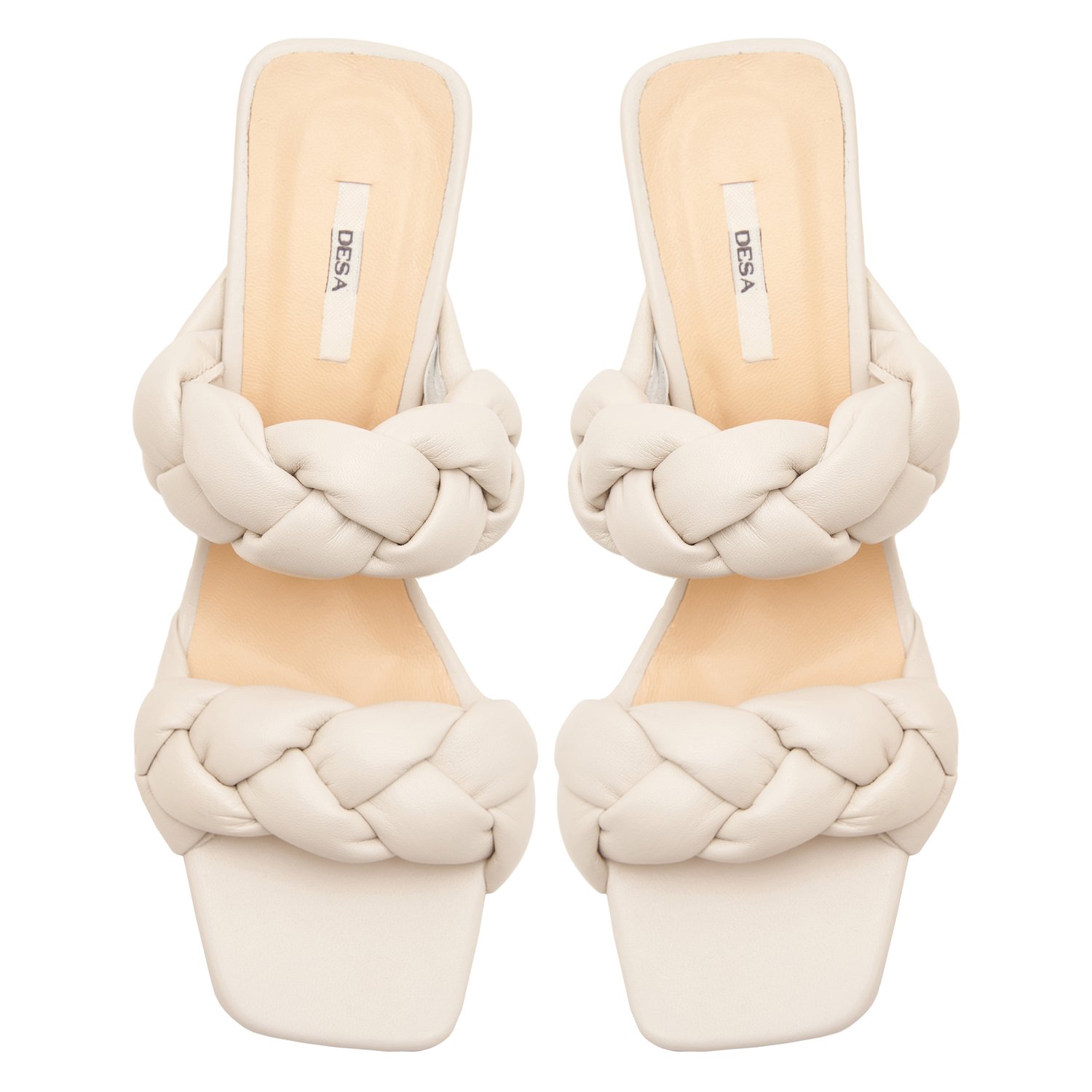 Deri iç tabanlı, örgü detaylı, neolit tabanlı kadın terlik.
