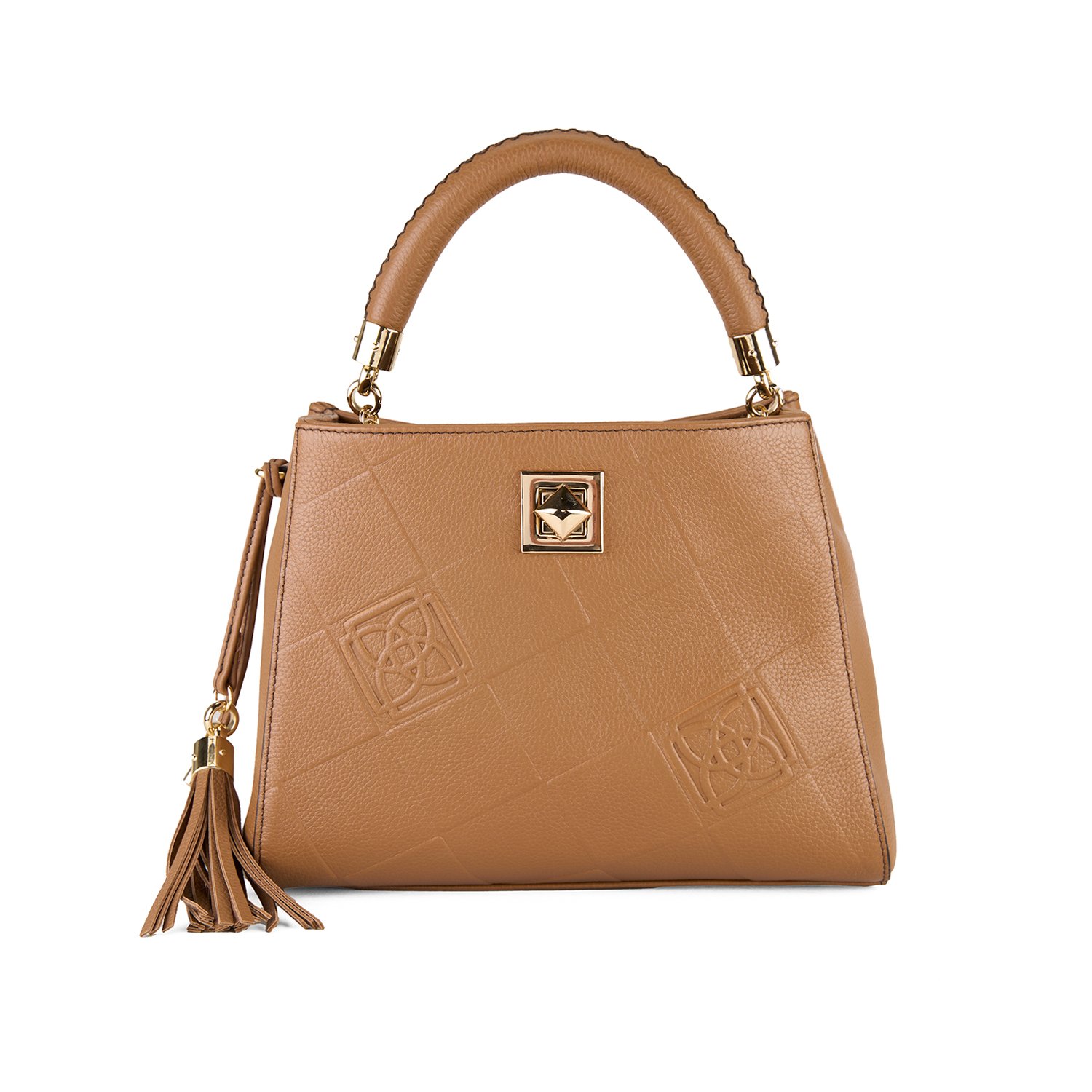 Çanta üzerinde kare desenli Desa kabartma logo yapılmıştır.