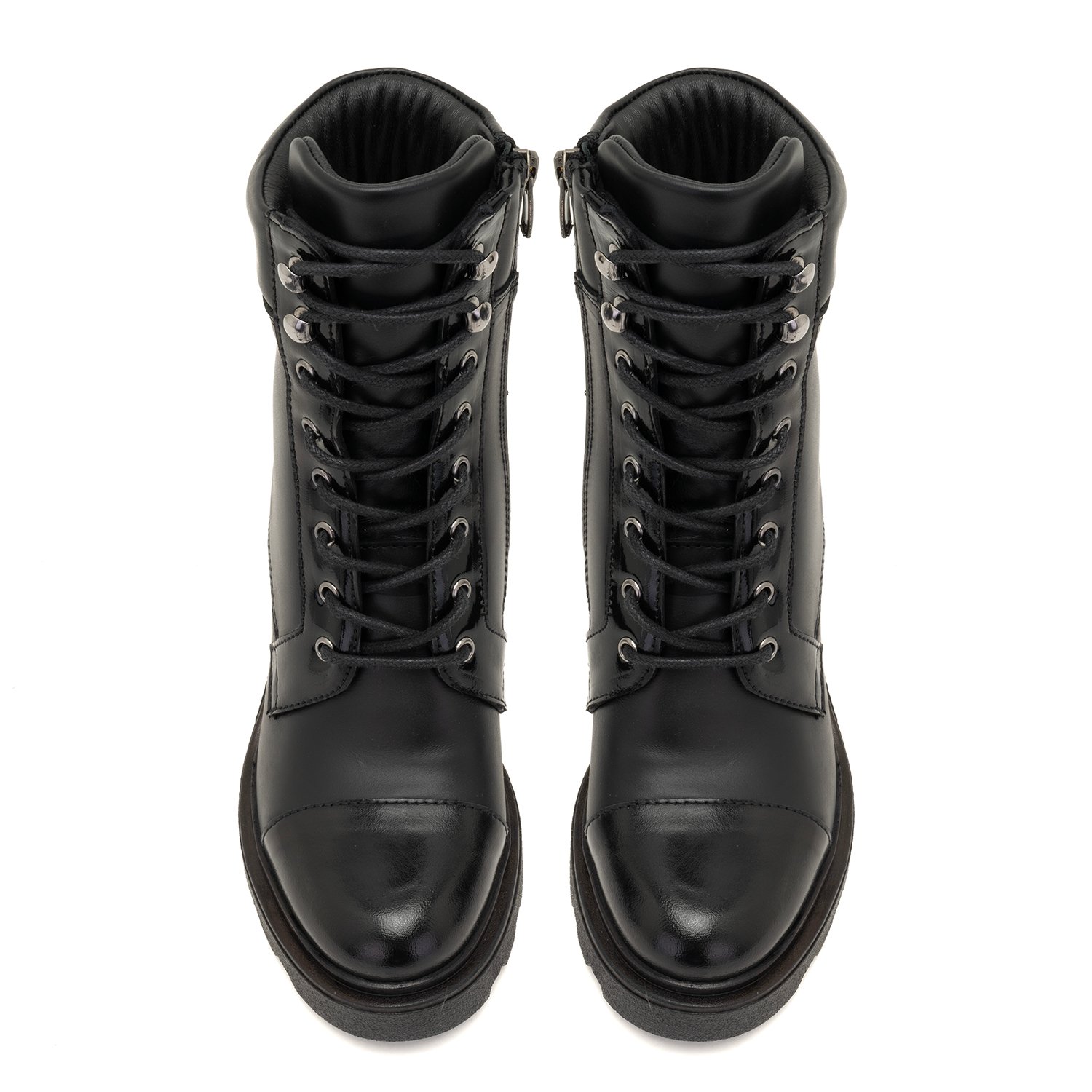%100 deri, deri iç tabanlı, tekstil astarlı, thermo tabanlı, içten fermuarlı, bağcıklı kadın bot.