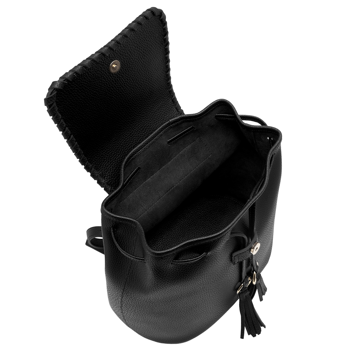 Püskül ve kapağındaki detaylar kadın sırt çantasına şık bir hava katmıştır.