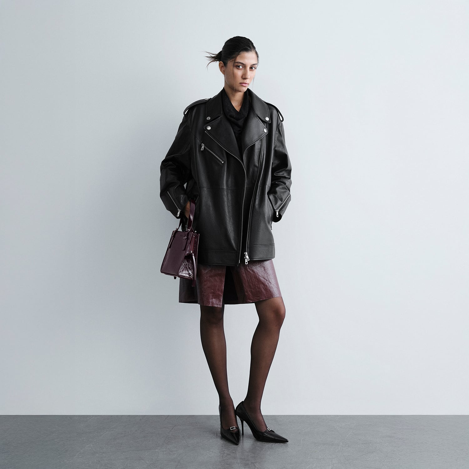Kadın yakalı oversize biker deri ceket