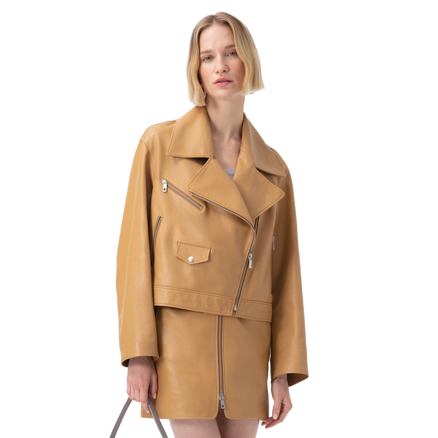 Abrienne Sarı Kadın Deri Etek