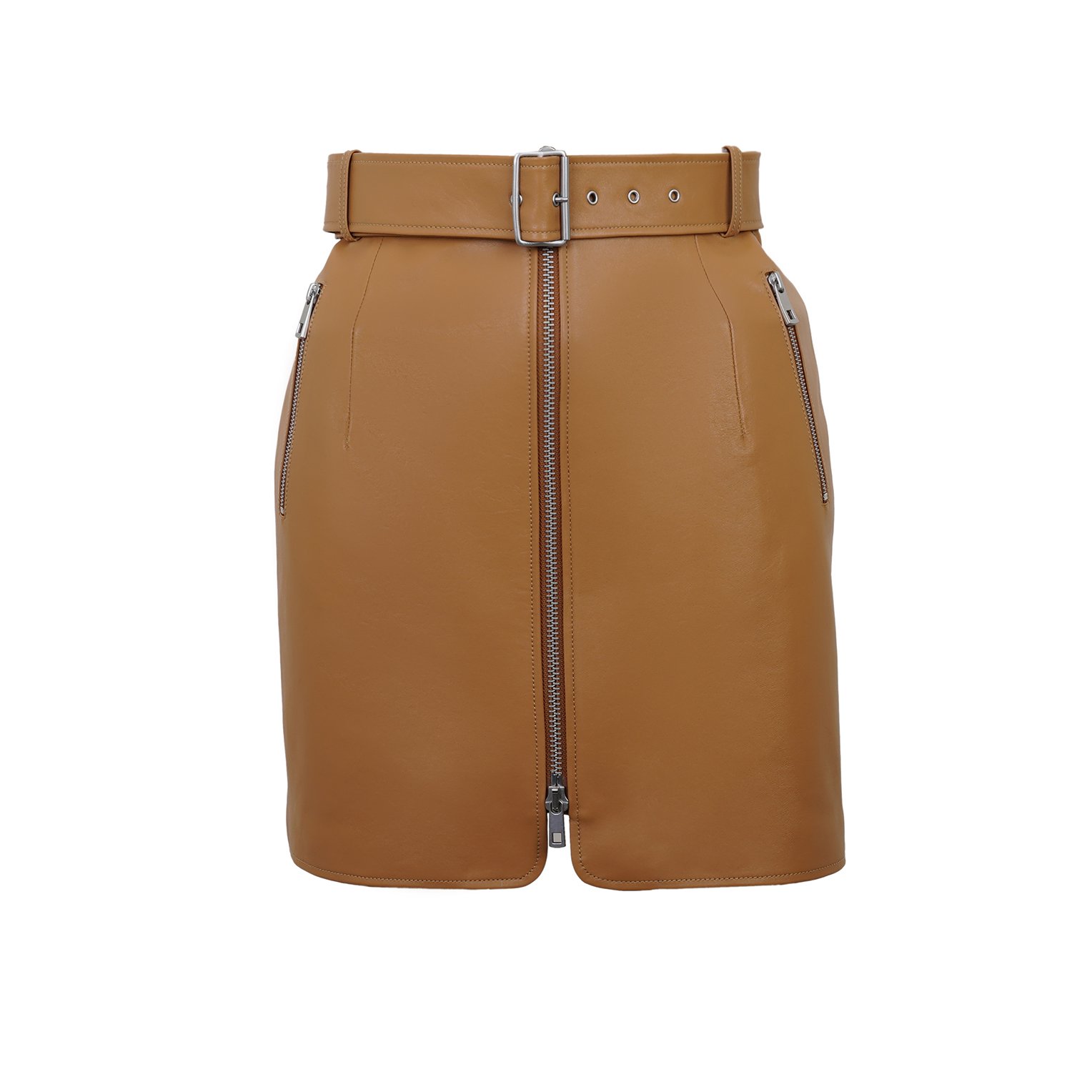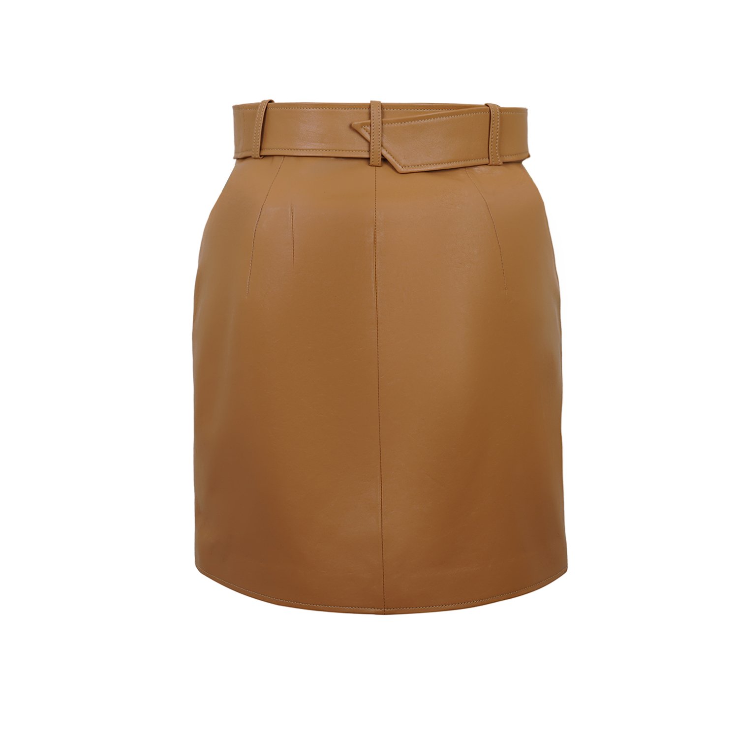 Kadın yüksek bel mini deri etek.