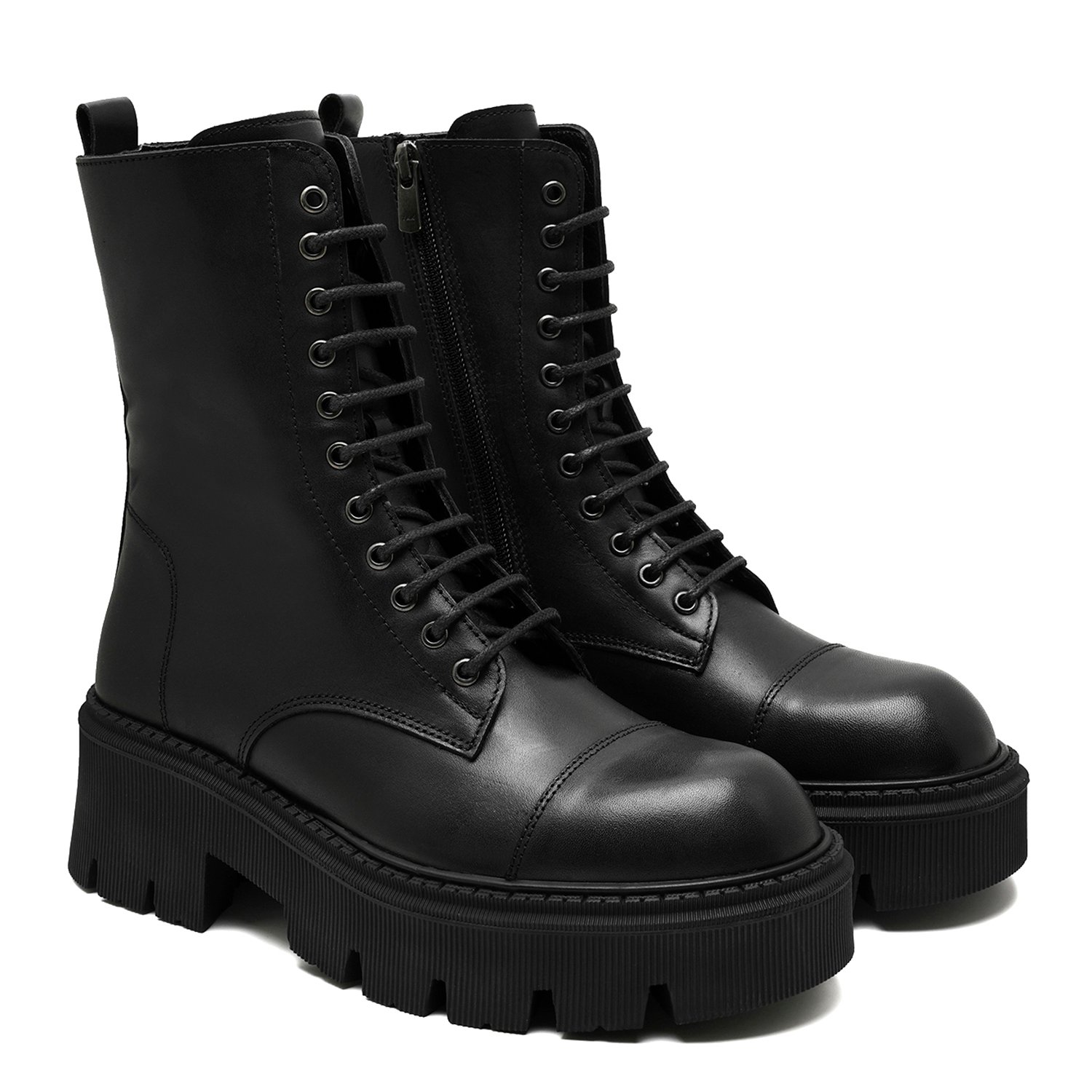 %100 deri, deri iç tabanlı, tekstil astarlı,thermo tabanlı, bağcık detaylı, içten fermuarlı kadın bot.