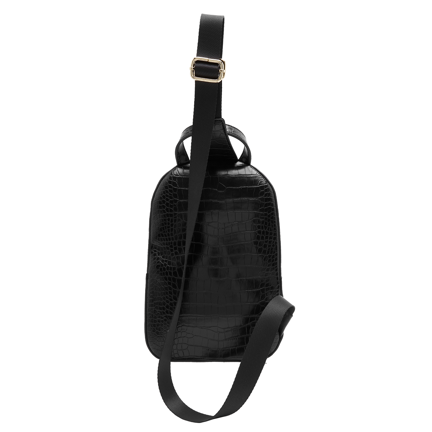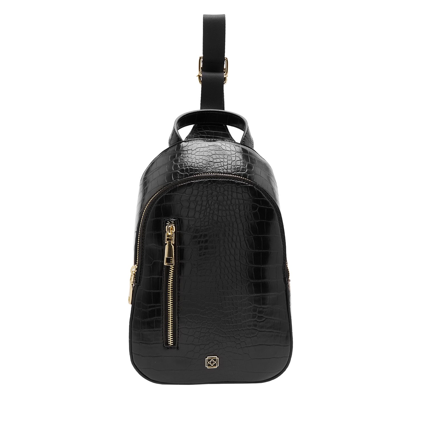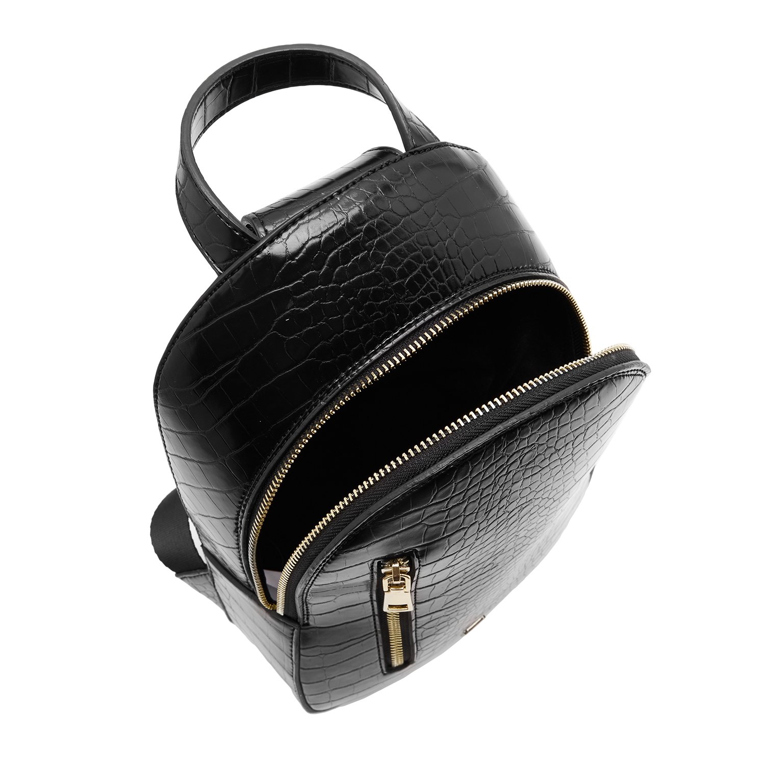 Kadın sırt çantasının ön gövdesinde fermuarlı bölme vardır.