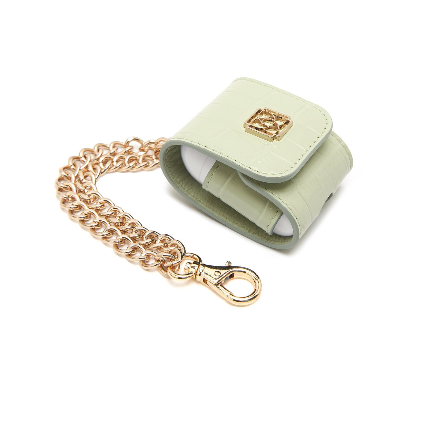 Açık Yeşil Zincir Detaylı Deri Airpods Kılıfı