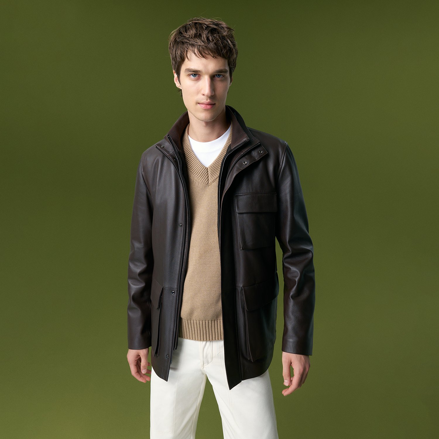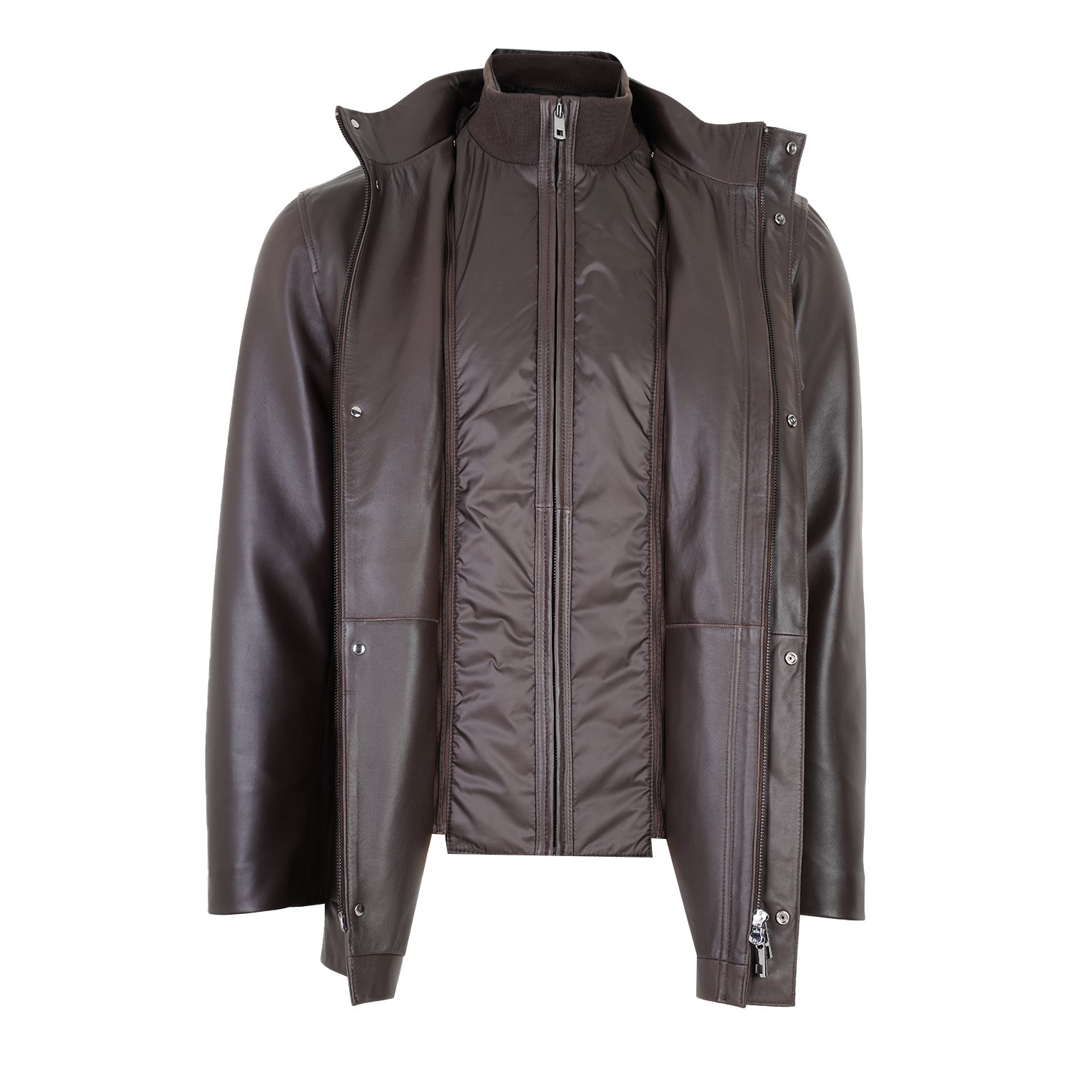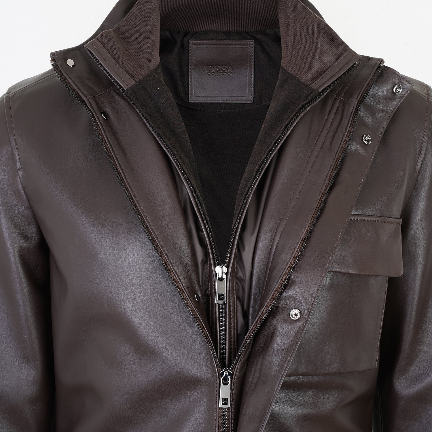 Erkek hakim yakalı çıkma yelek detaylı deri mont.