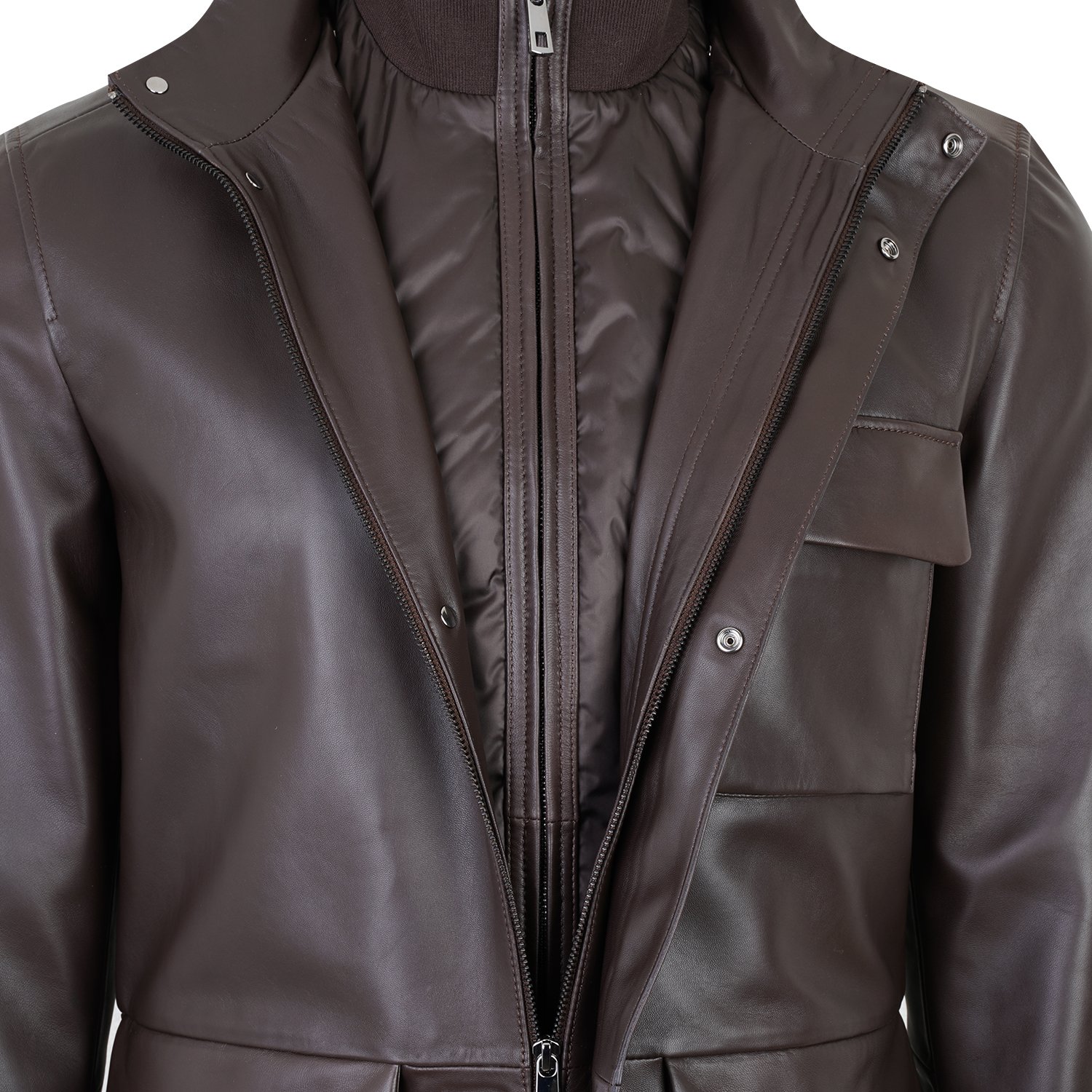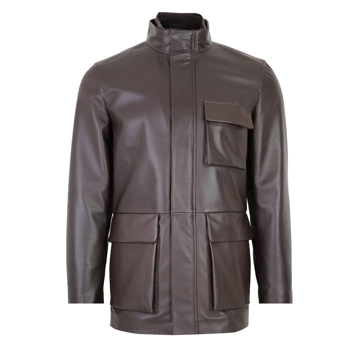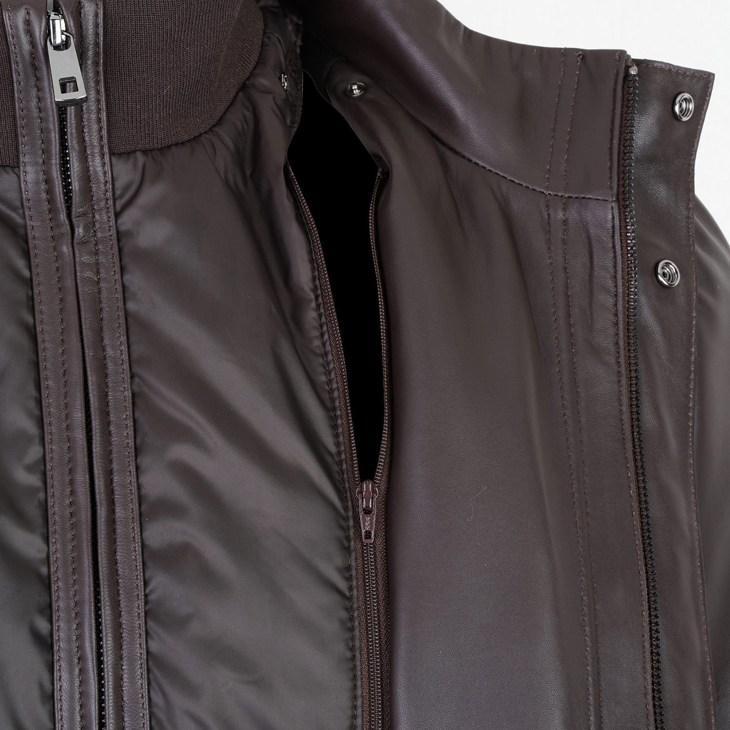 Erkek hakim yakalı çıkma yelek detaylı deri mont.