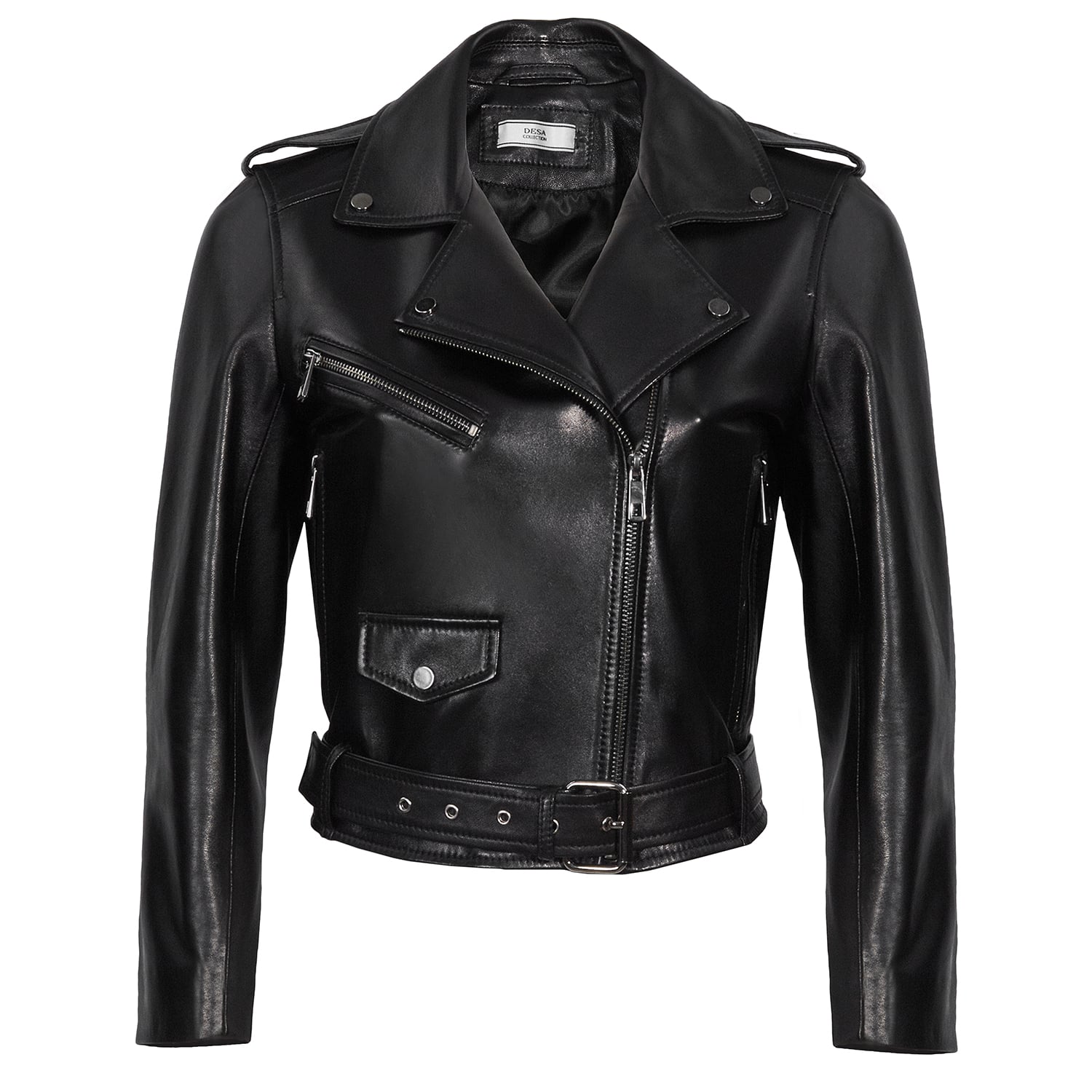 Adalbeorht Kadın Deri Kısa Biker Mont