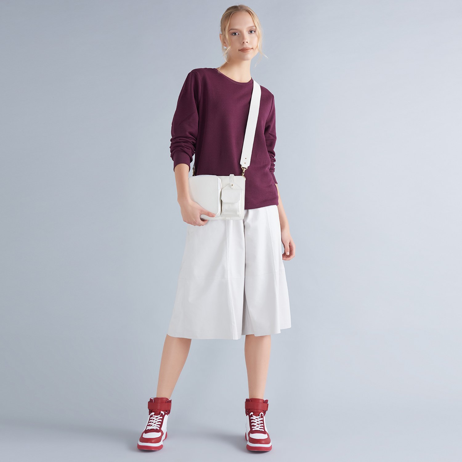 Kadın deri bermuda pantolon.