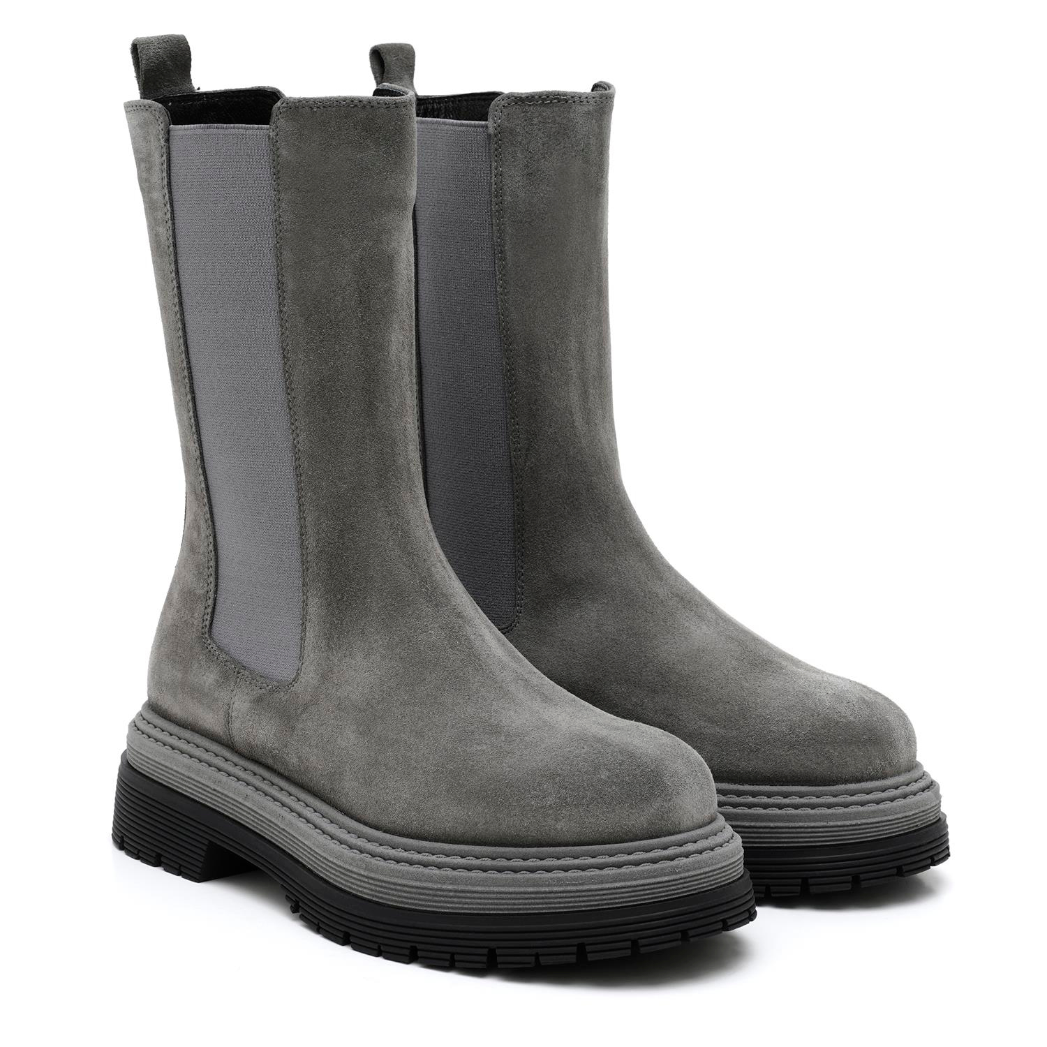 Adella Gri Kadın Yandan Lastikli Süet Deri Chelsea Bot