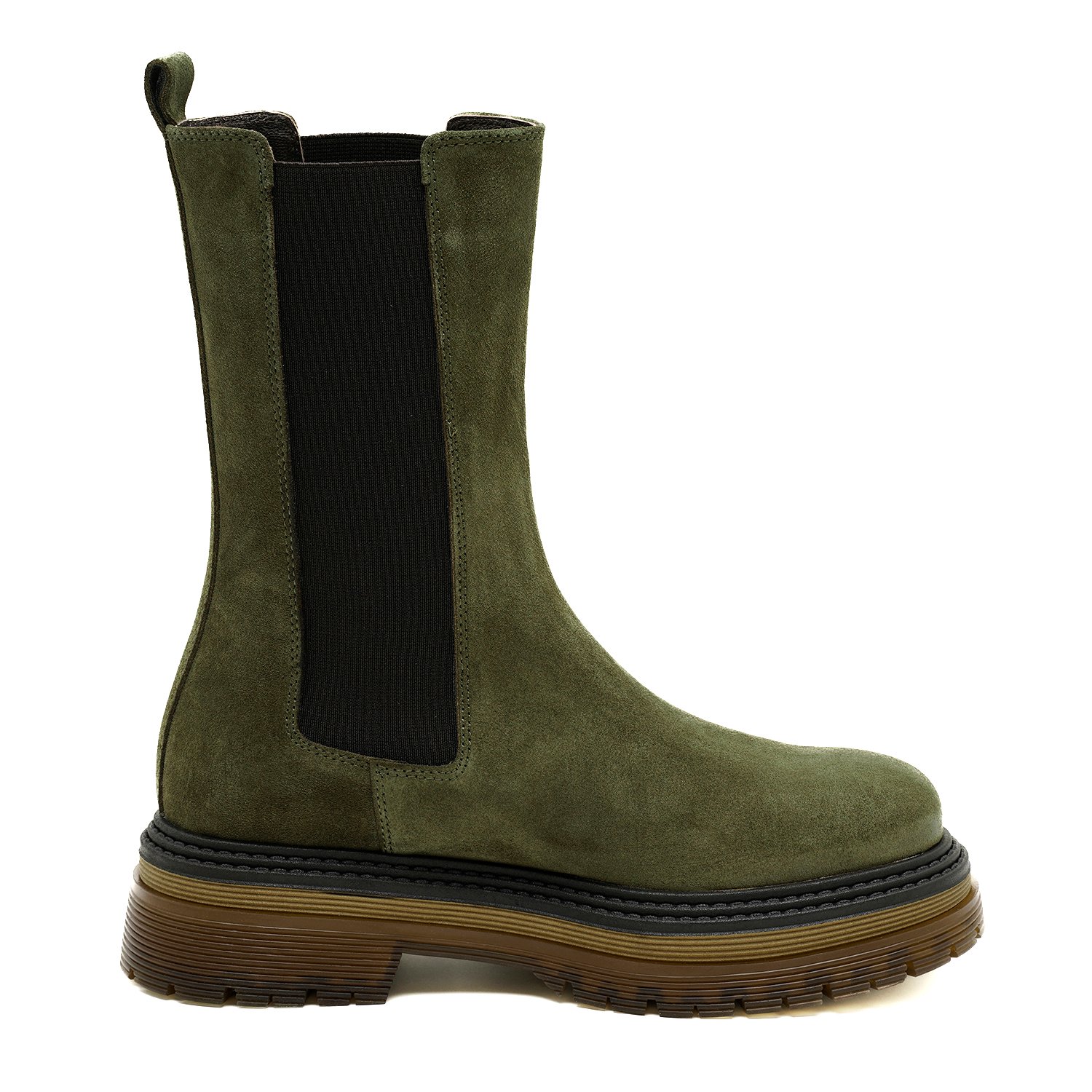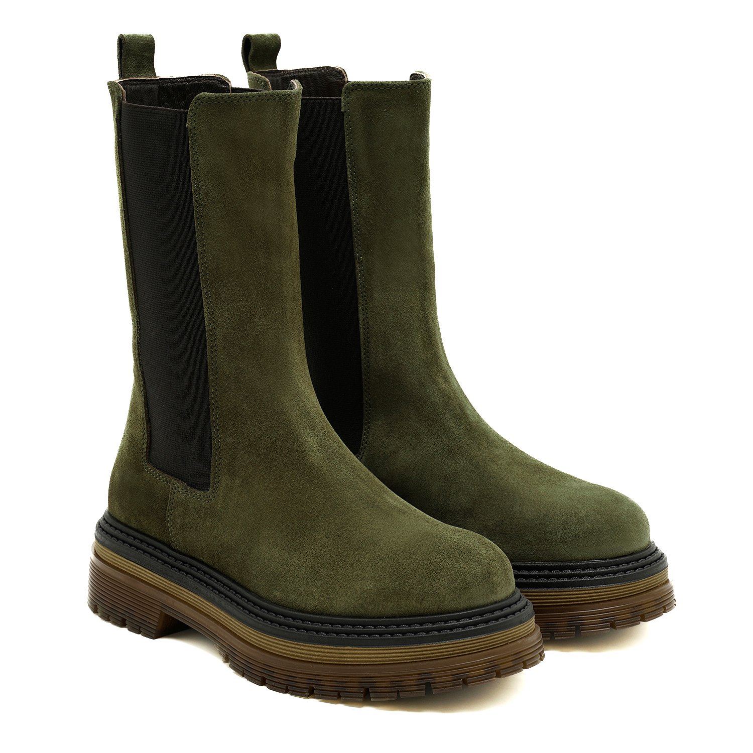 Adella Yeşil Kadın Yandan Lastikli Süet Deri Chelsea Bot