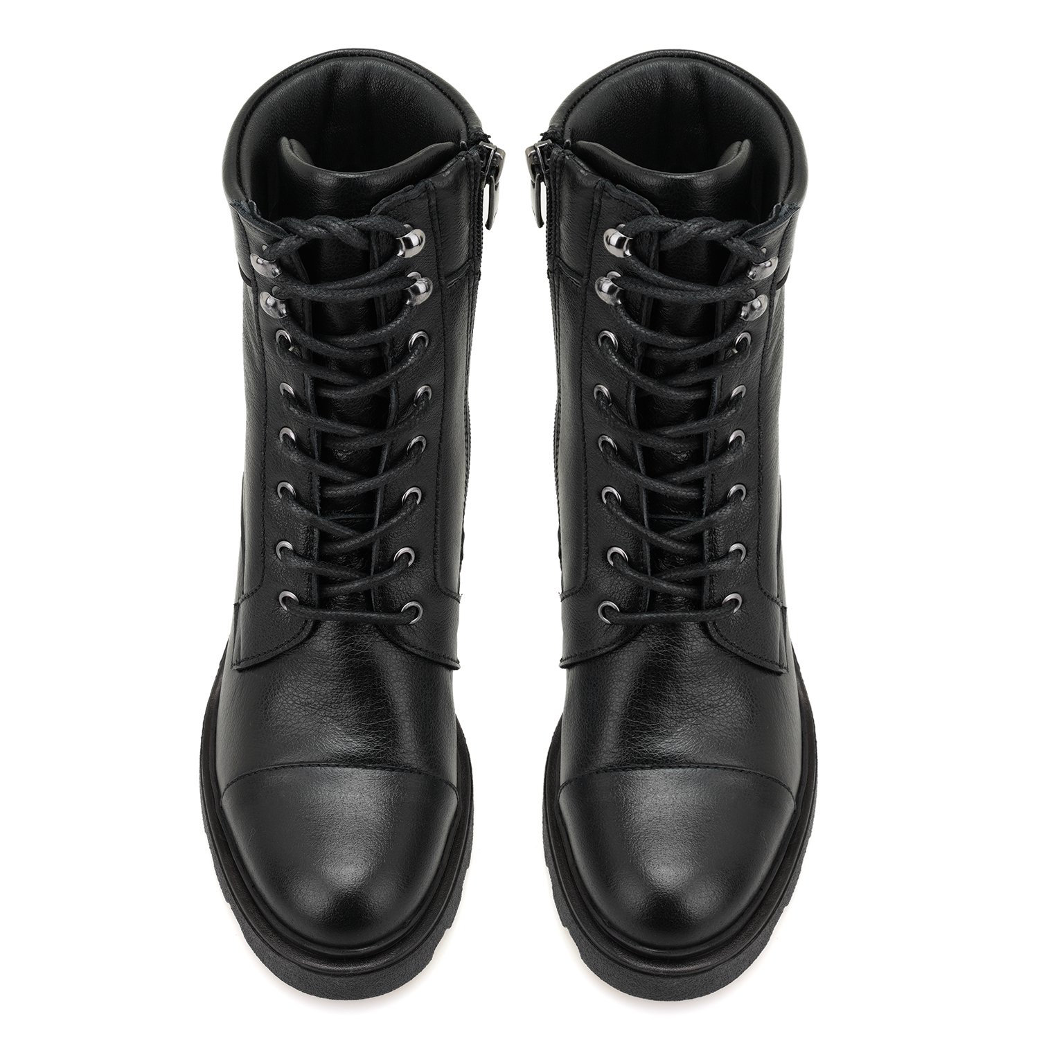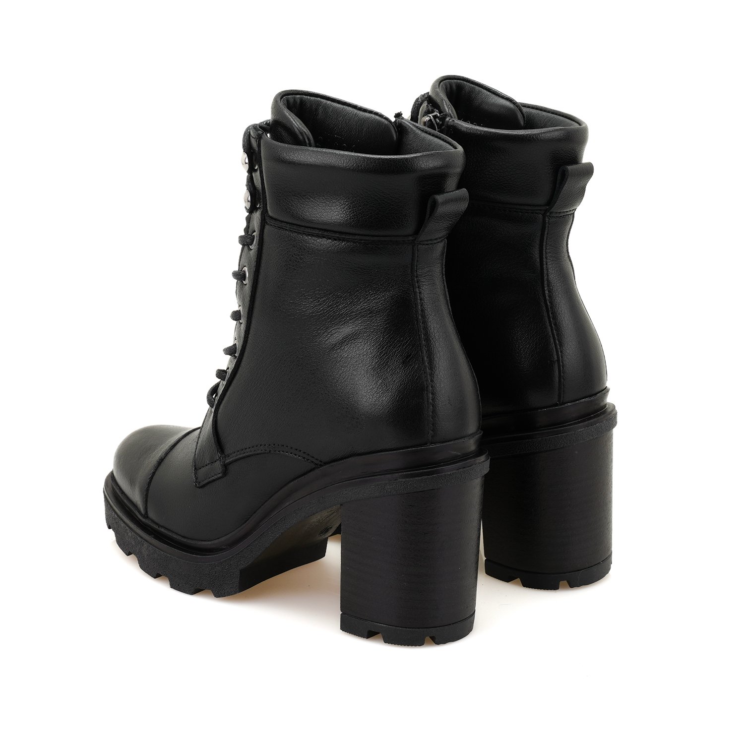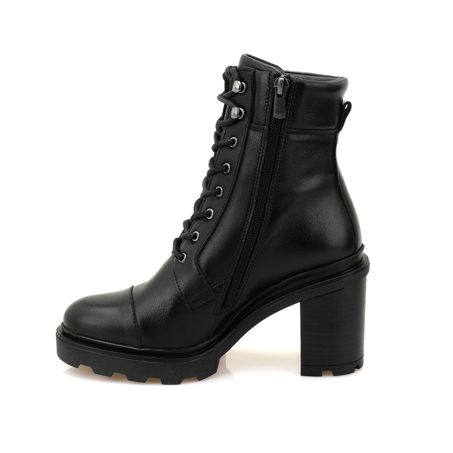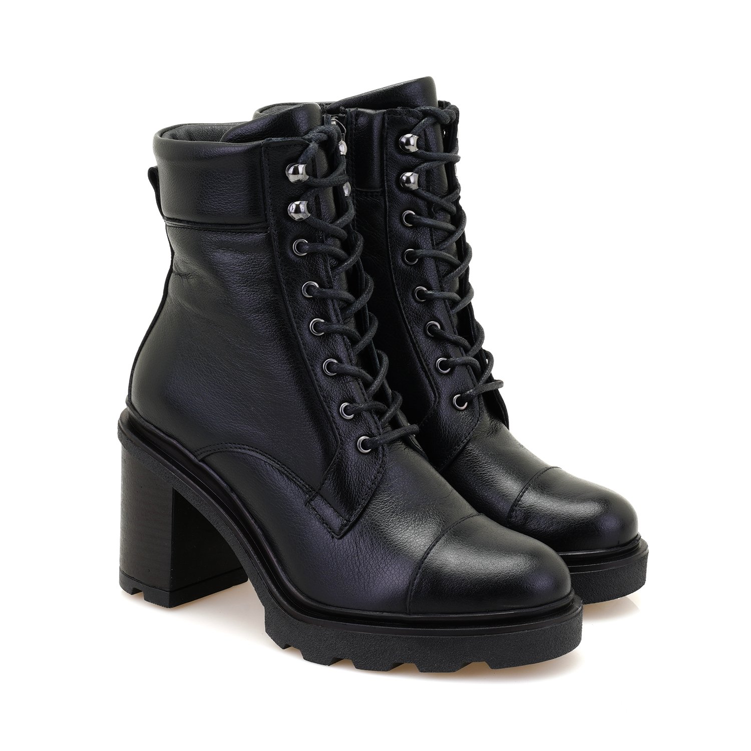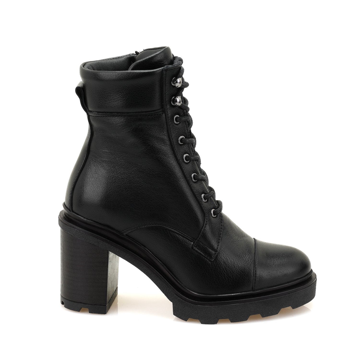 %100 deri, deri iç tabanlı, tekstil iç astarlı, thermo tabanlı, bağcıklı kadın bot. Topuk yüksekliği 7 cm