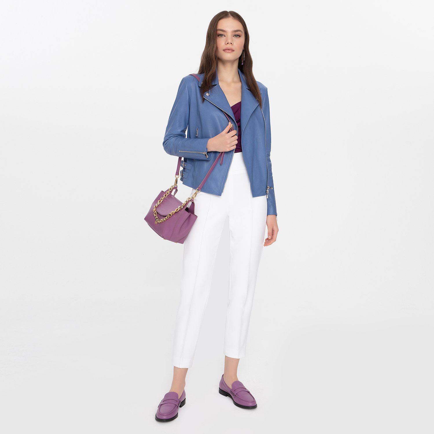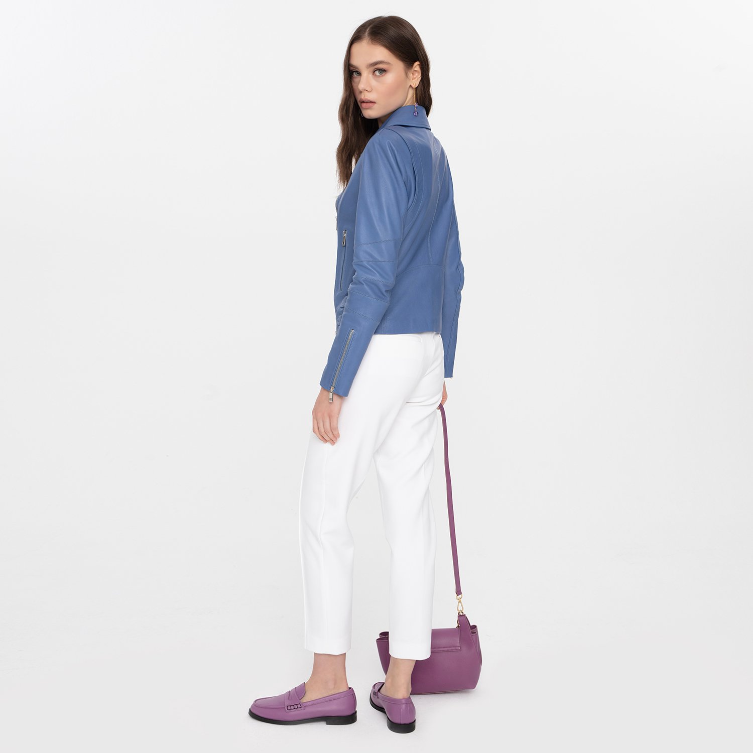 Adsilla Mavi Kadın Deri Ceket