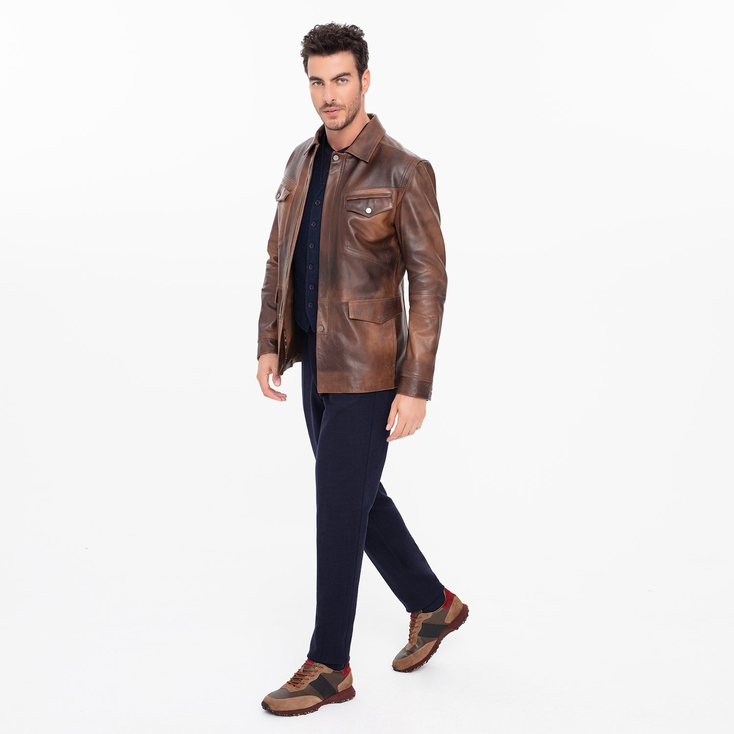 Deri üzerine özel olarak vintage effekt görünümü verilmiştir.