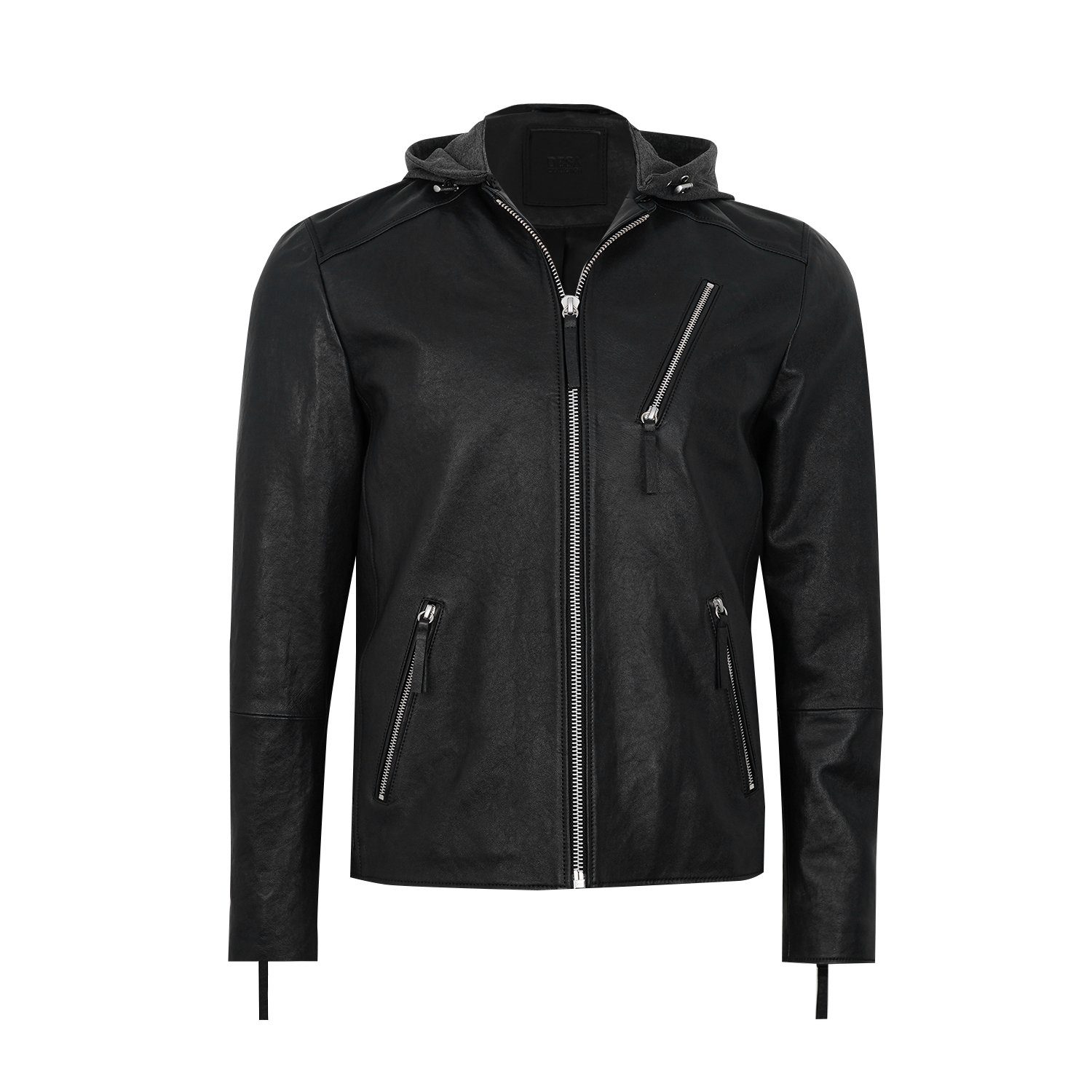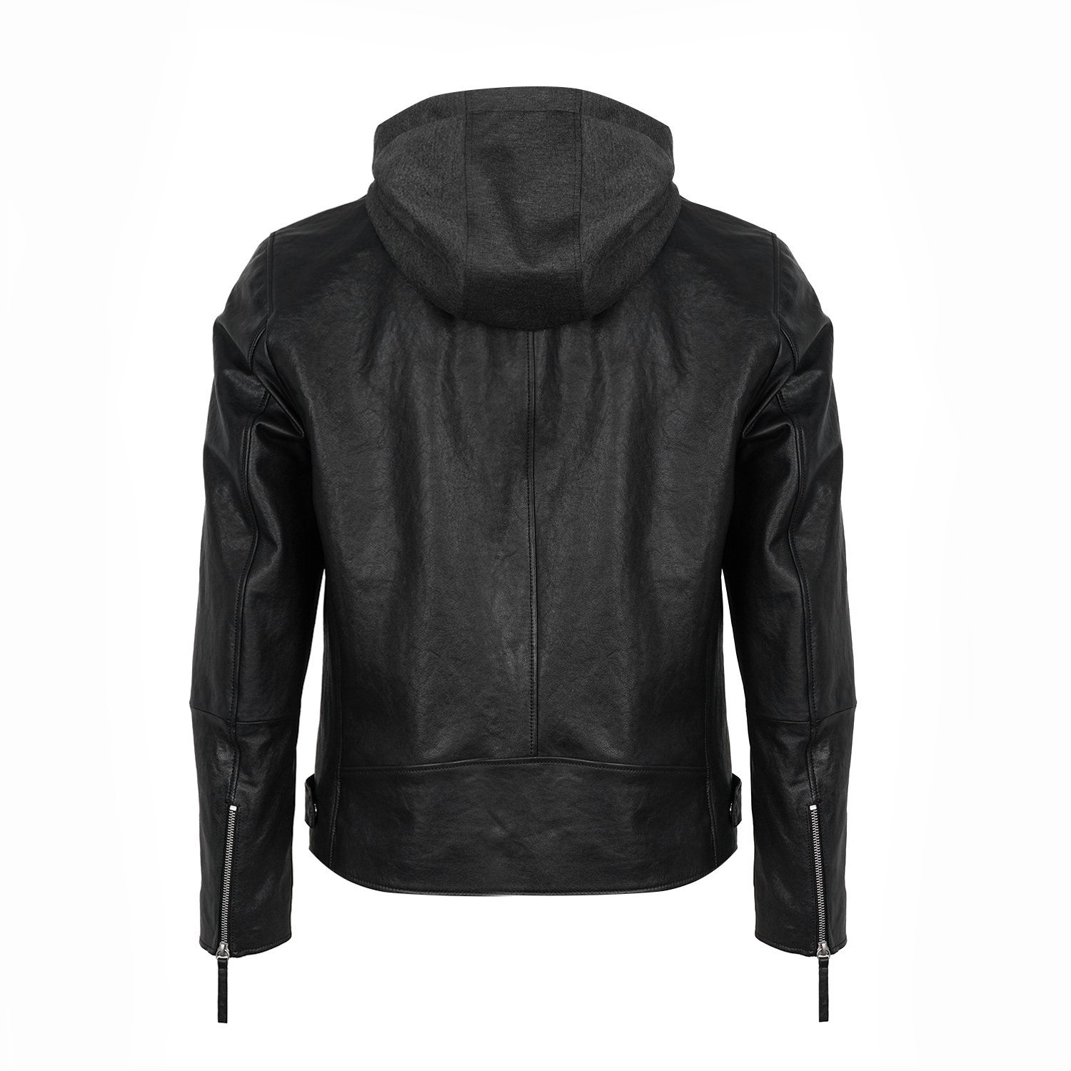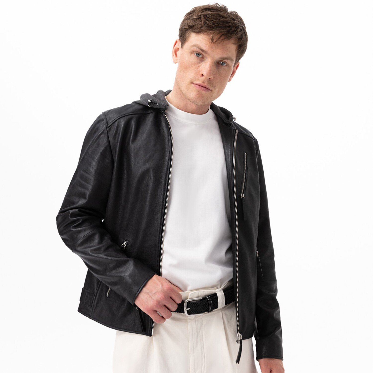 Aimone Siyah Erkek Kapüşonlu Deri Ceket
