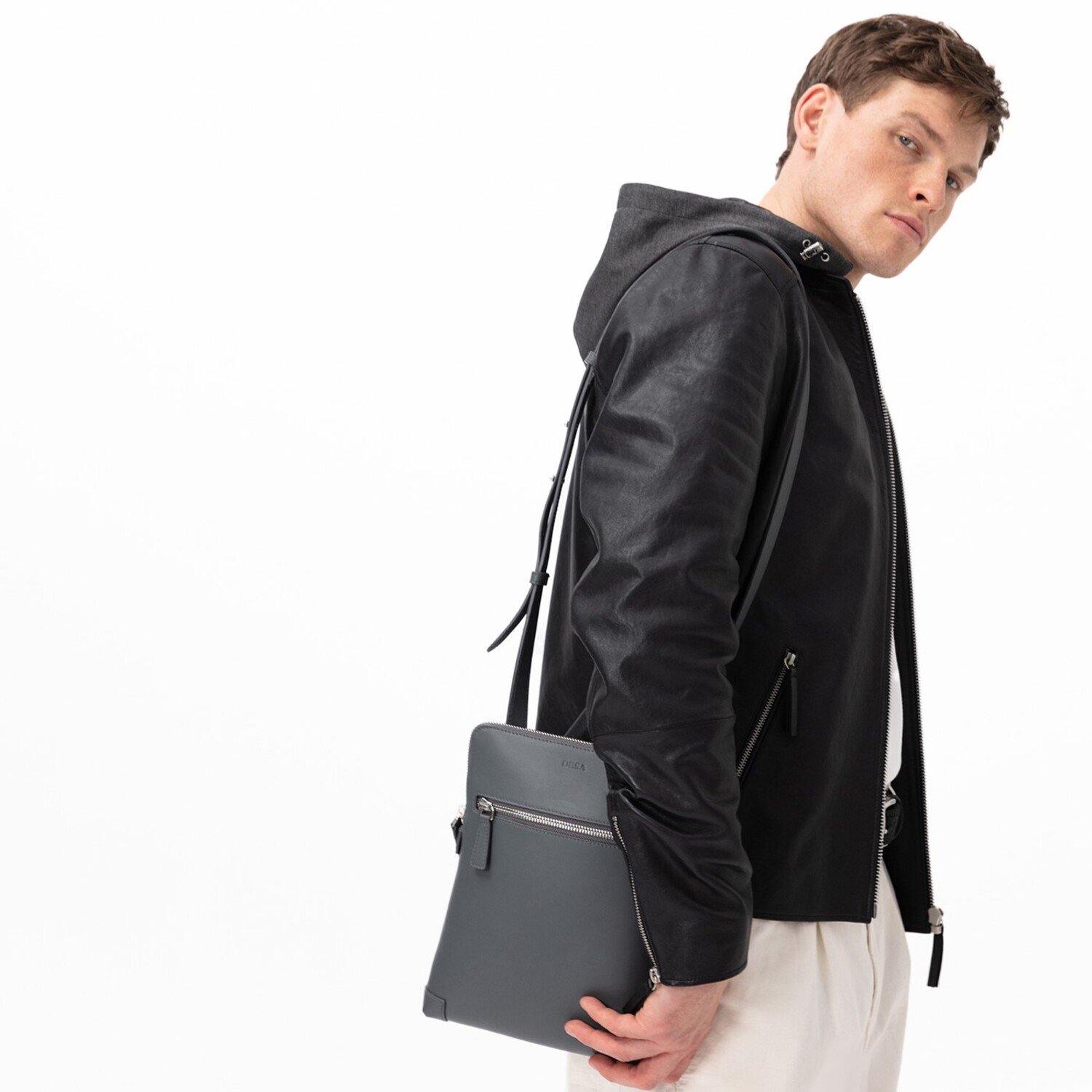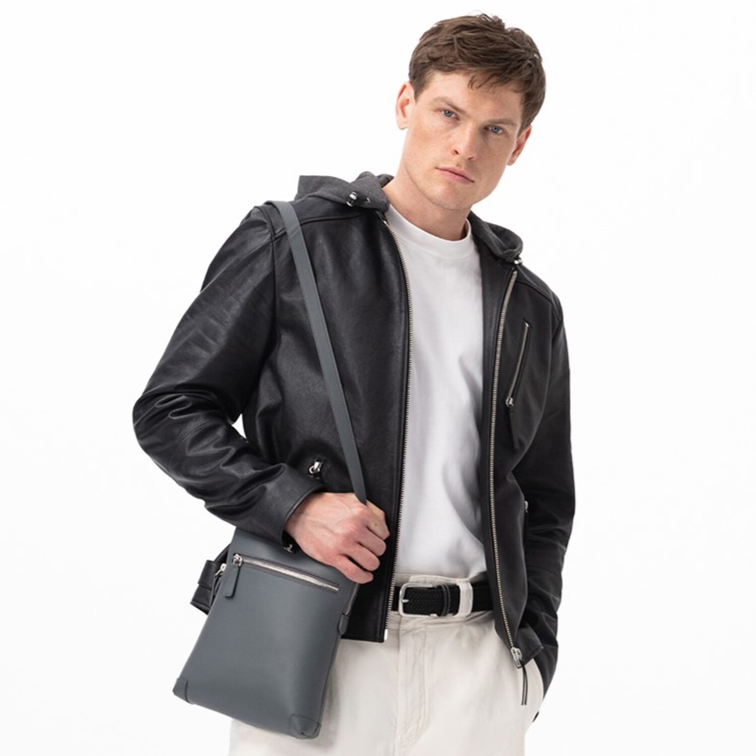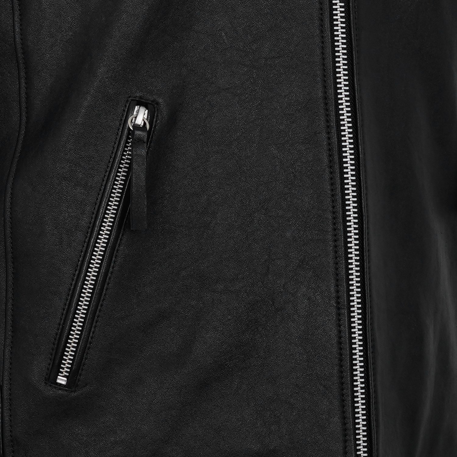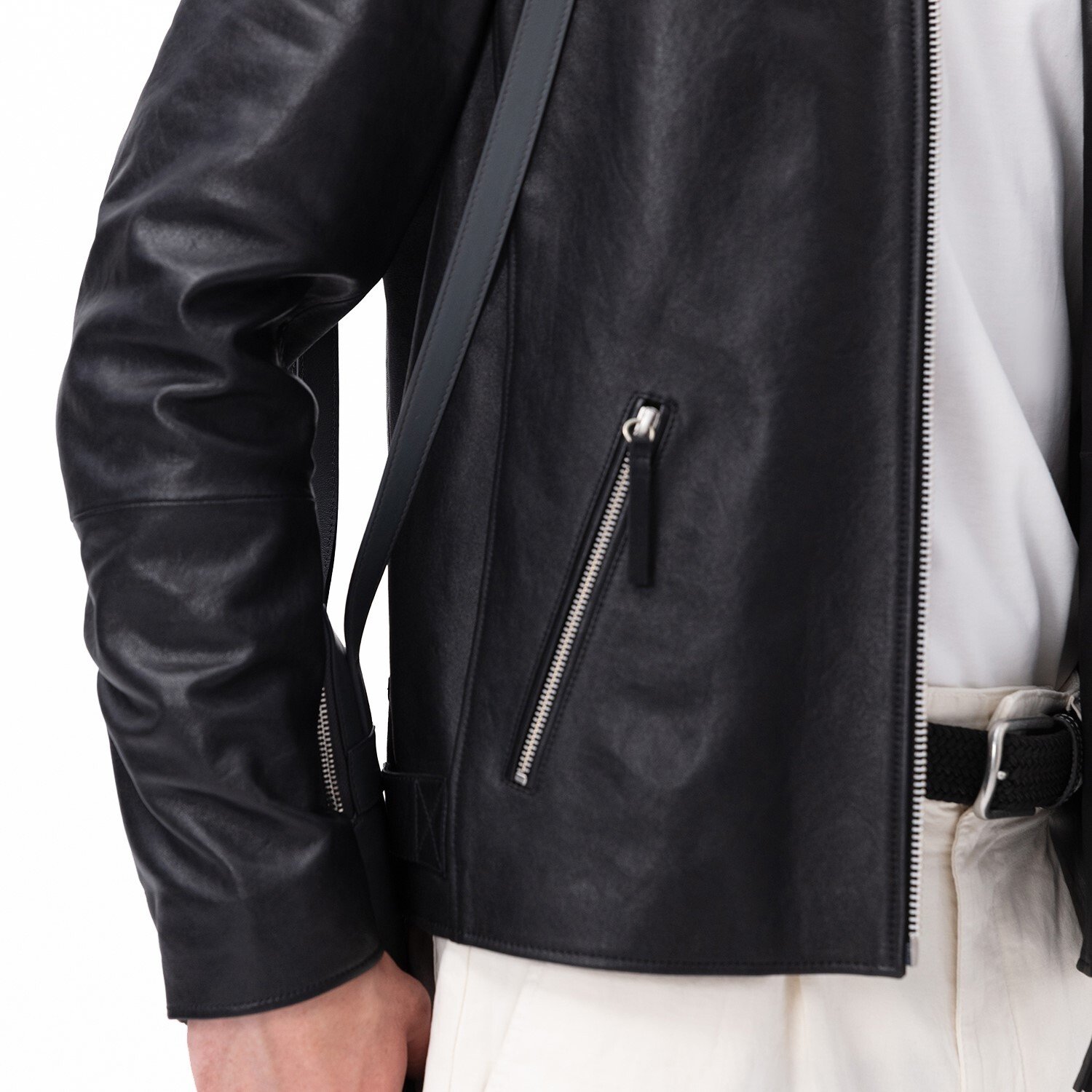 Aimone Siyah Erkek Kapüşonlu Deri Ceket