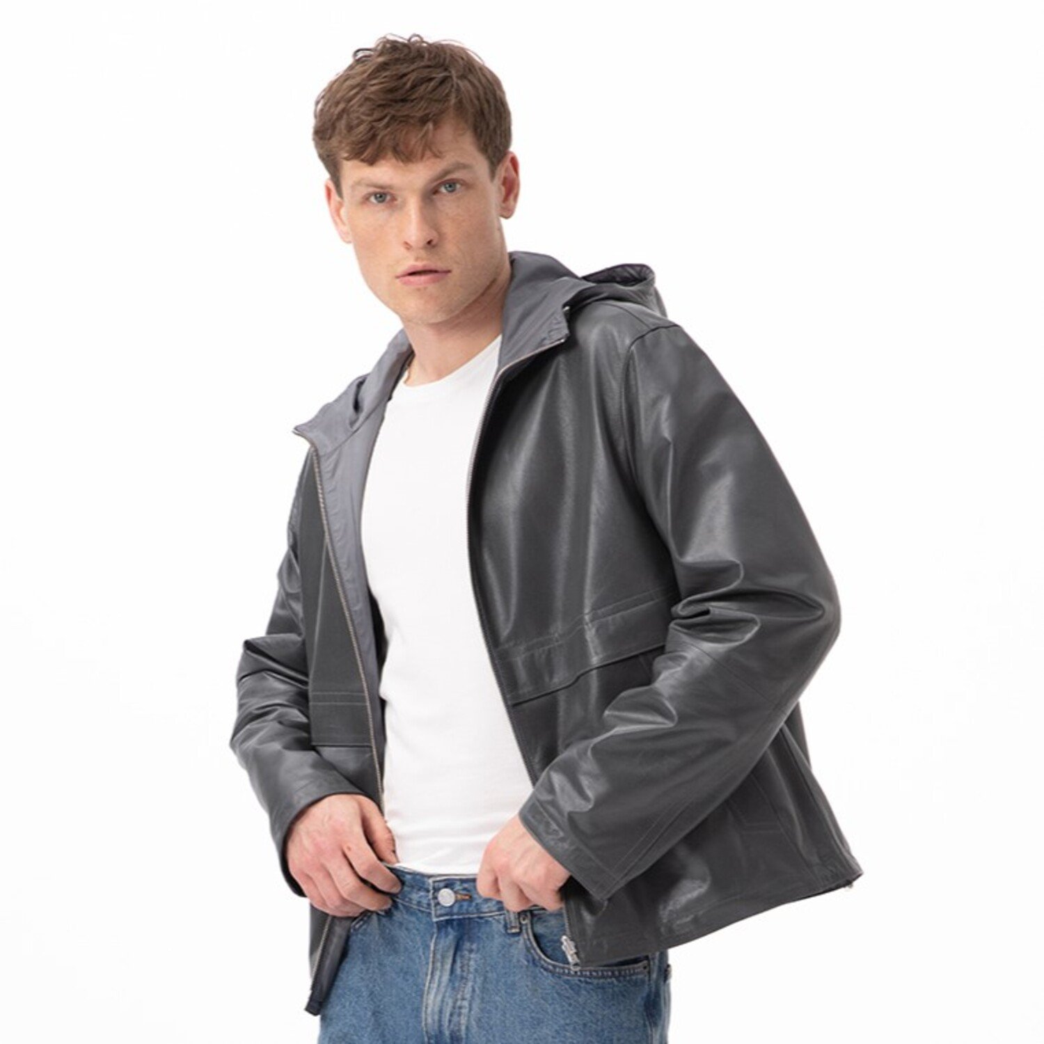 Alanzo Gri Erkek Çift Taraflı Bomber Deri Ceket