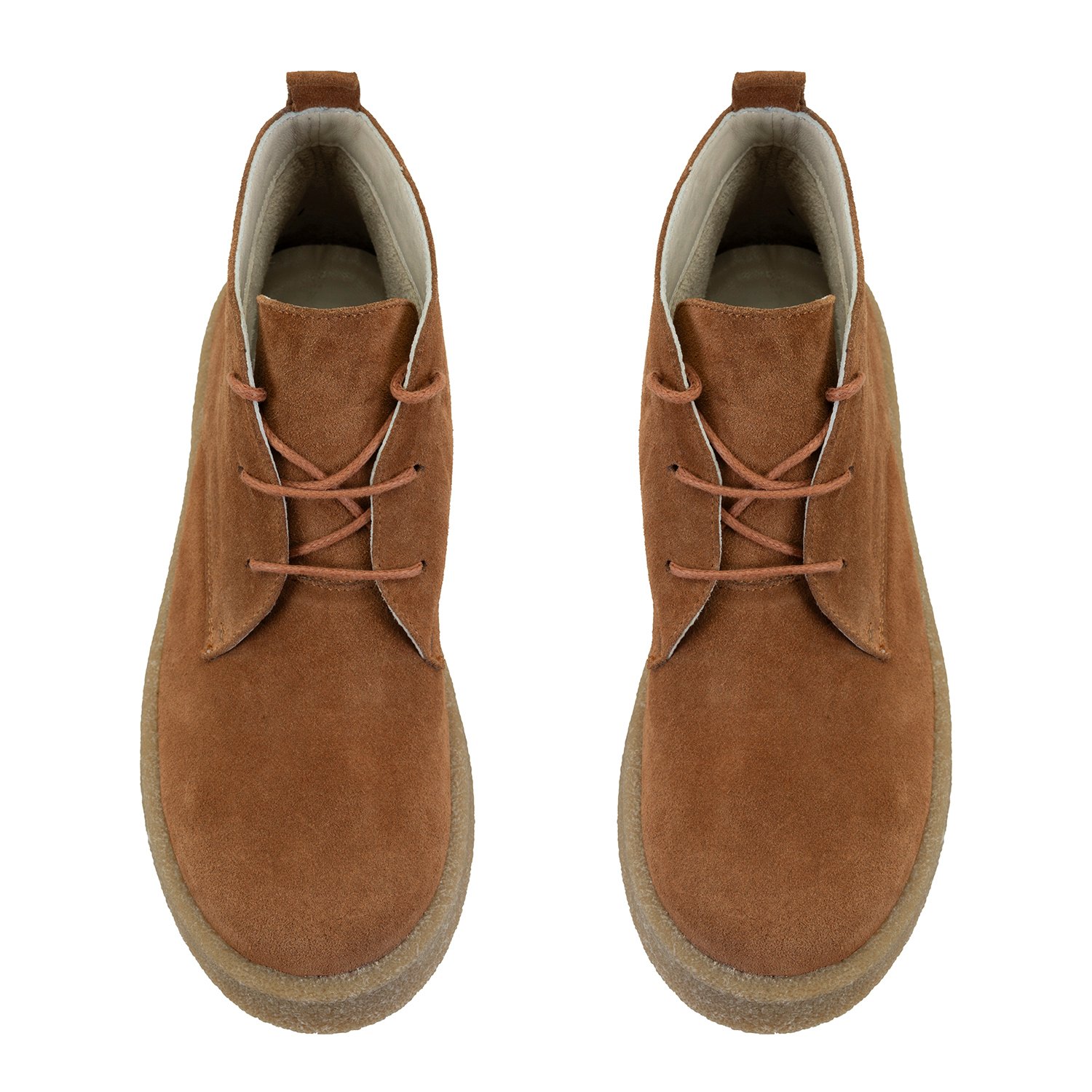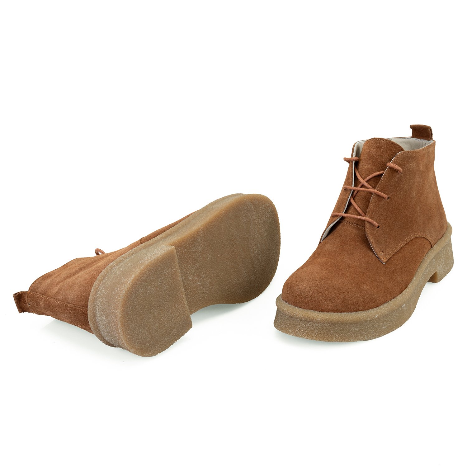 %100 süet deri, deri iç tabanlı, tekstil astarlı, termo tabanlı, bağcıklı kadın hush puupy bot.