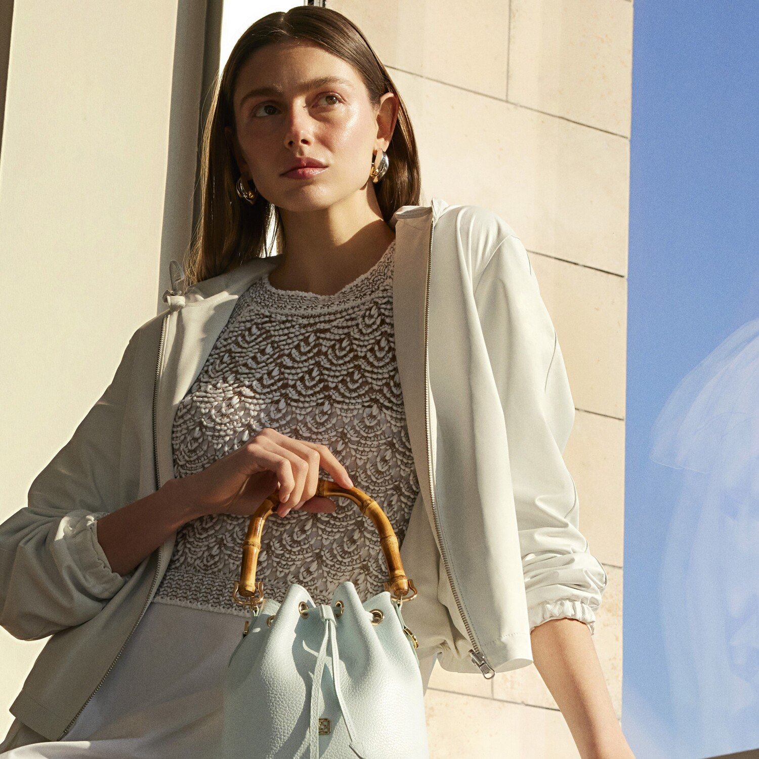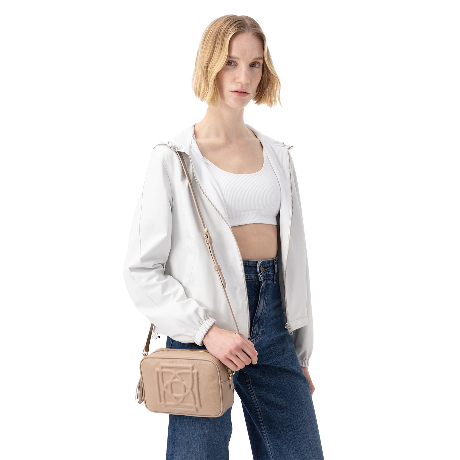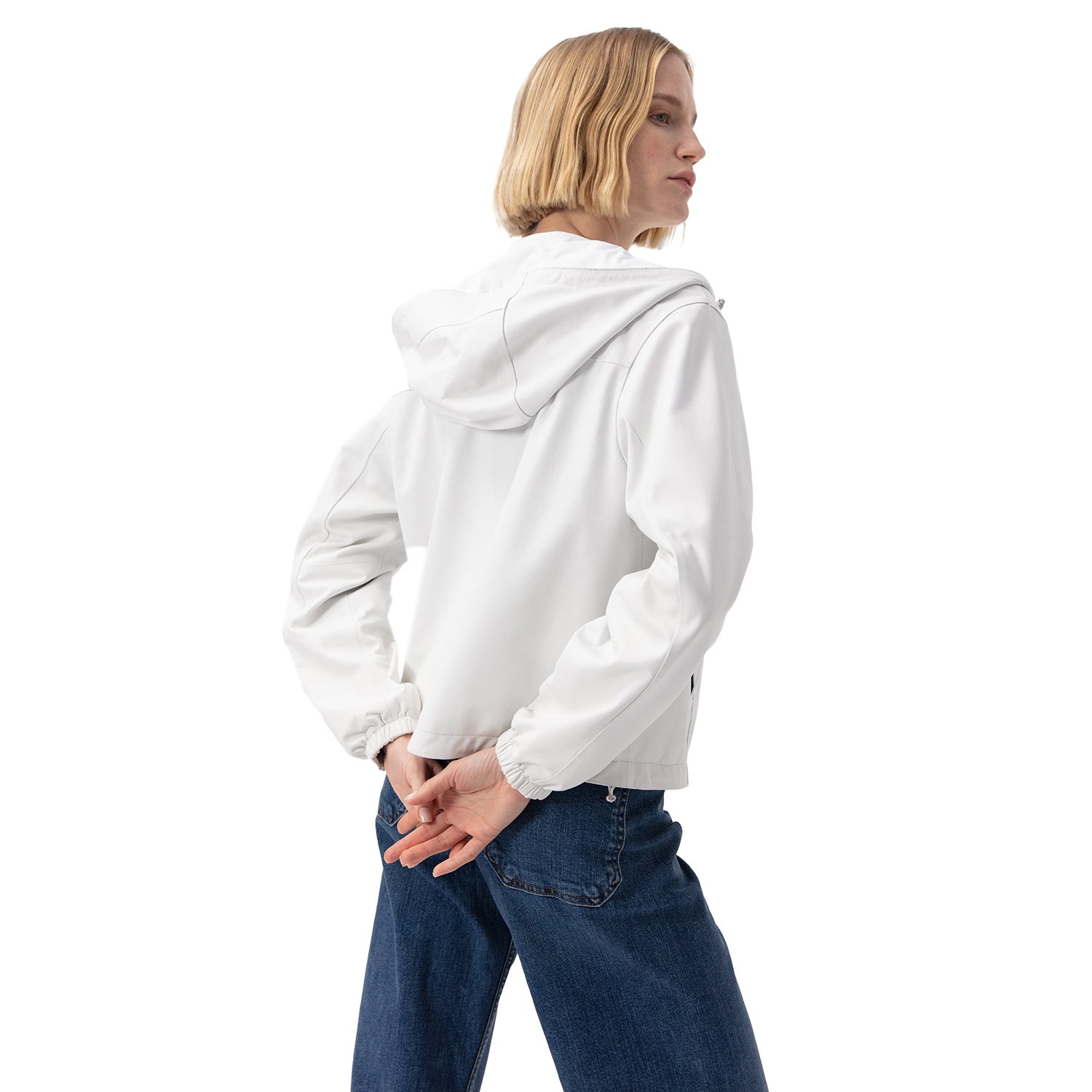 Alette Beyaz Kadın Çift Taraflı Bomber Deri Ceket