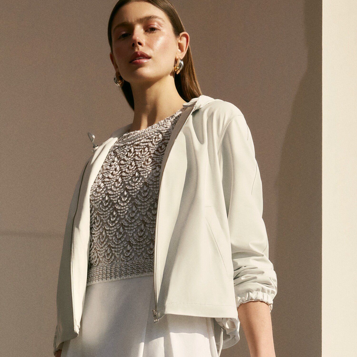 Etek ucu ve kapüşon kısmında ayarlanabilir kulisan detayı bulunmaktadır.
