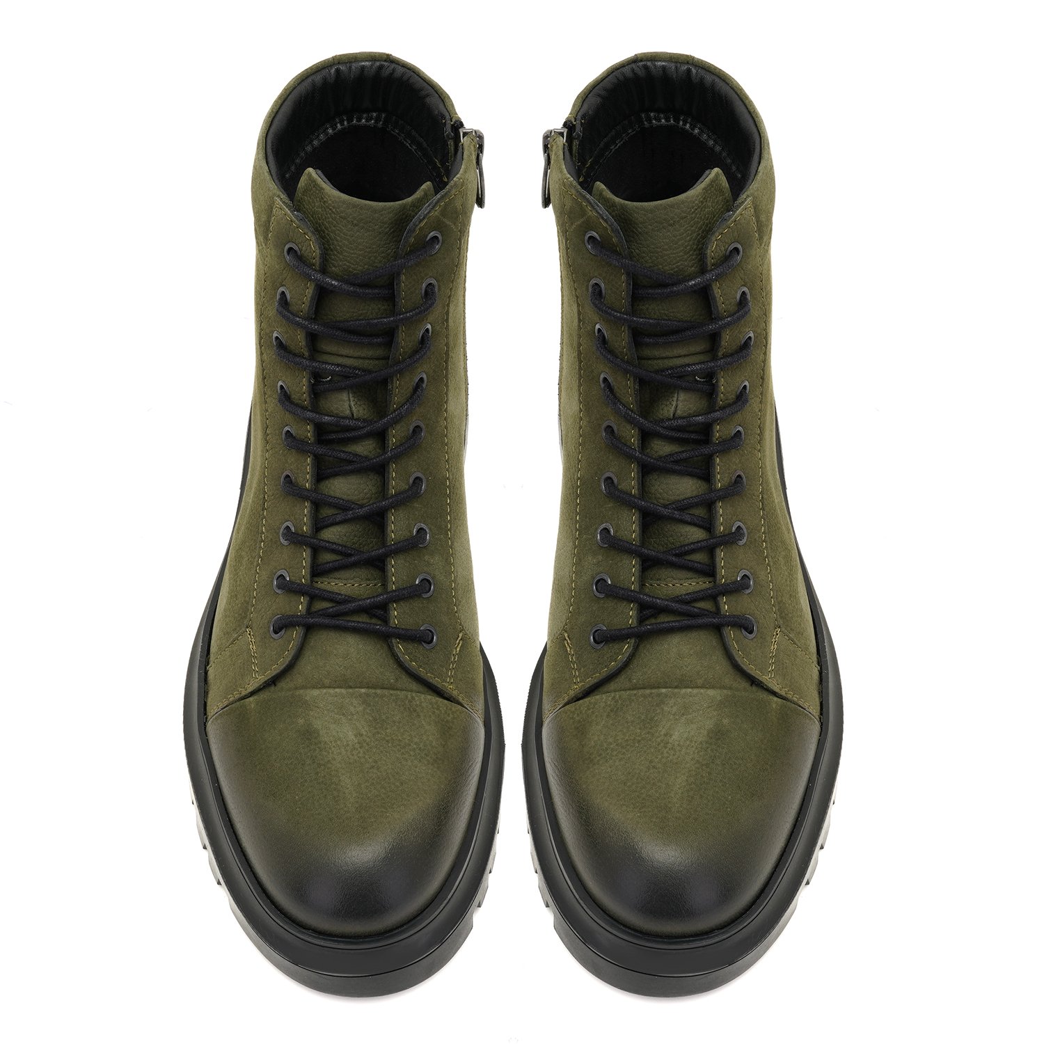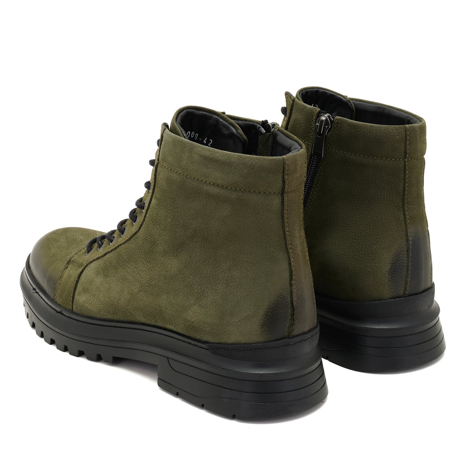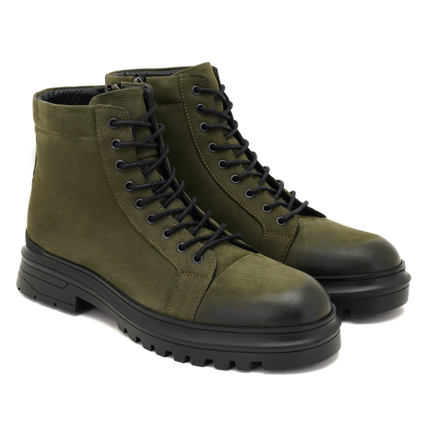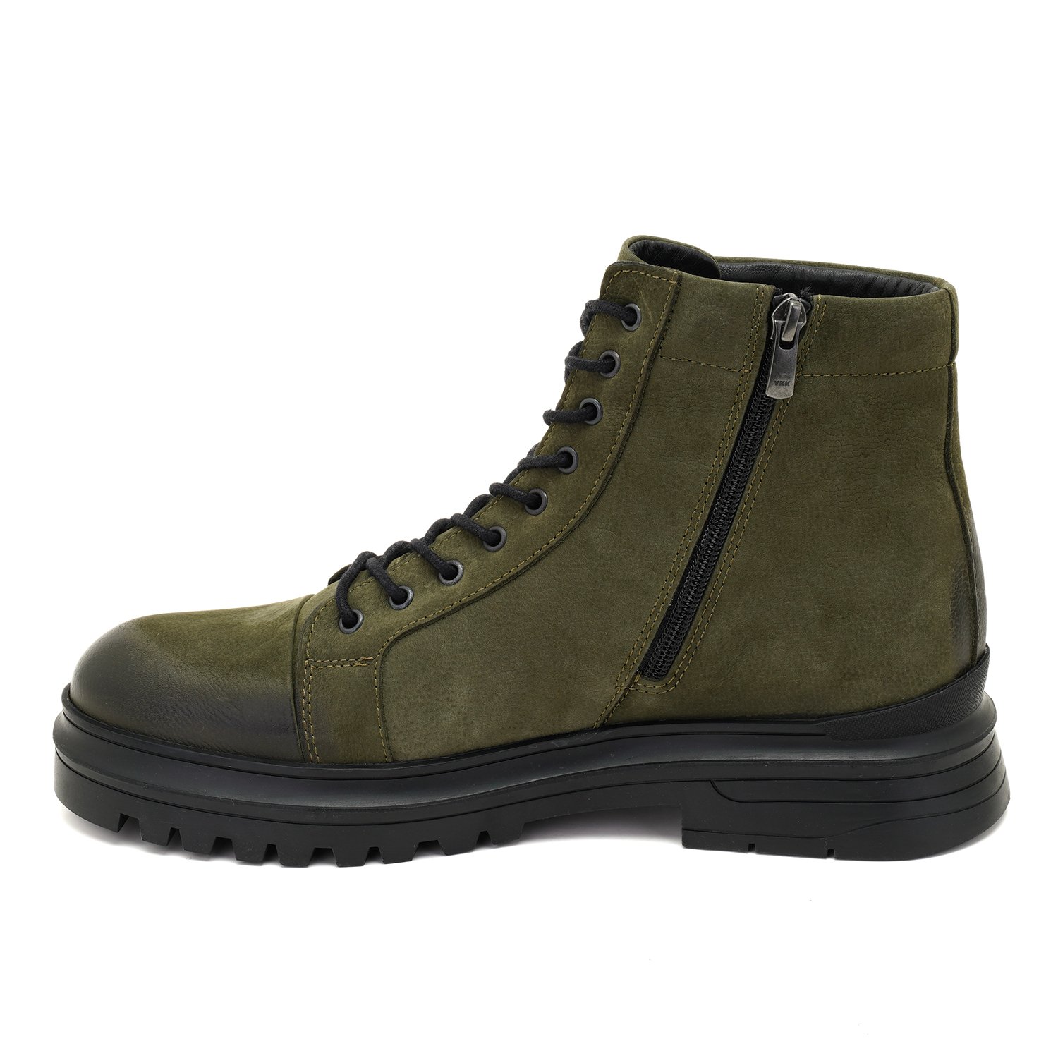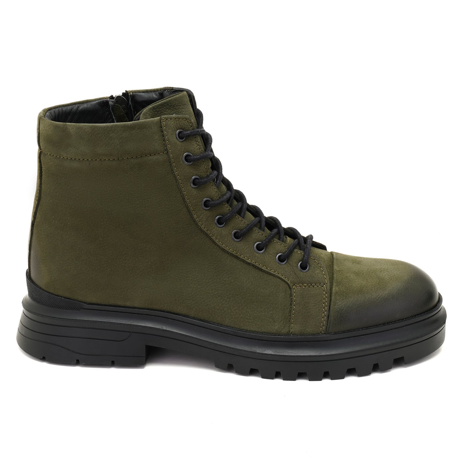 %100 nubuk deri, deri iç tabanlı, tekstil astarlı, kauçuk tabanlı, bağcıklı erkek bot.