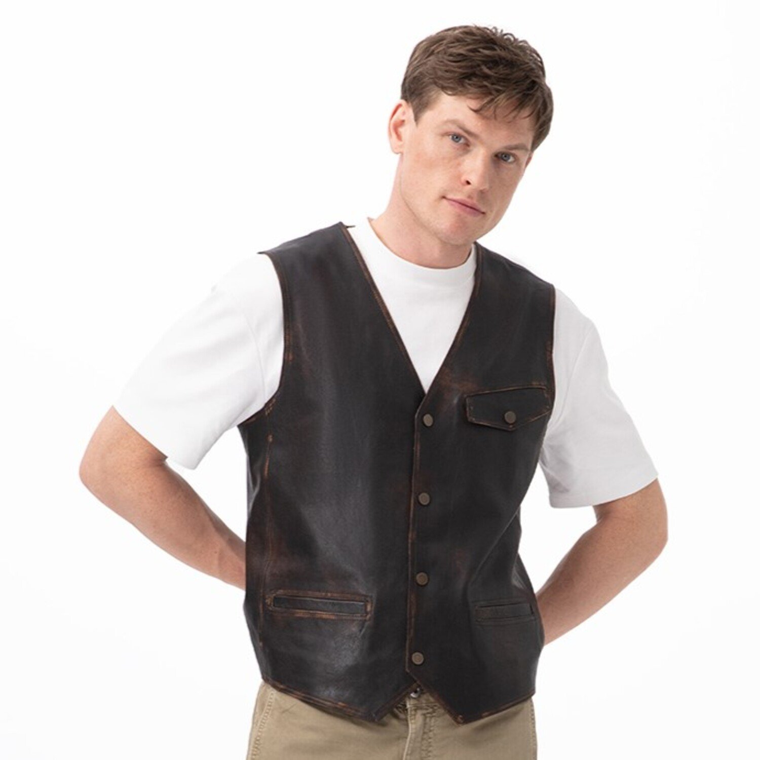 Erkek deri yelek.
