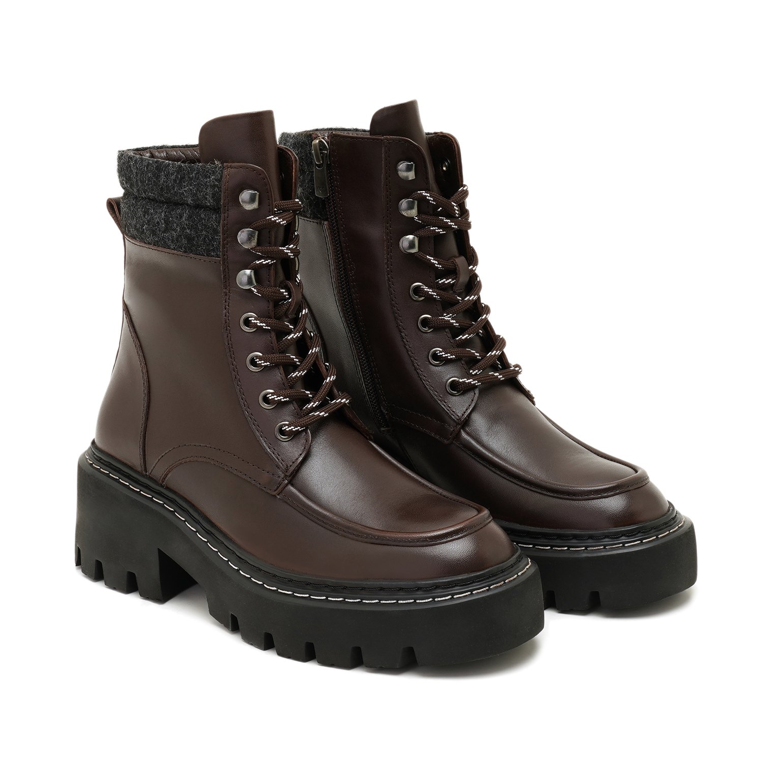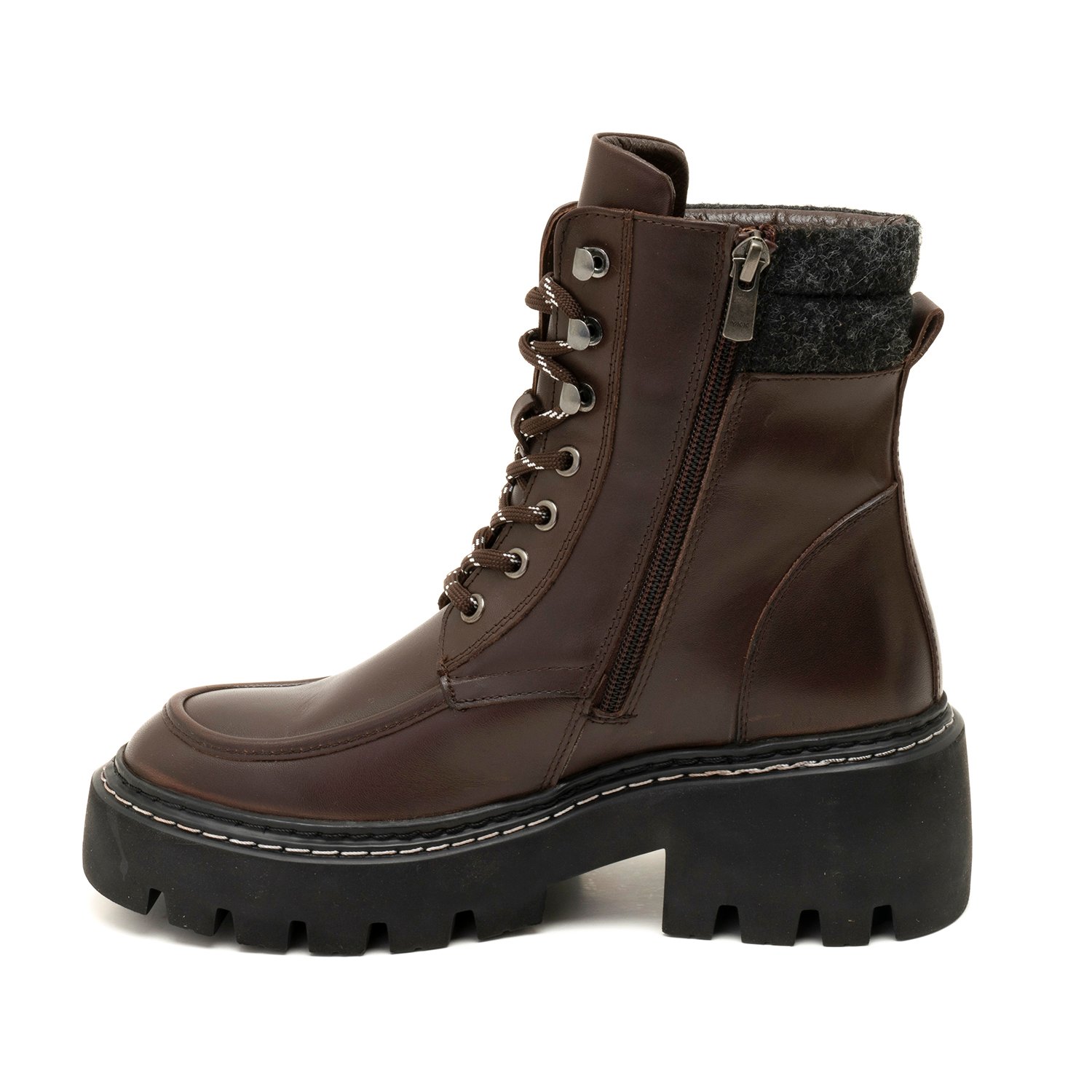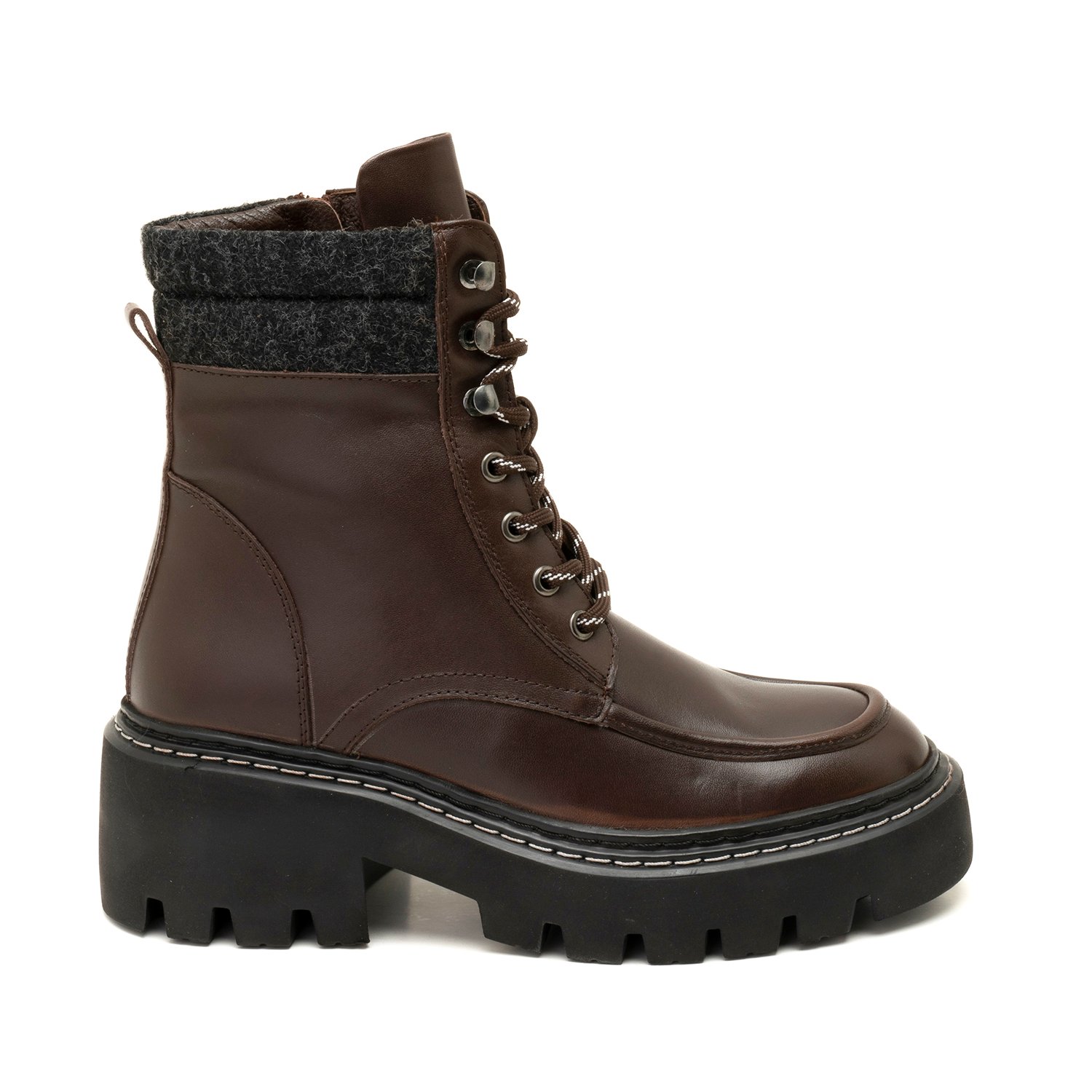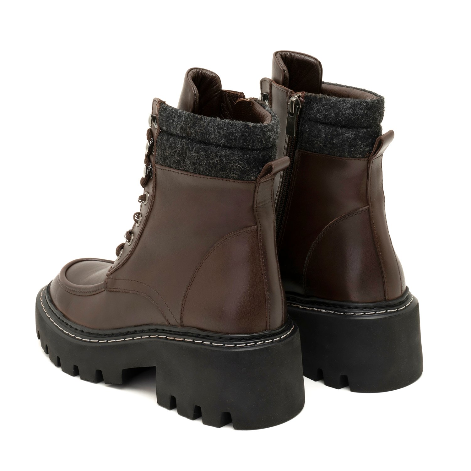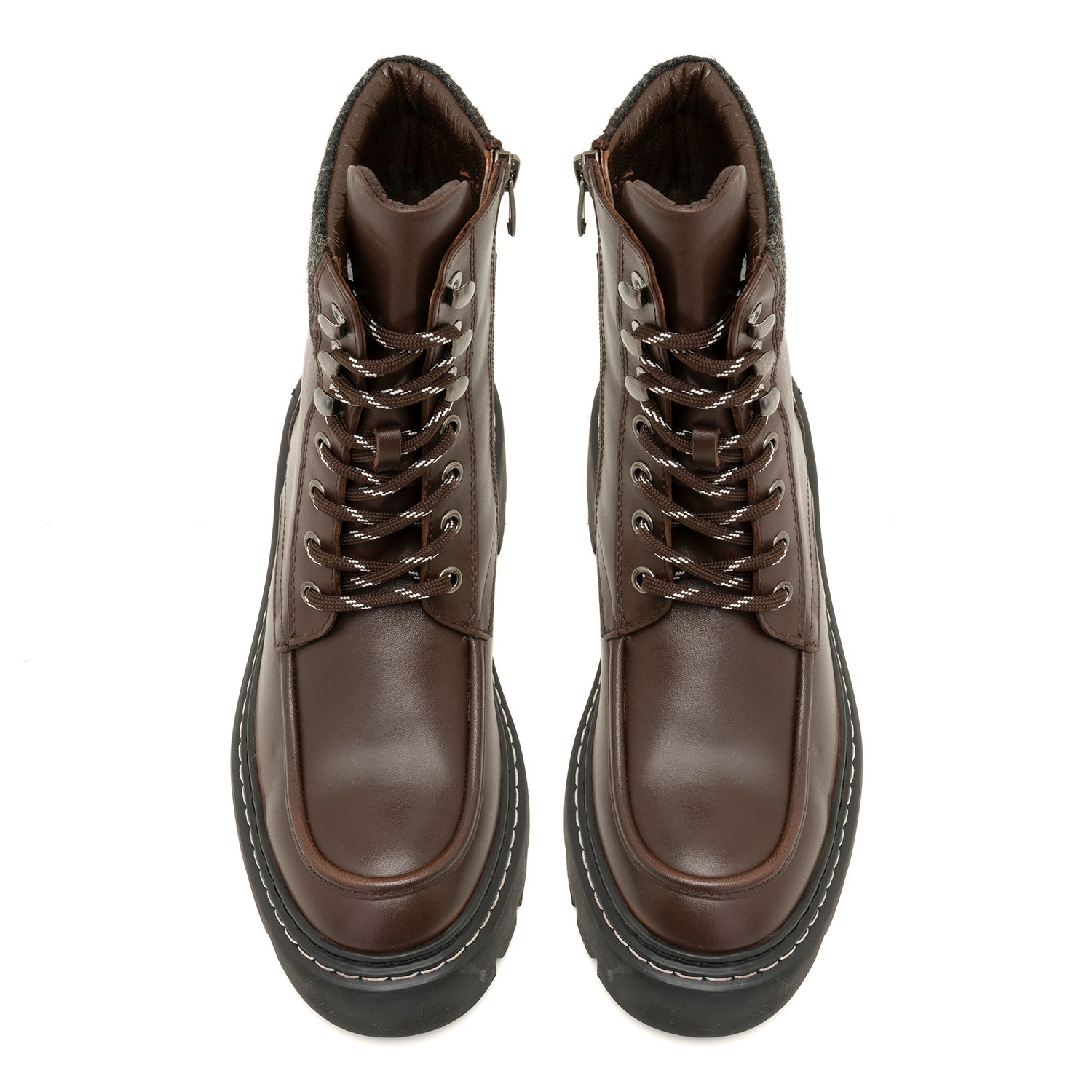 %90 deri, %10 keçe deri iç tabanlı, tekstil astarlı, thermo tabanlı, bağcık detaylı kadın bot.