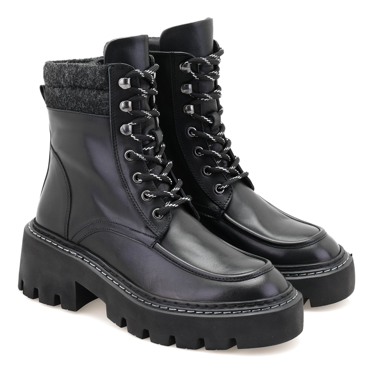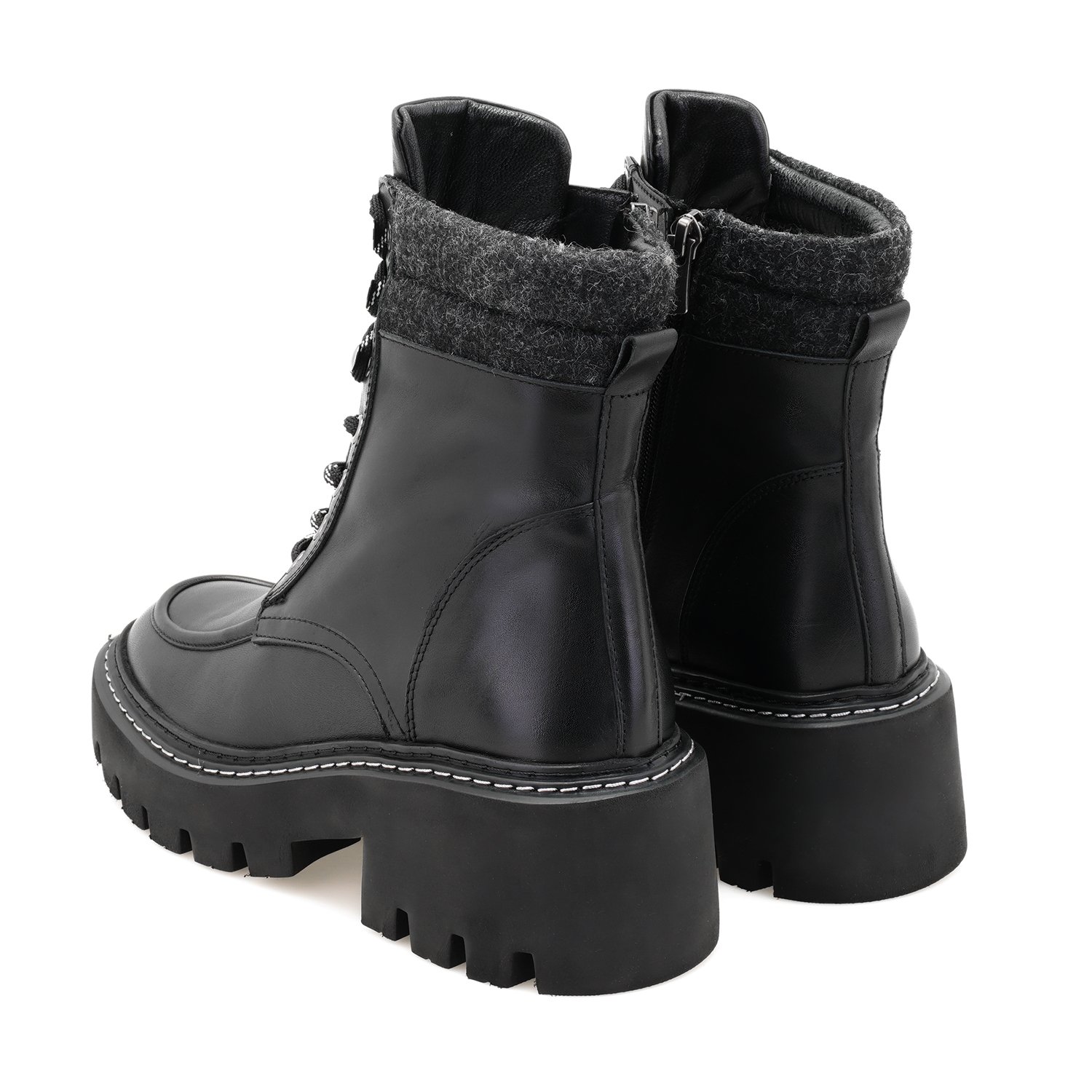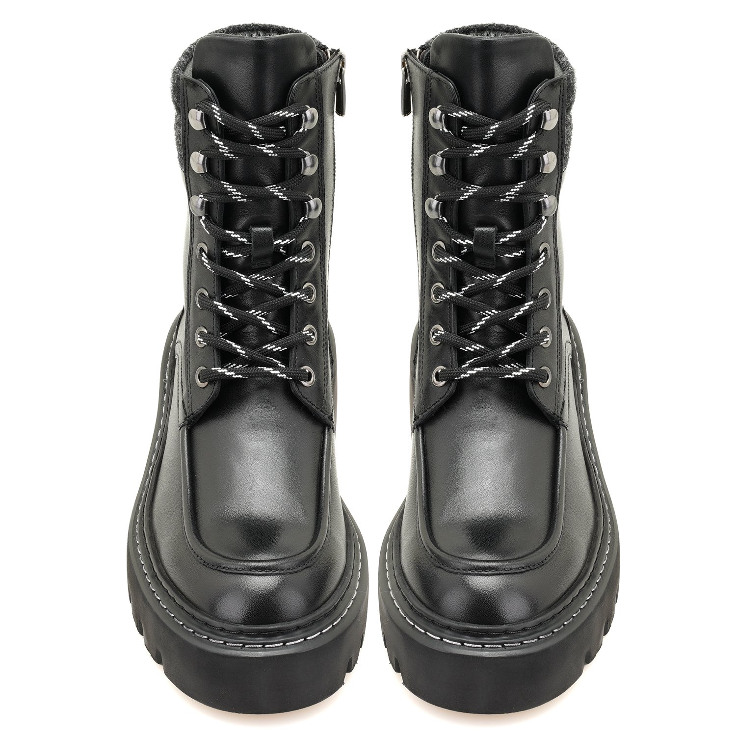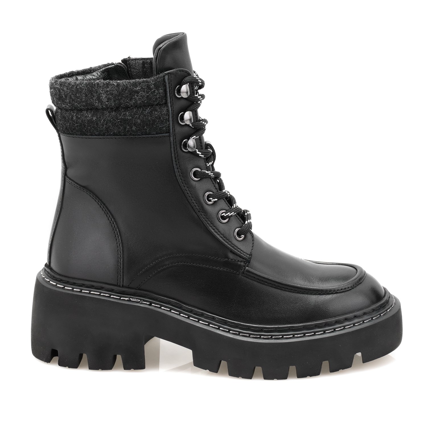 %90 deri, %10 keçe deri iç tabanlı, tekstil astarlı, thermo tabanlı, bağcık detaylı kadın bot.