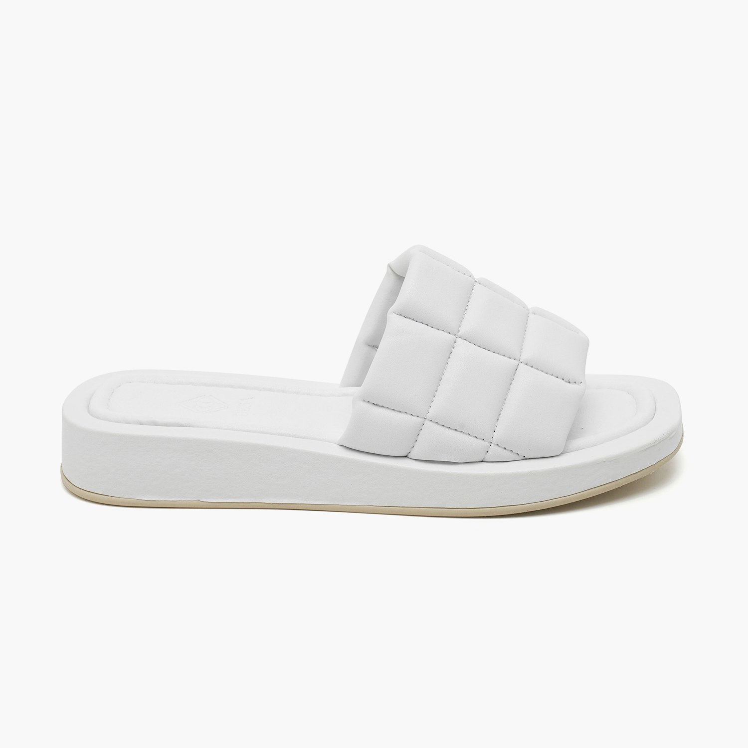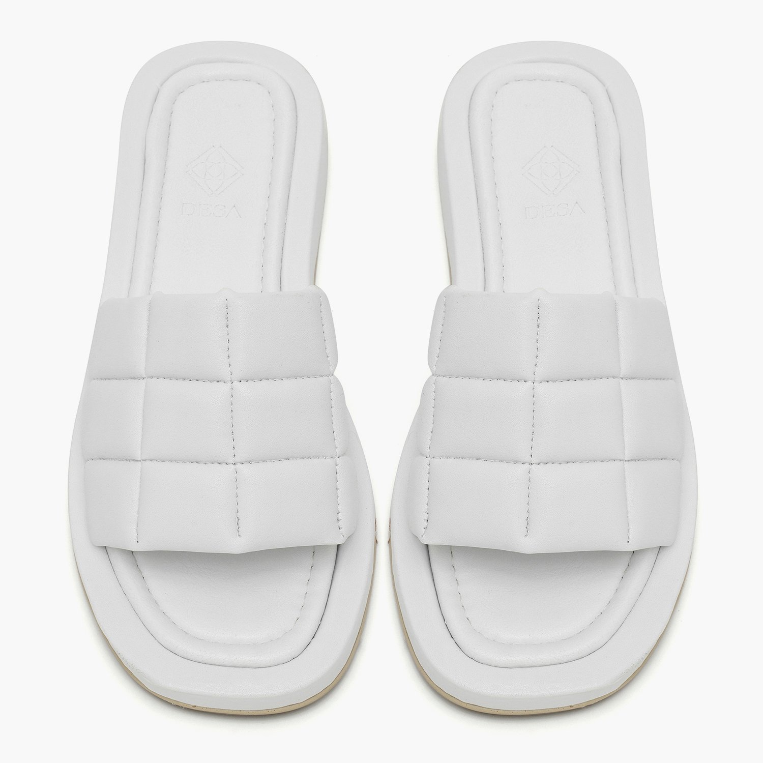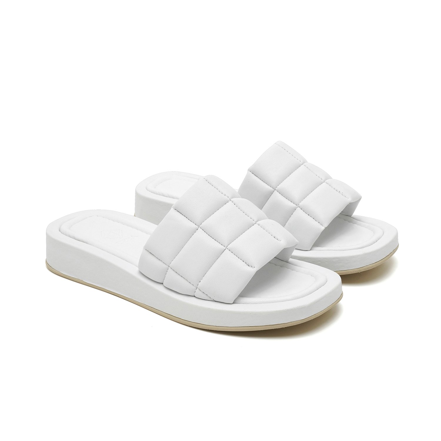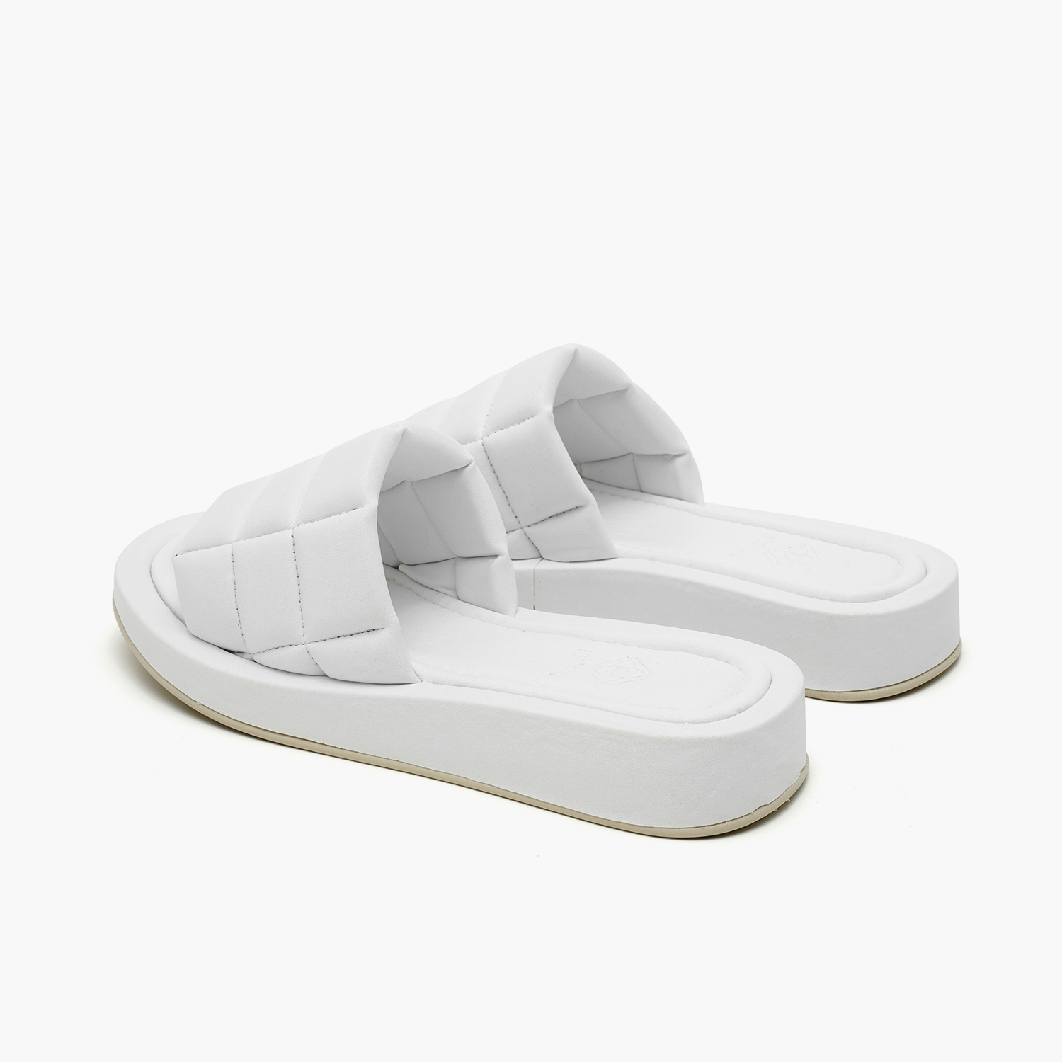Amelie Beyaz Kadın Puffer Kapitone Terlik