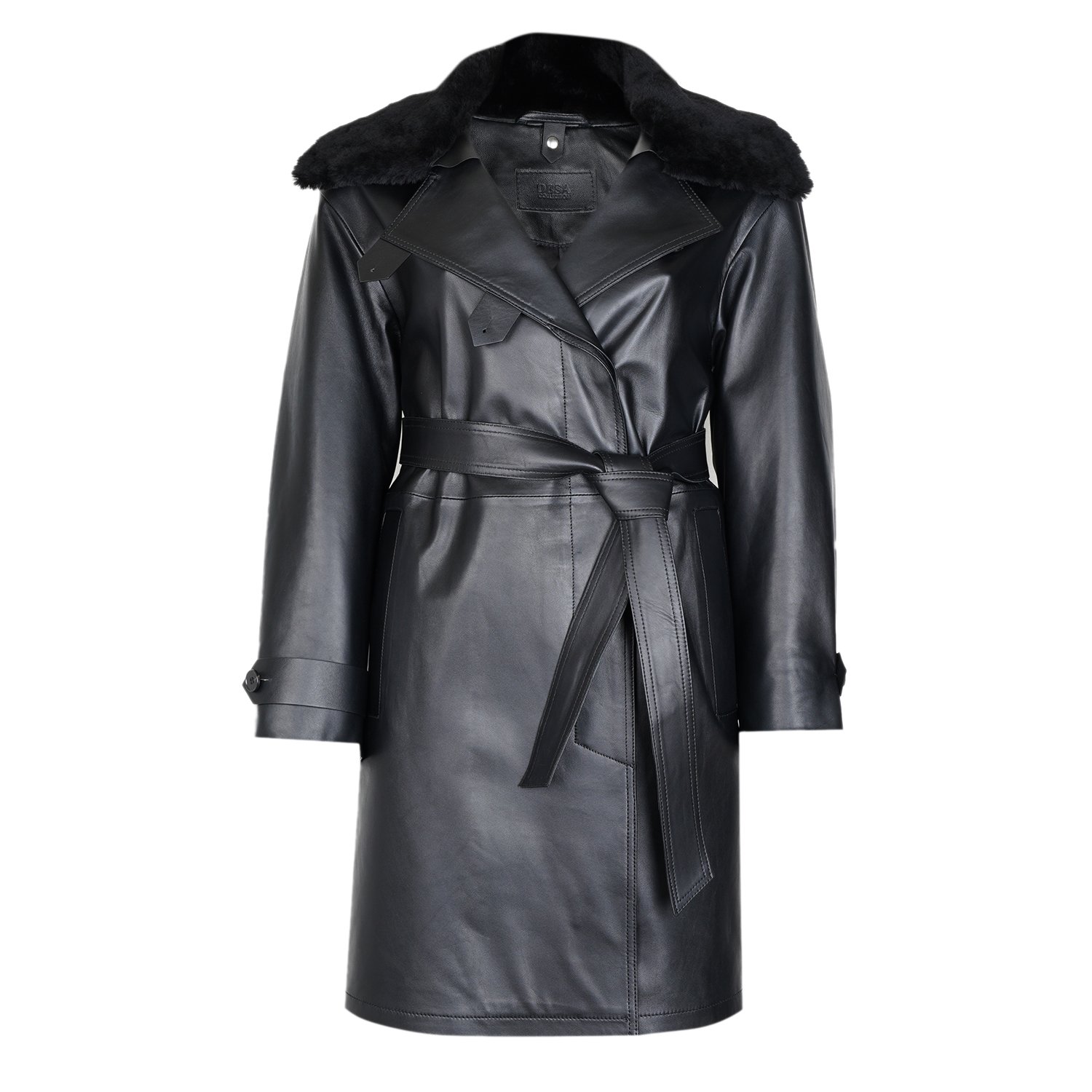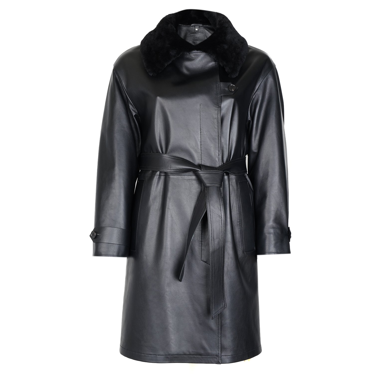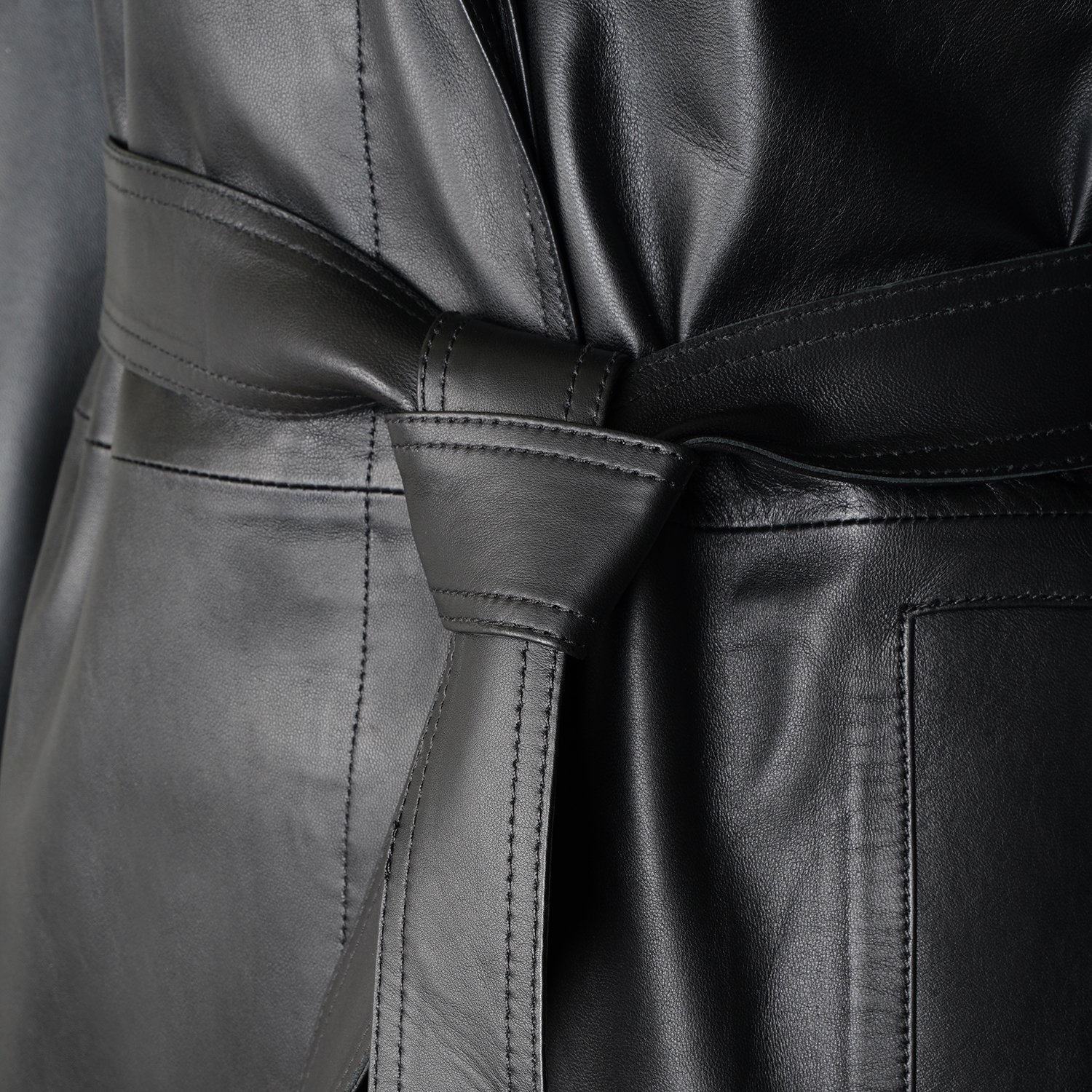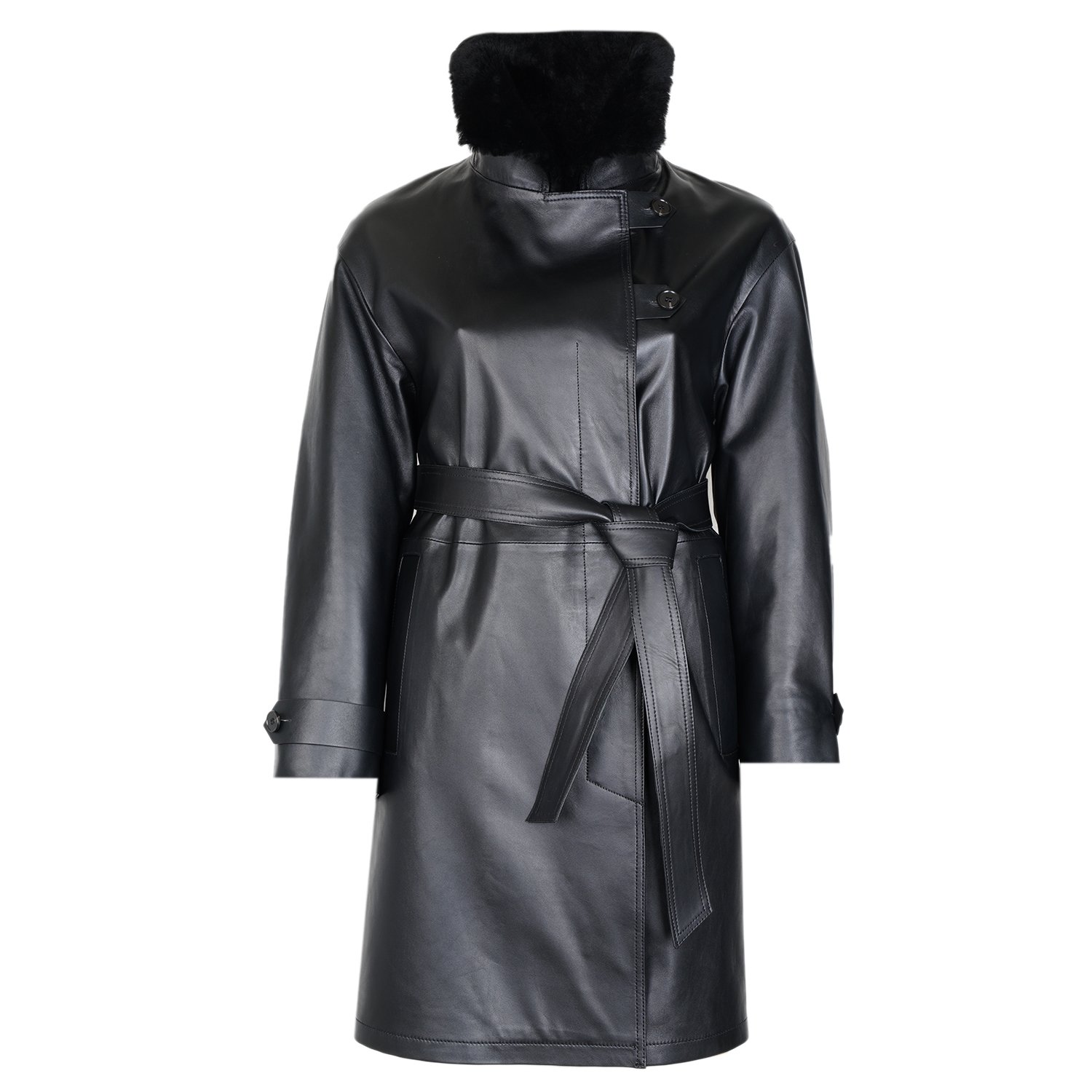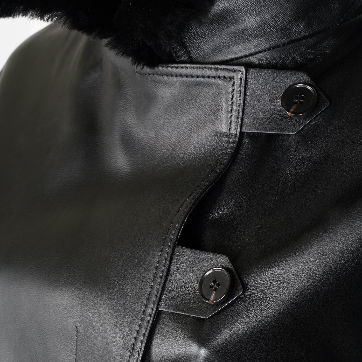 Amiah Siyah Kadın Oversize Deri Pardösü