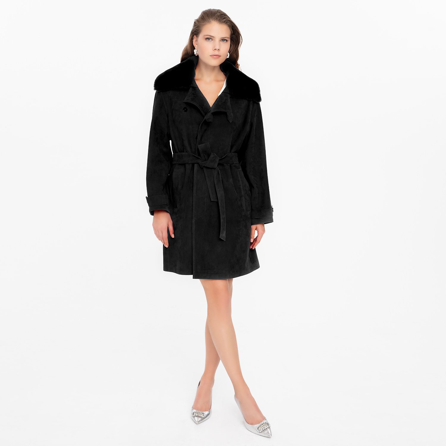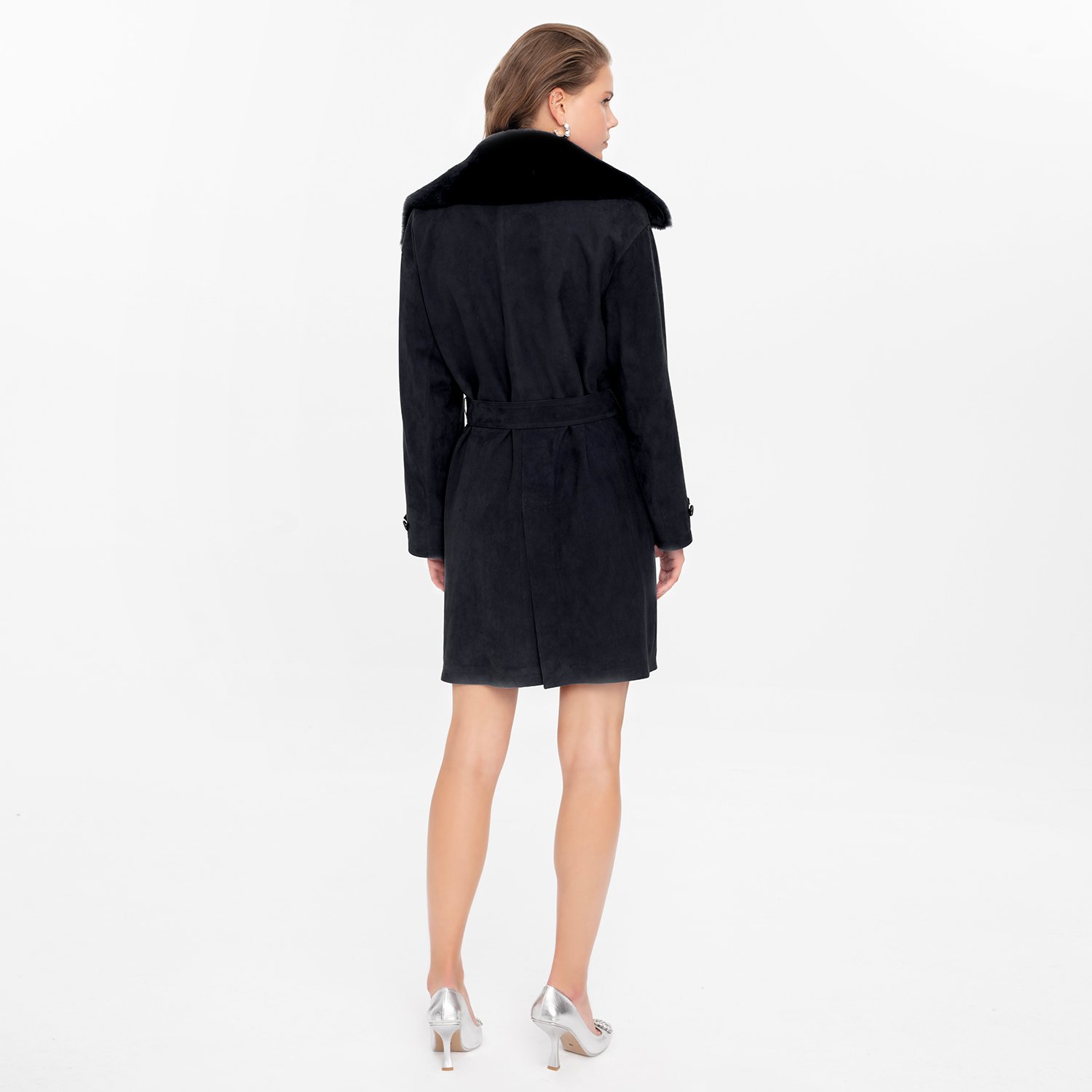 Kadın oversize çıkma kürk yakalı süet Pardösü.