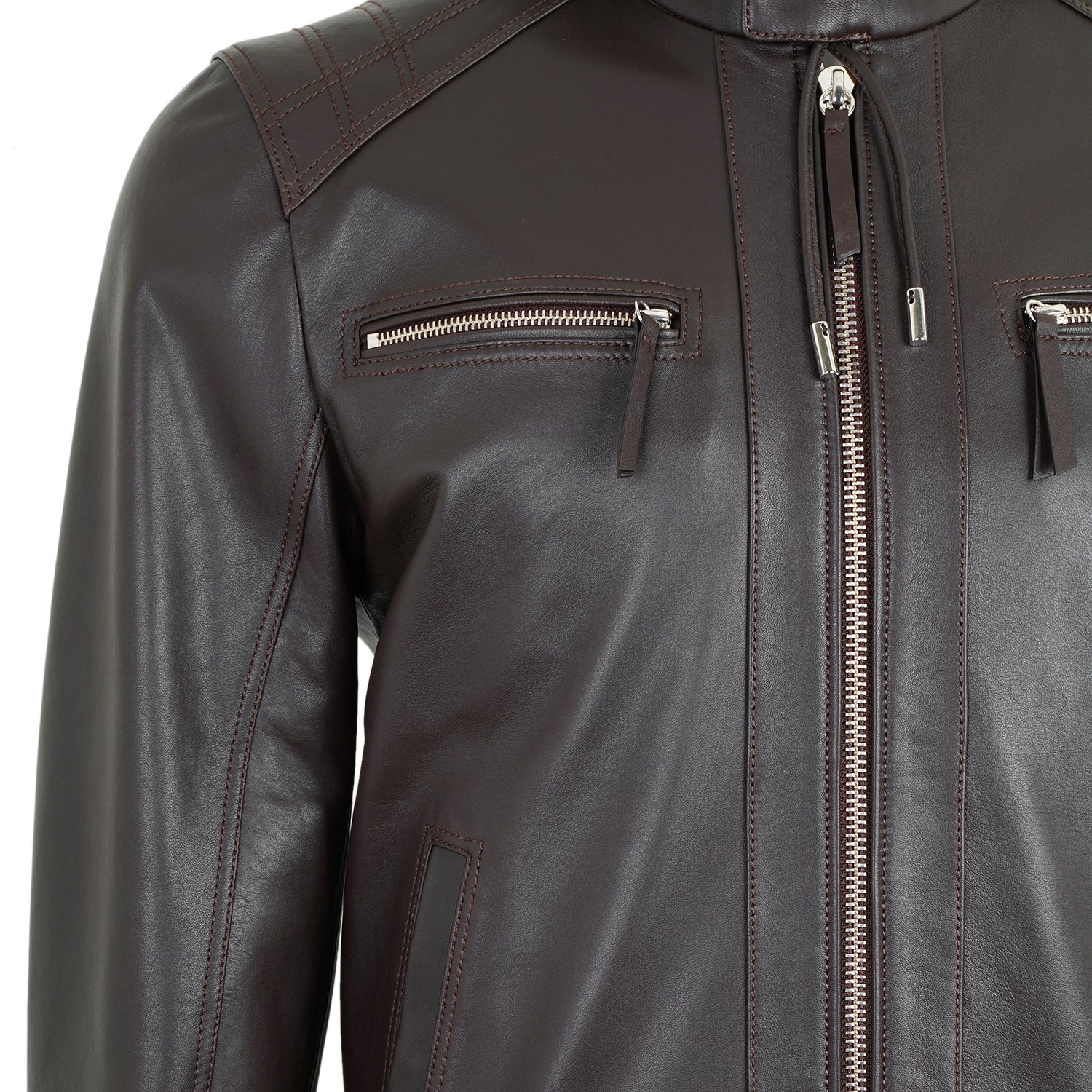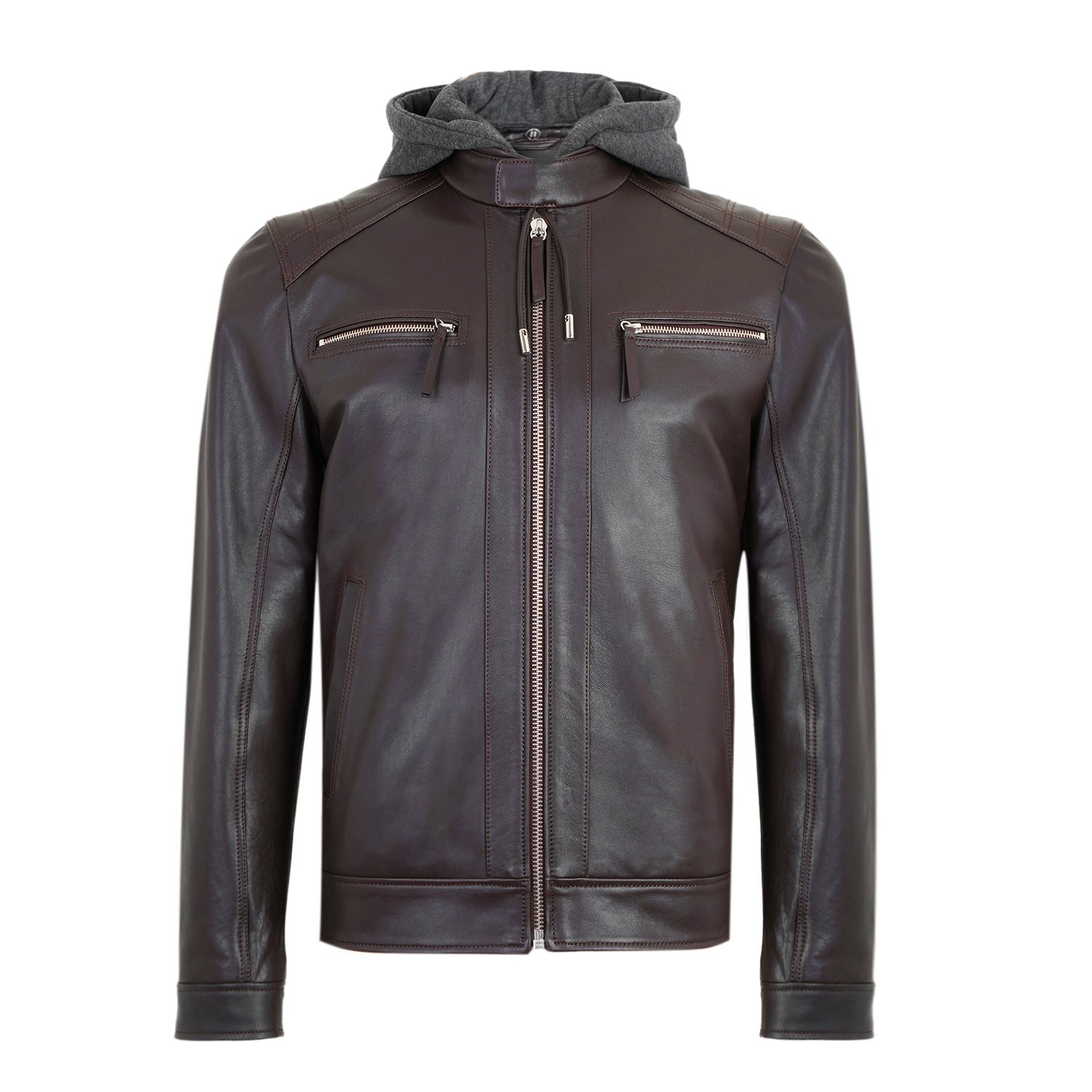 Analu Koyu Kahve Erkek Kapüşonlu Deri Mont
