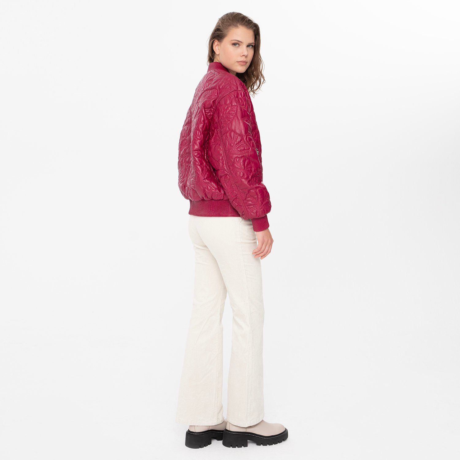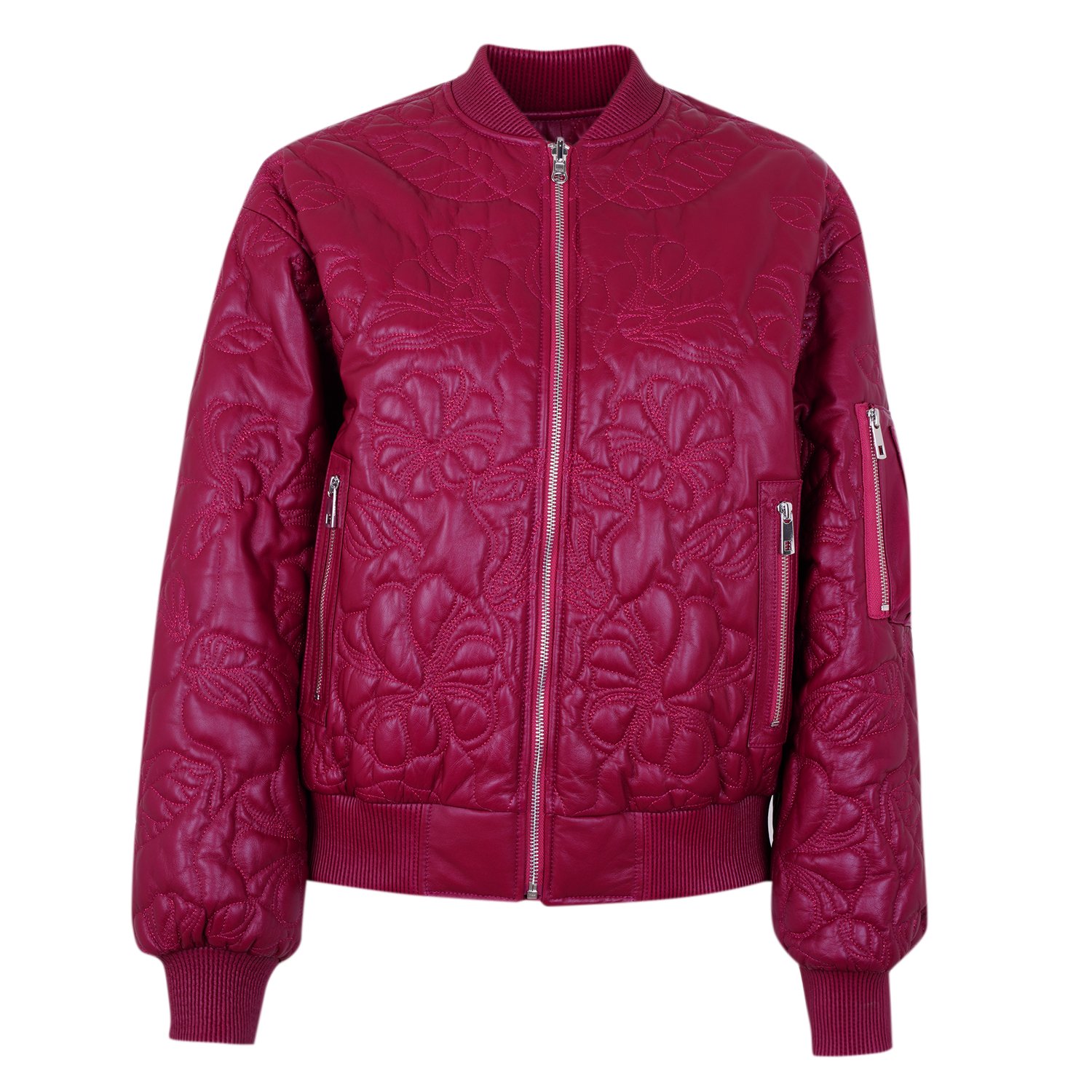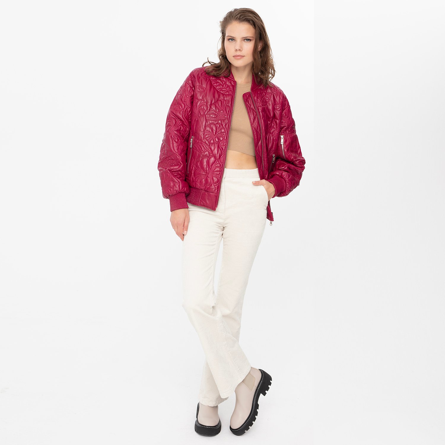 Kadın özel dekoratifli çitf taraflı deri bomber.