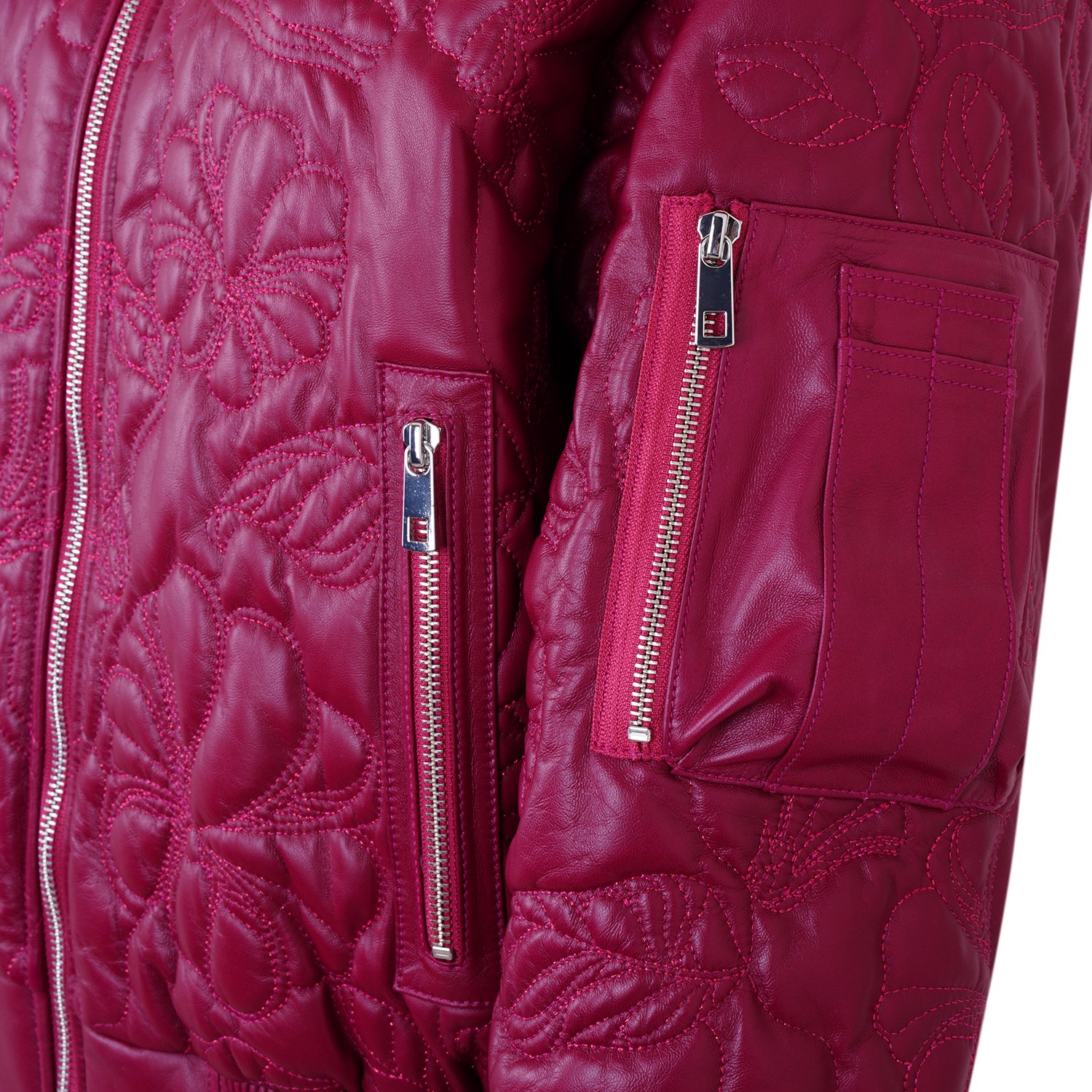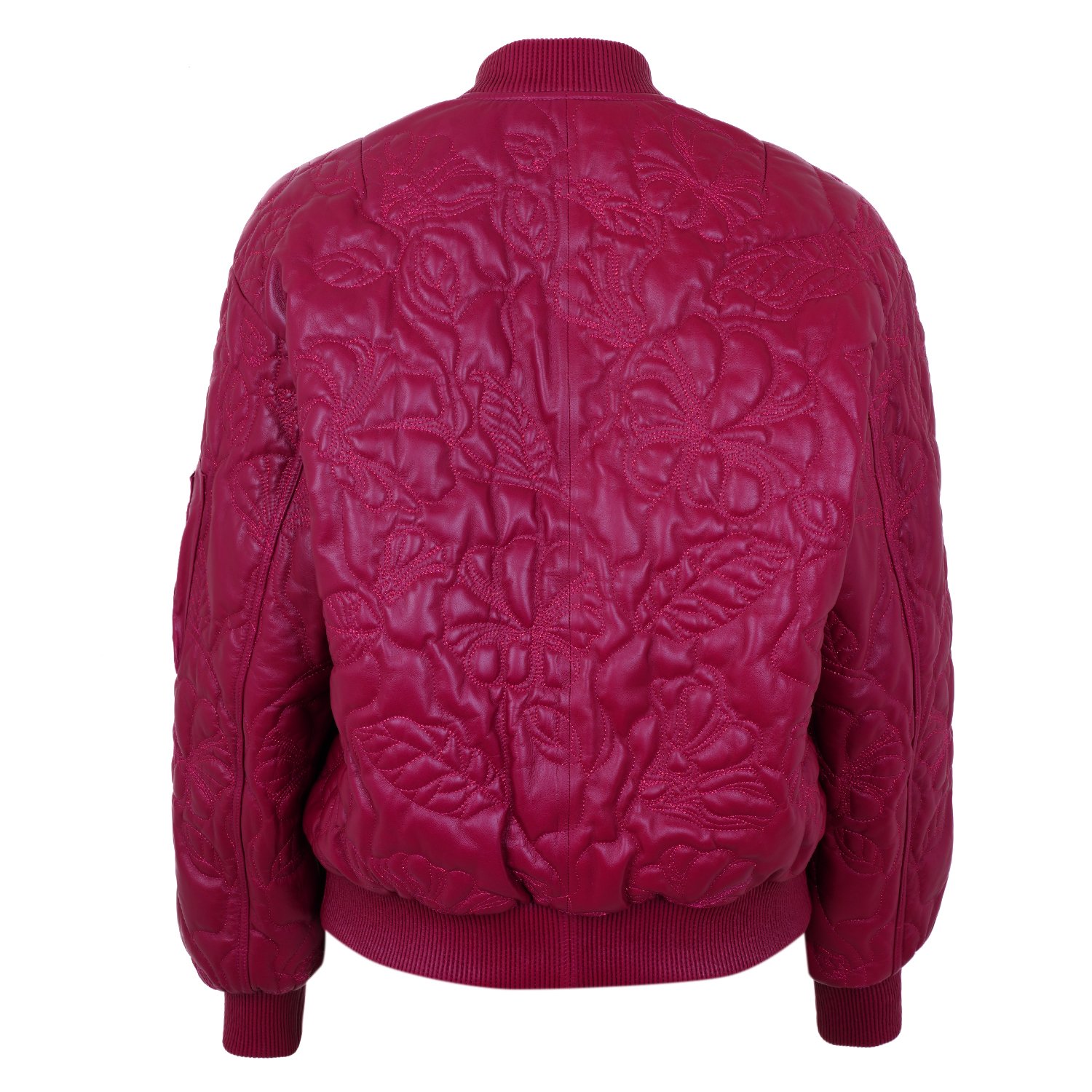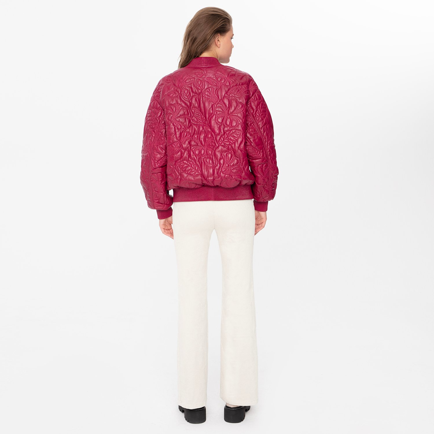 Kadın özel dekoratifli çitf taraflı deri bomber.