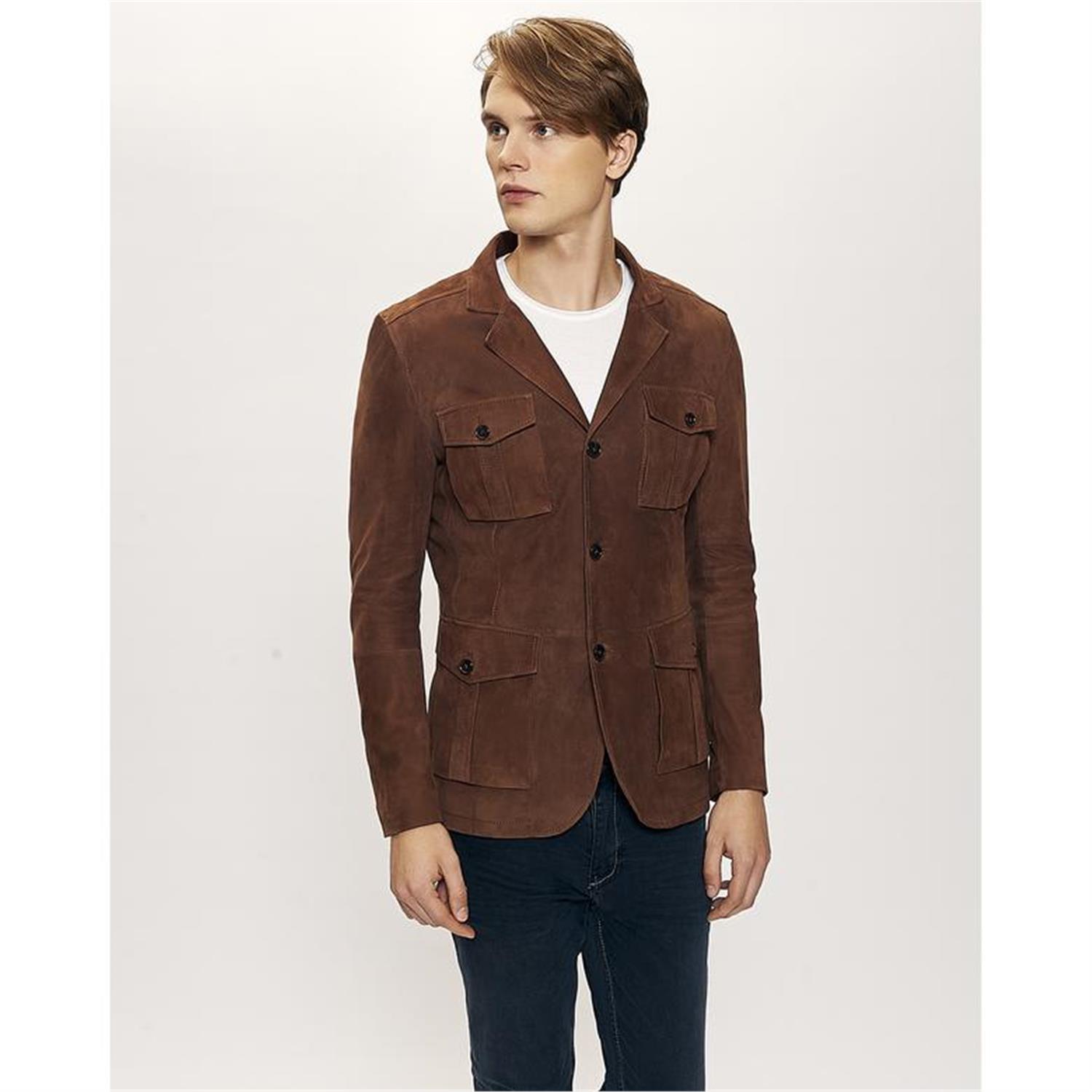 Antonin Kahve Erkek Süet Safari Deri Ceket