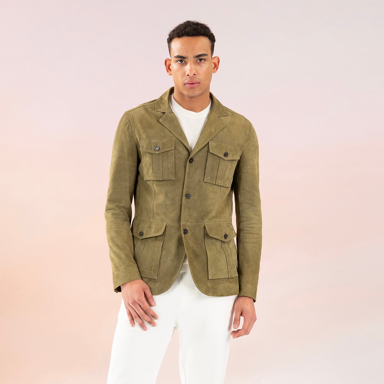Antonin Yeşil Erkek Süet Safari Deri Ceket