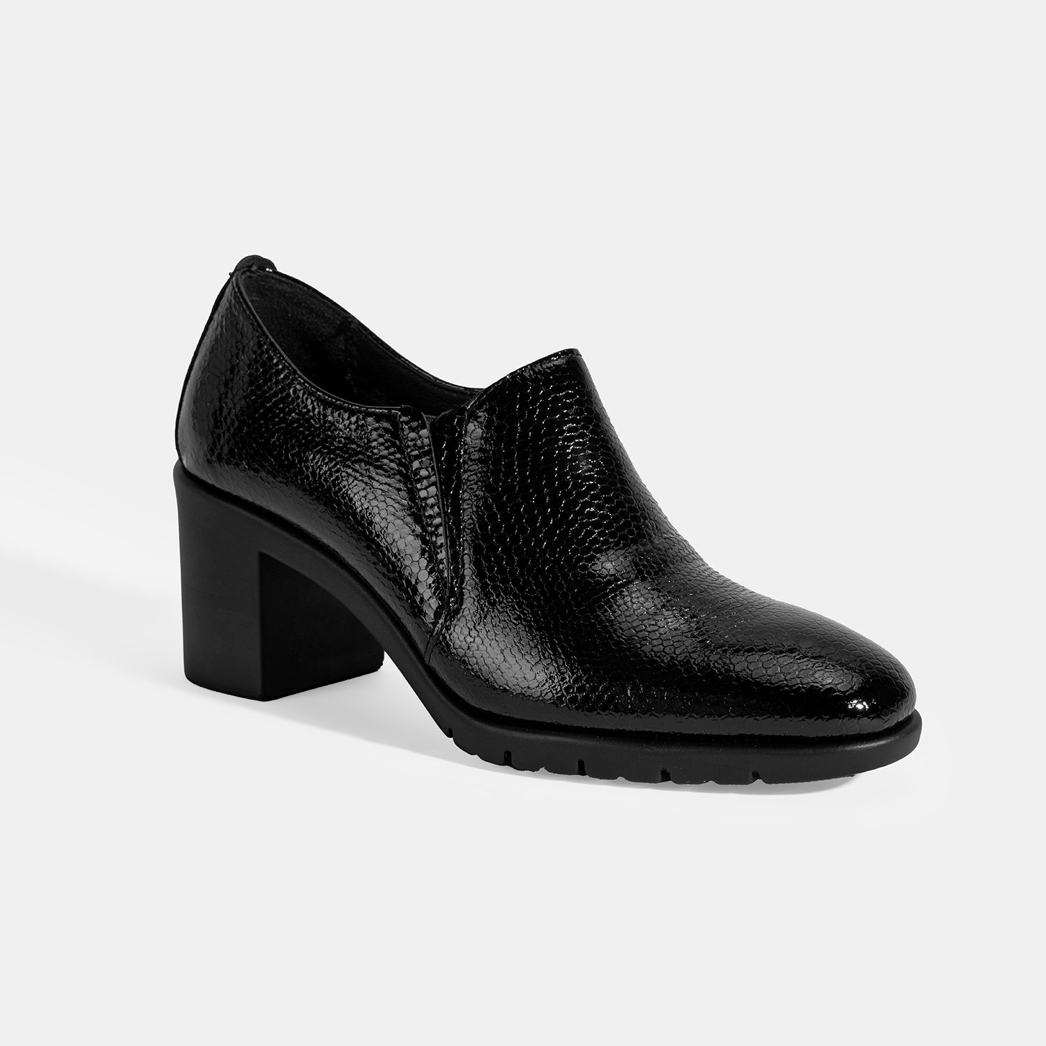Kadın Siyah Kroko Baskılı DesaComfort Topuklu Deri Ayakkabı