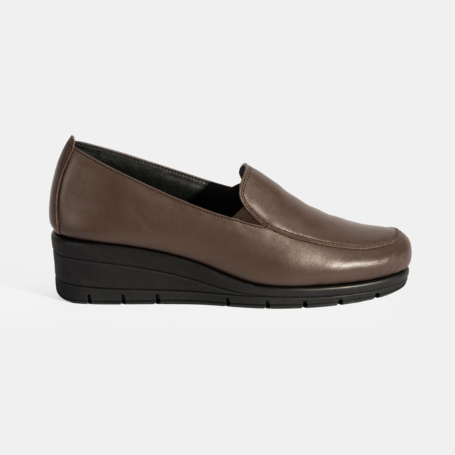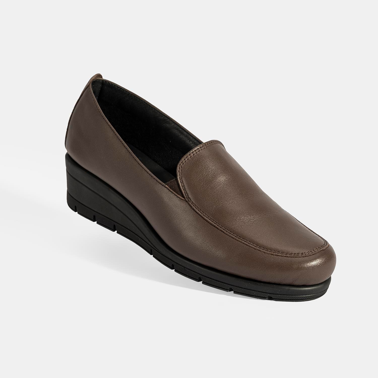 %100 deri, deri iç tabanlı, tekstil astarlı, kauçuk tabanlı kadın günlük comfort ayakkabı. Taban yüksekliği: 4,5 cm.