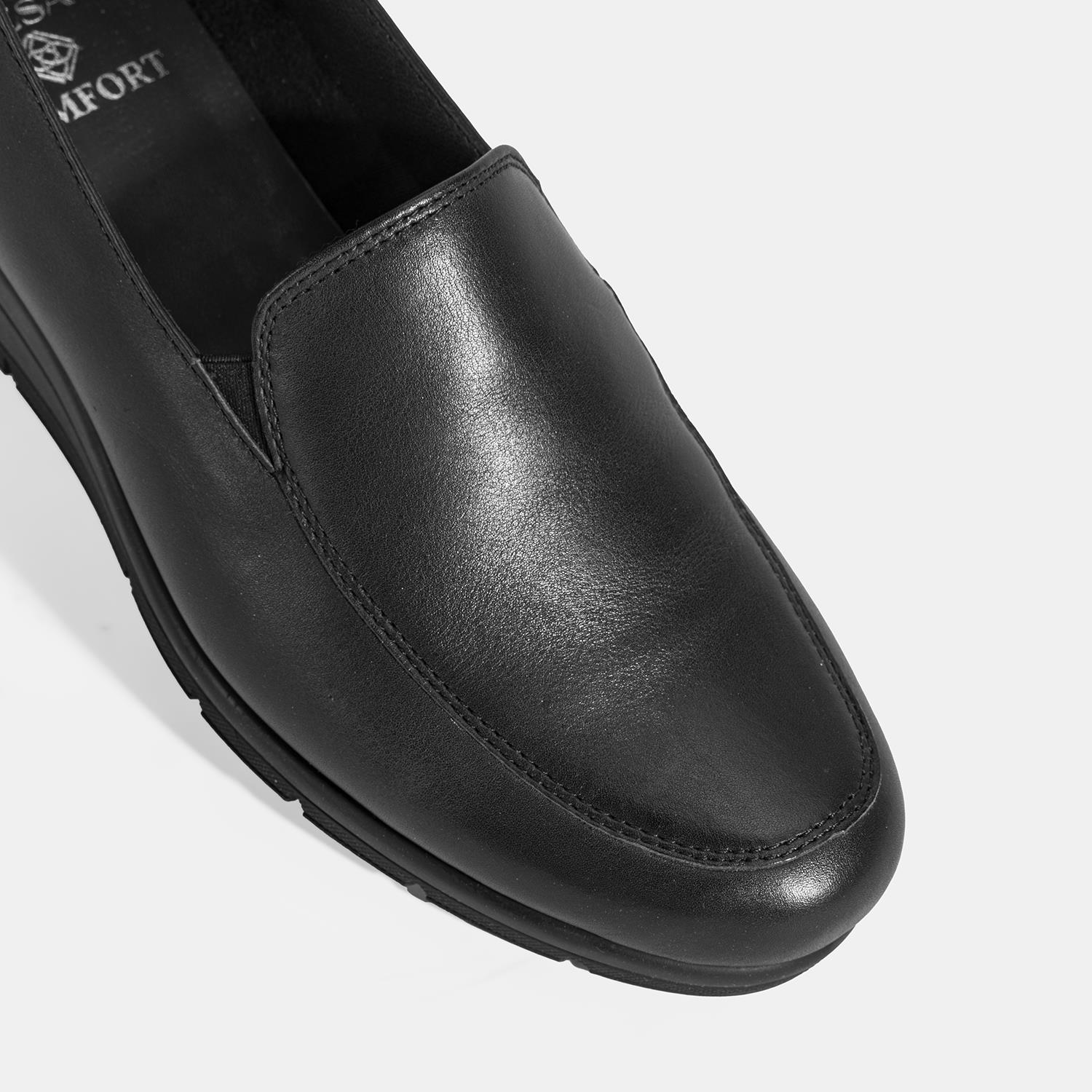 %100 deri, deri iç tabanlı, tekstil astarlı, kauçuk tabanlı kadın günlük comfort ayakkabı. Taban yüksekliği: 4,5 cm.