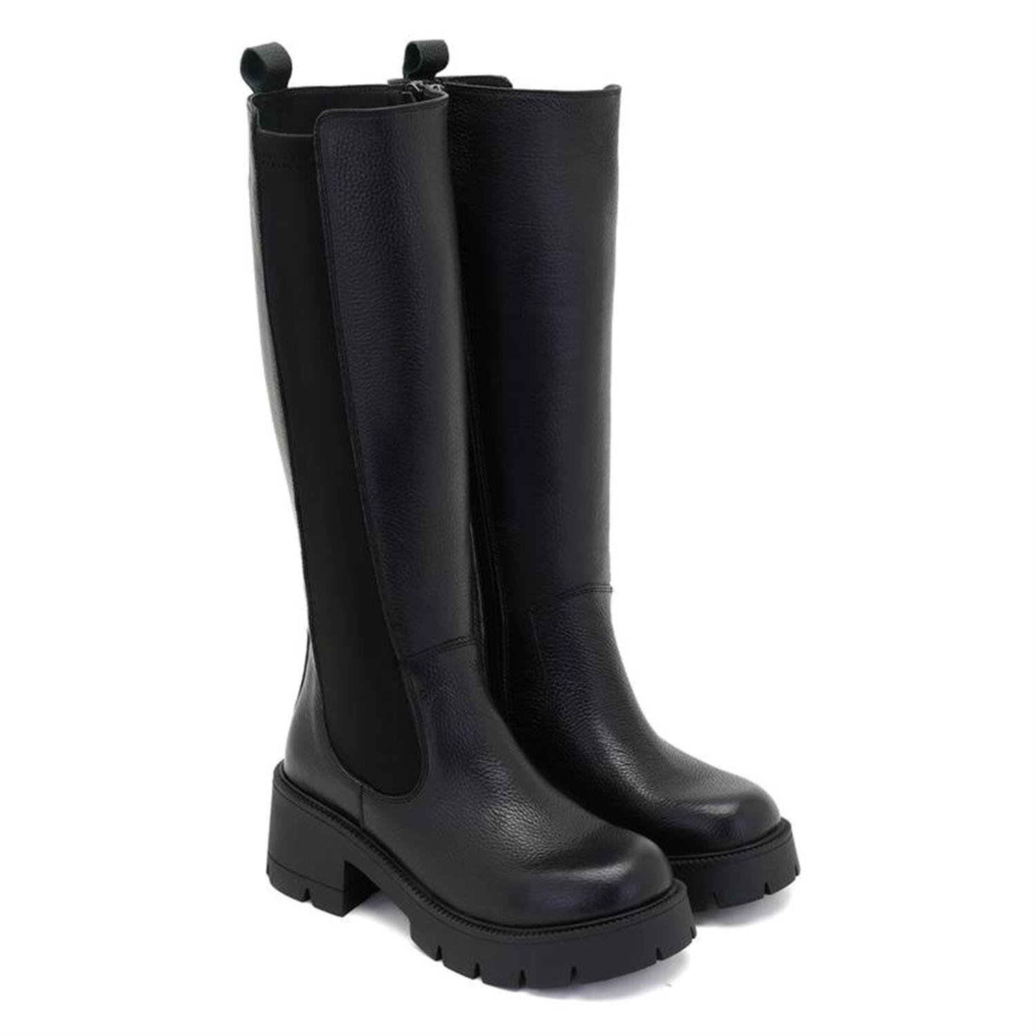 %100 deri, deri iç tabanlı, tekstil astarlı, thermo tabanlı, lastik detaylı, kadın çizme.