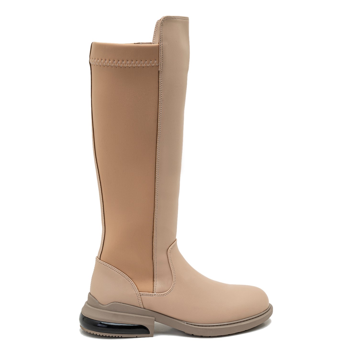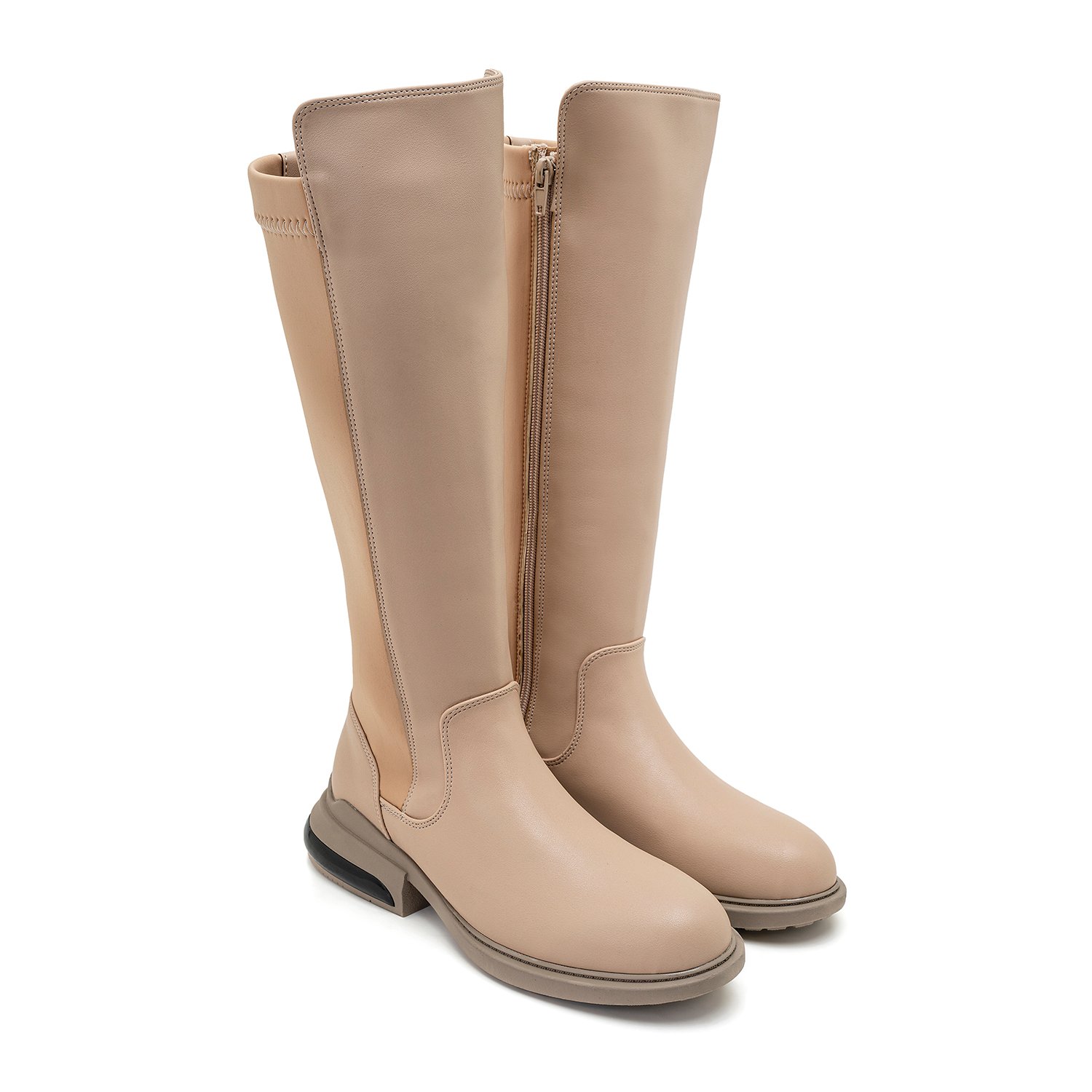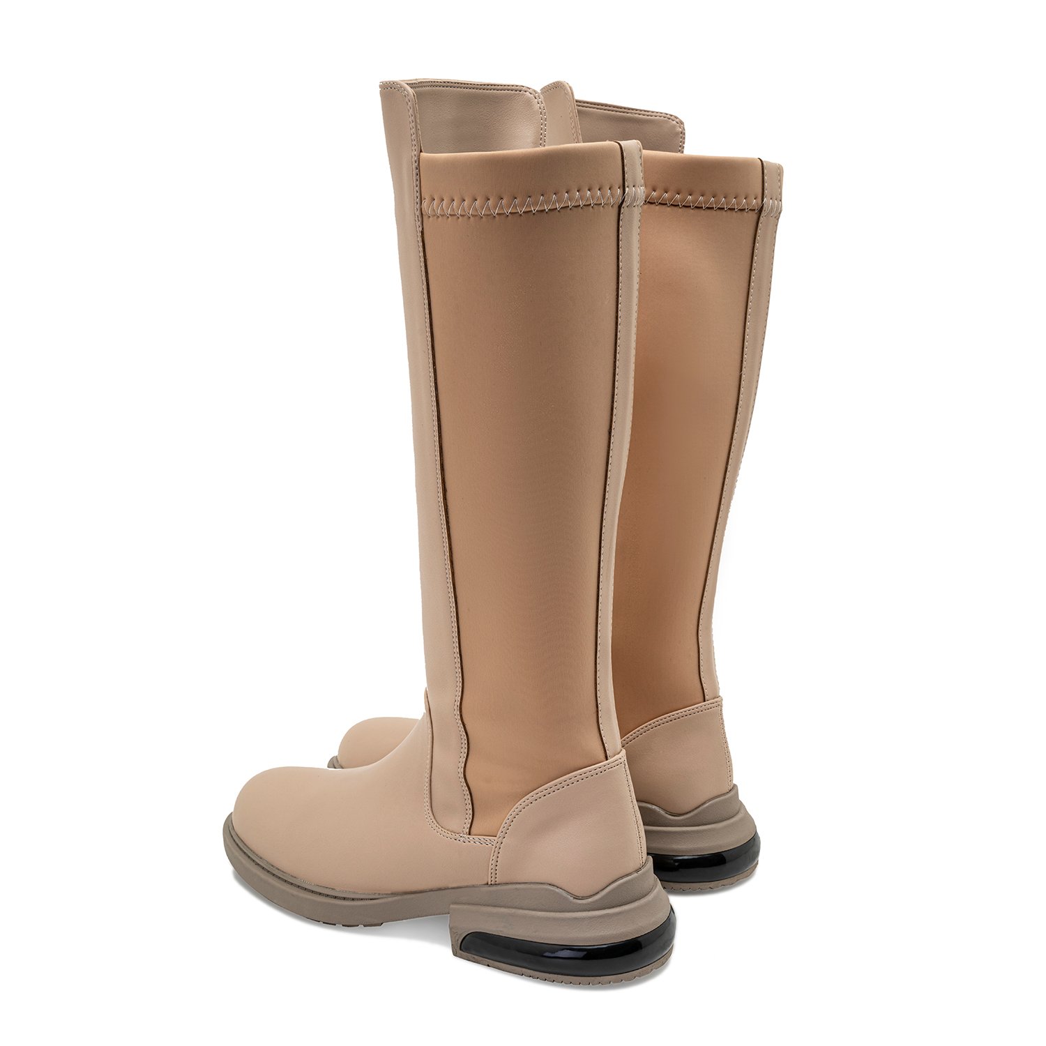 Pu iç astarlı, pu iç tabanlı, pu tabanlı, stretch detaylı kadın çizme.