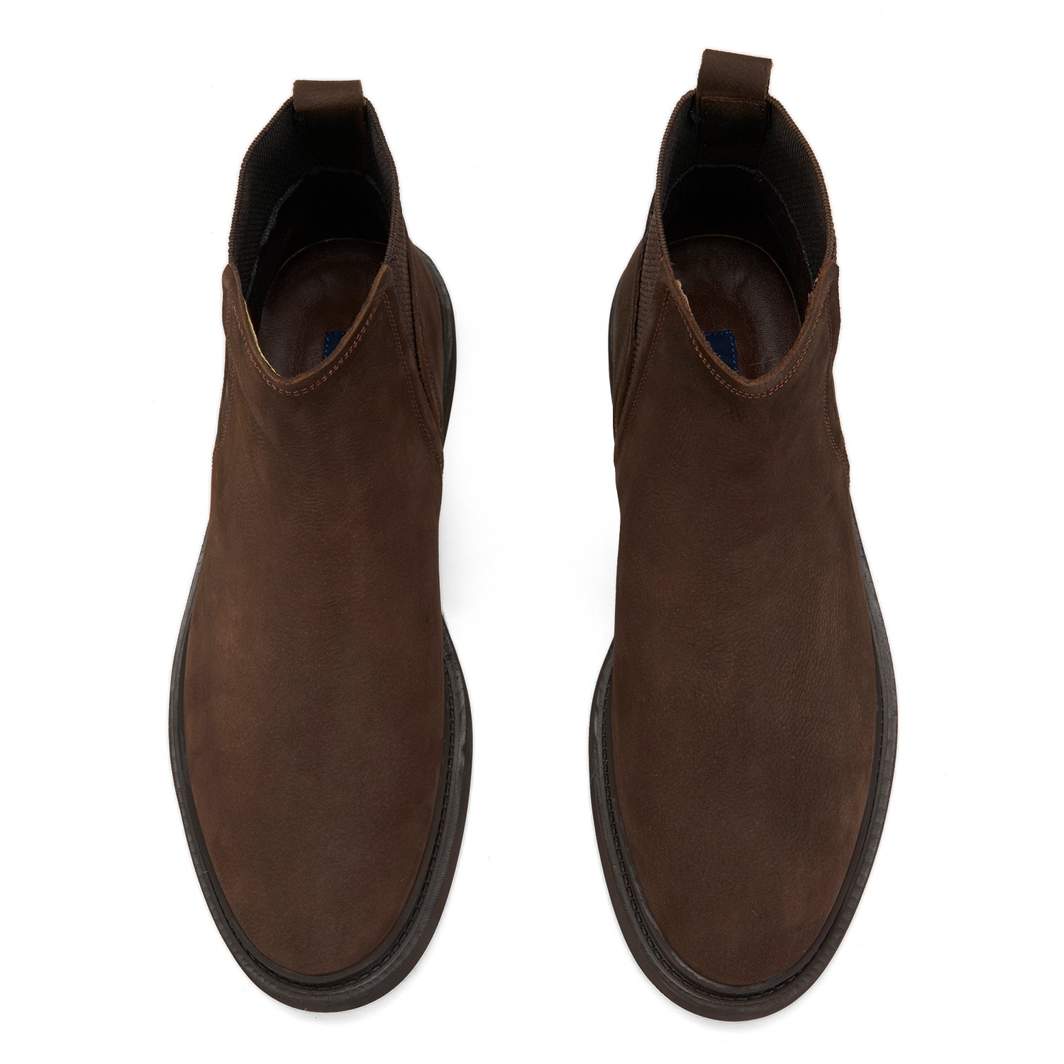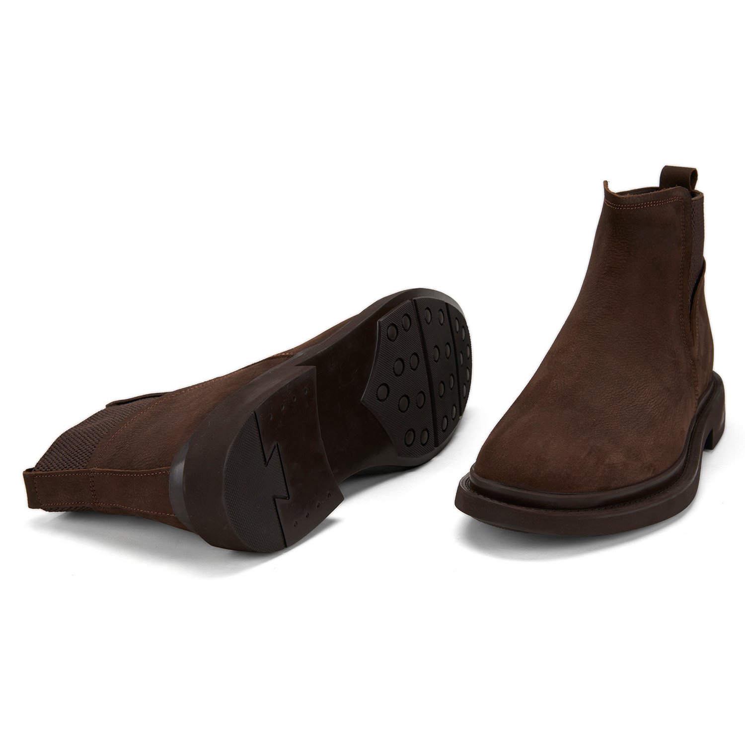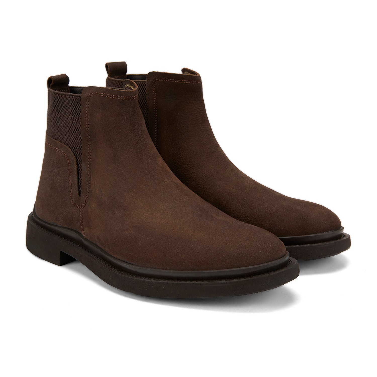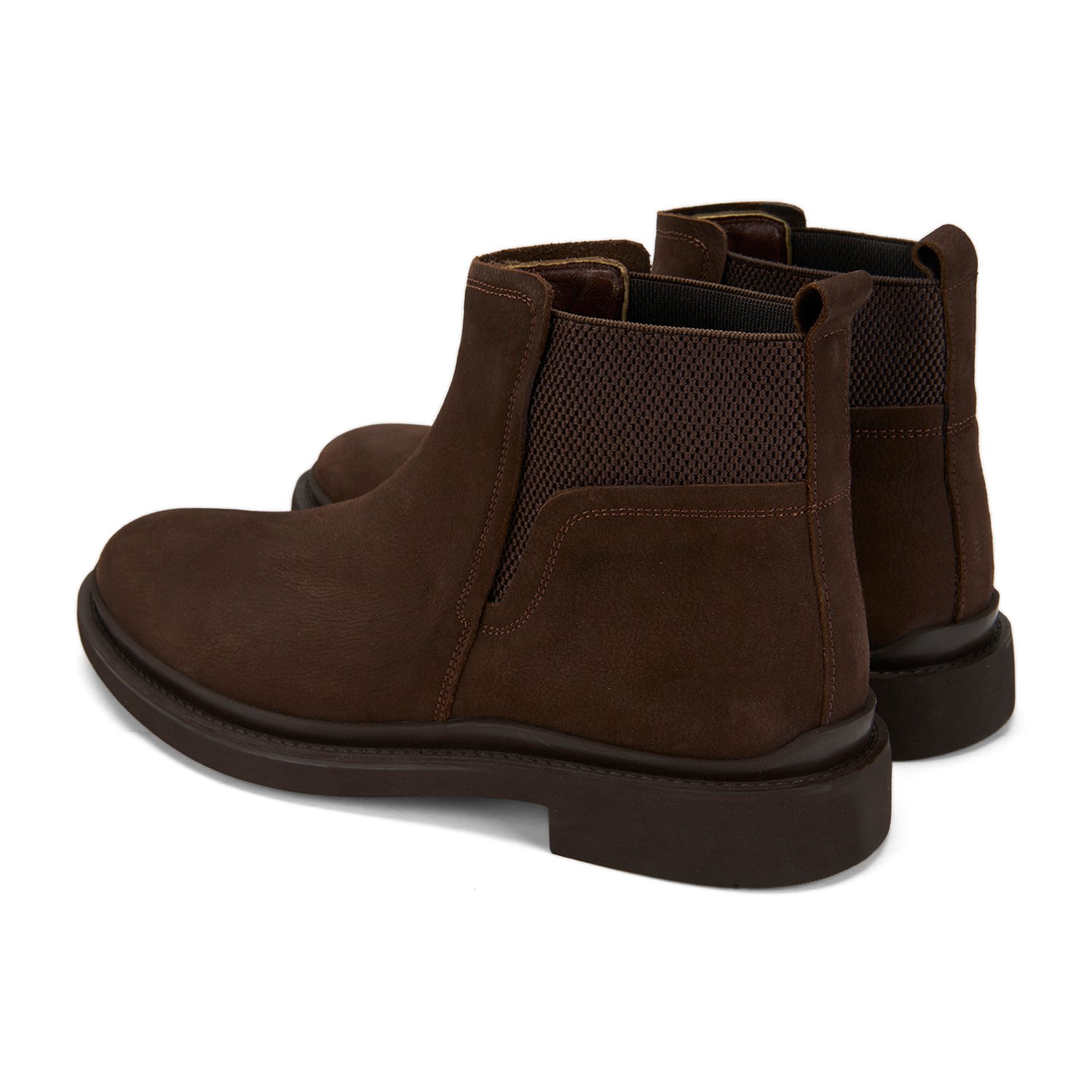 %100 nubuk deri, deri iç tabanlı, tekstil astarlı, kauçuk tabanlı, lastik detaylı erkek bot.