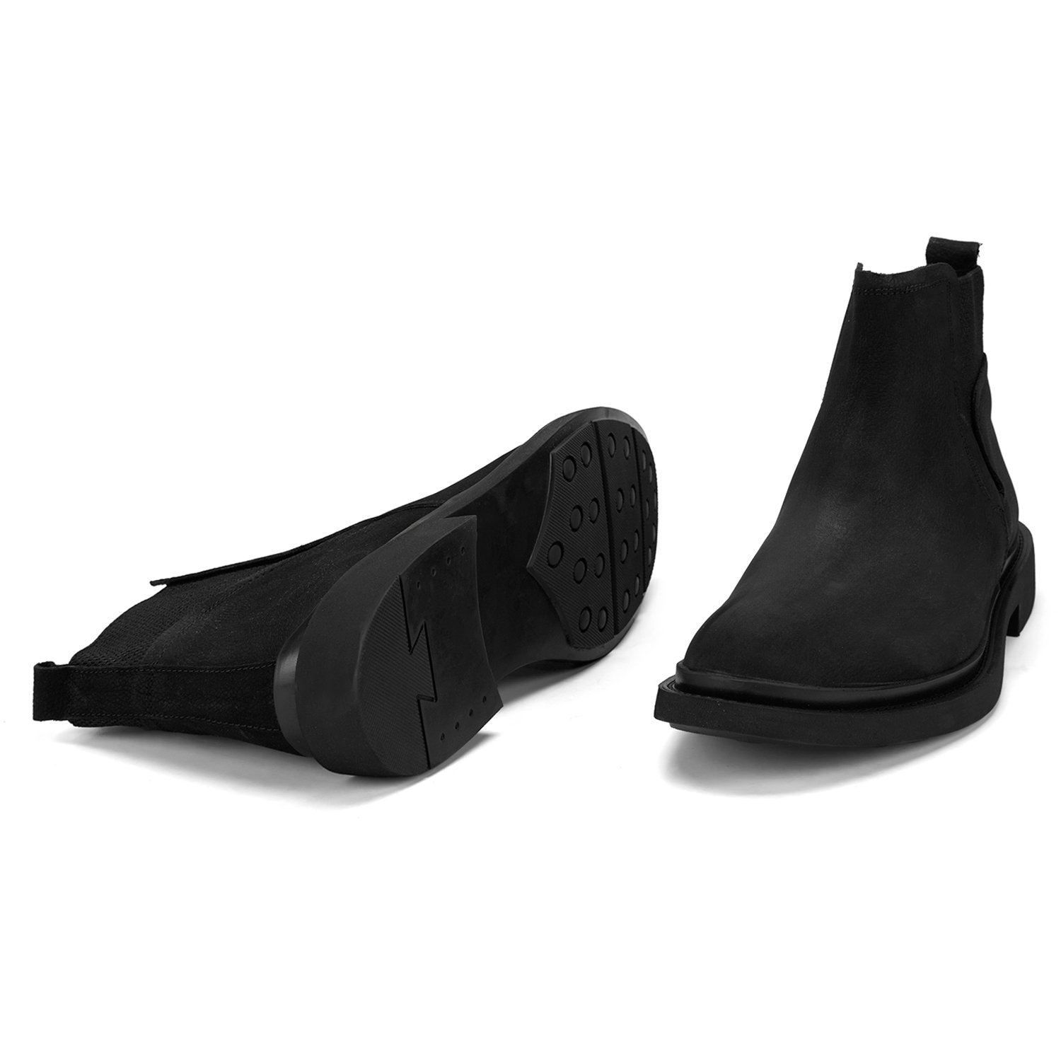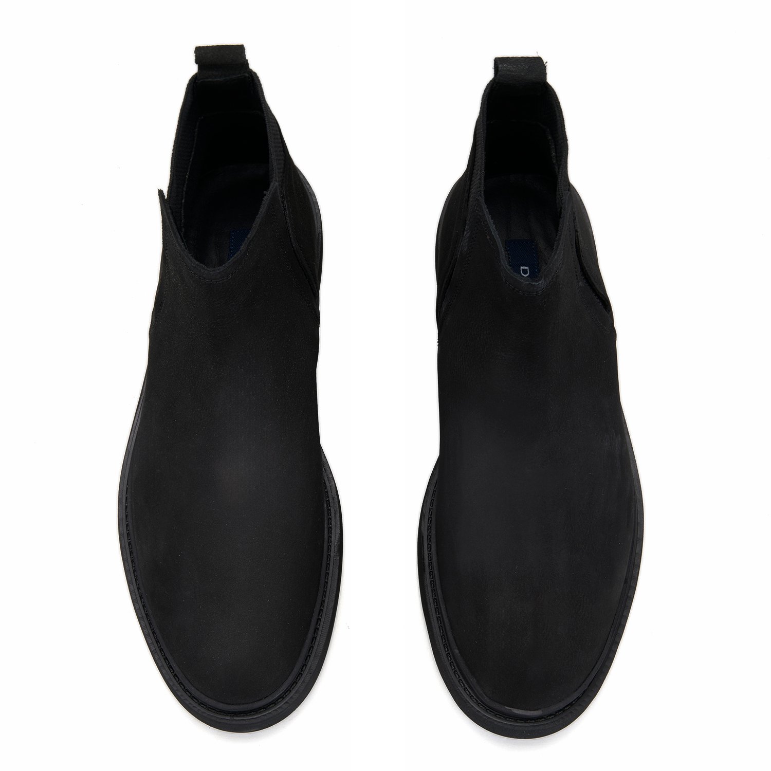 %100 nubuk deri, deri iç tabanlı, tekstil astarlı, kauçuk tabanlı, lastik detaylı erkek bot.
