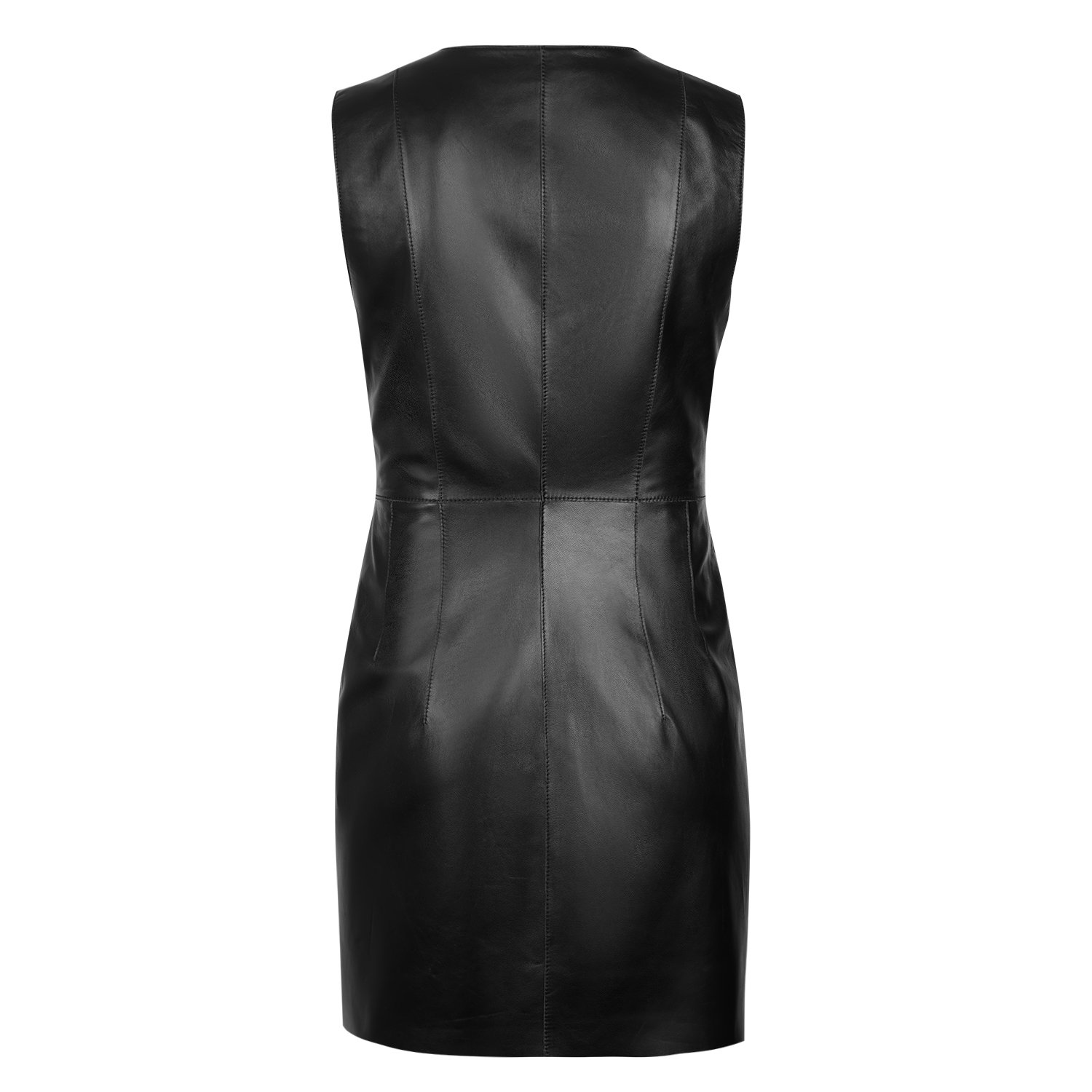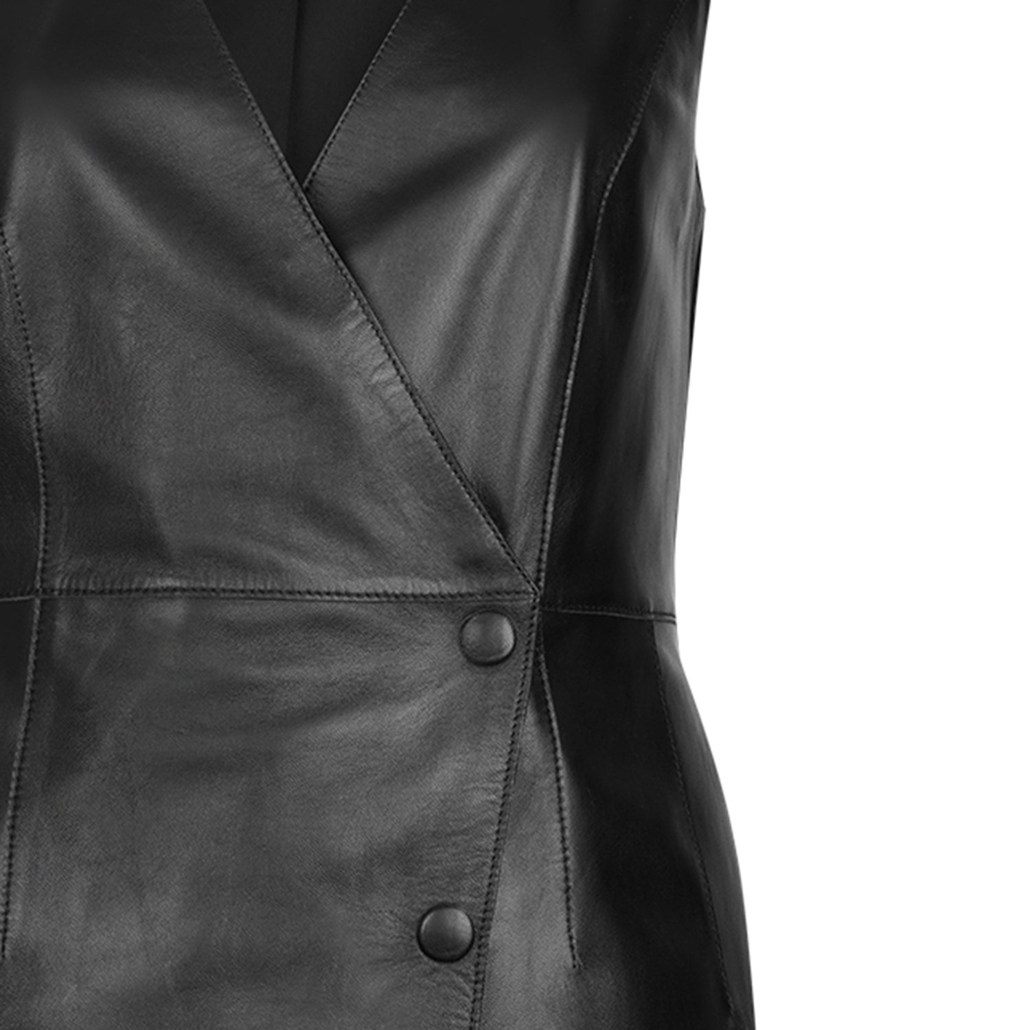 Arnola Siyah Kadın Kruvaze Deri Elbise
